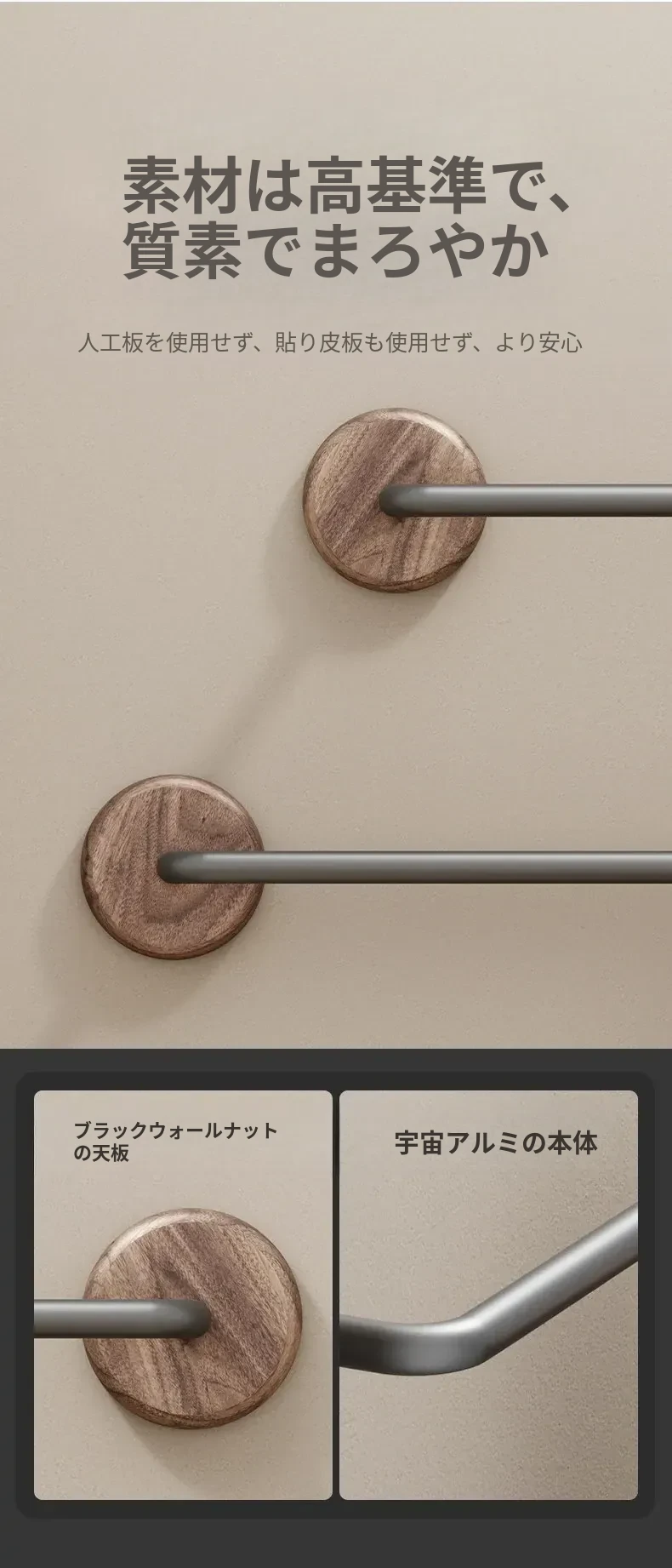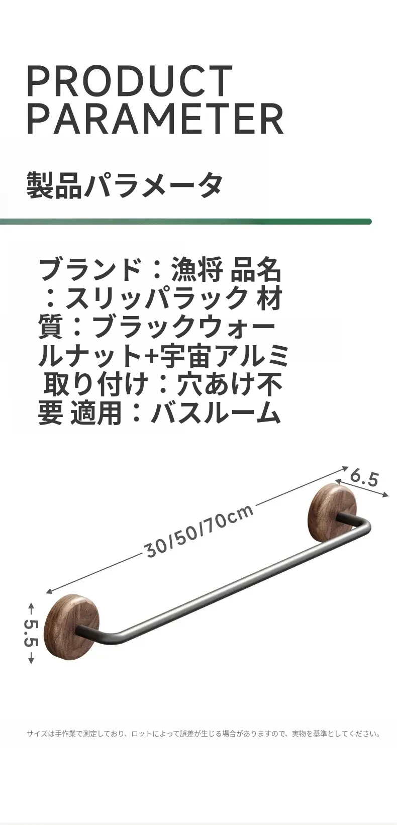 ウォルナット【円形太いスリッパ棒70CM】