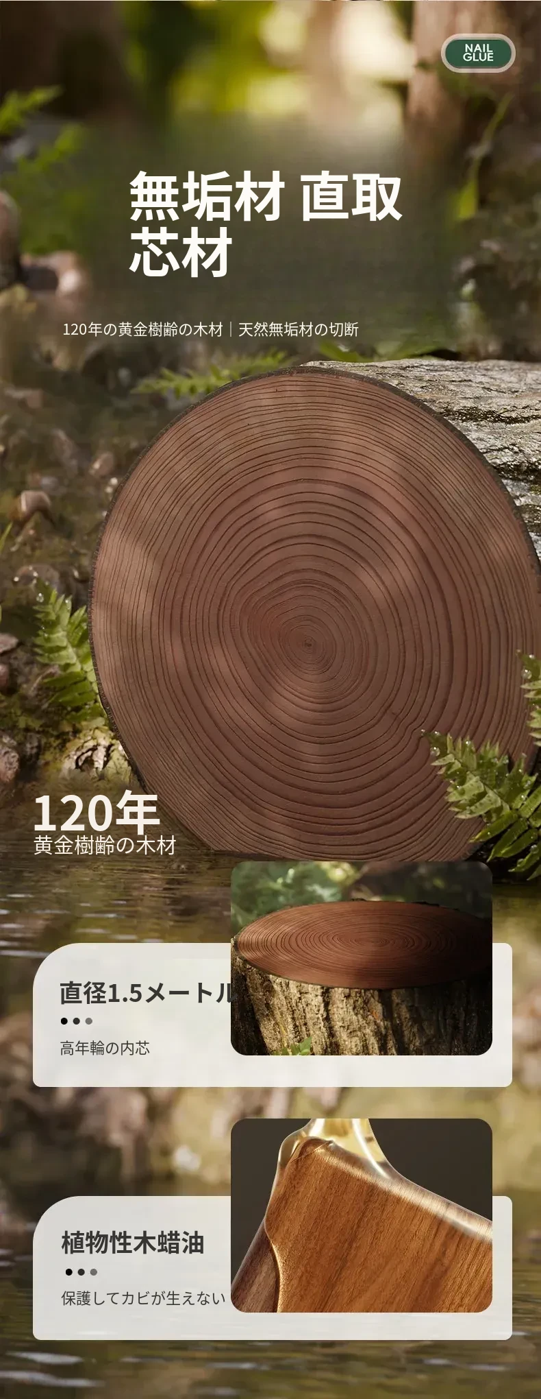 クリーム風-ブナ【円形太いスリッパ棒50CM】