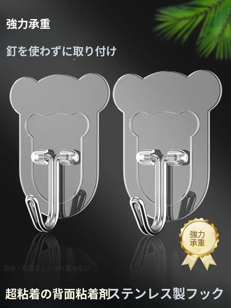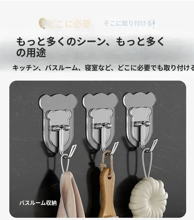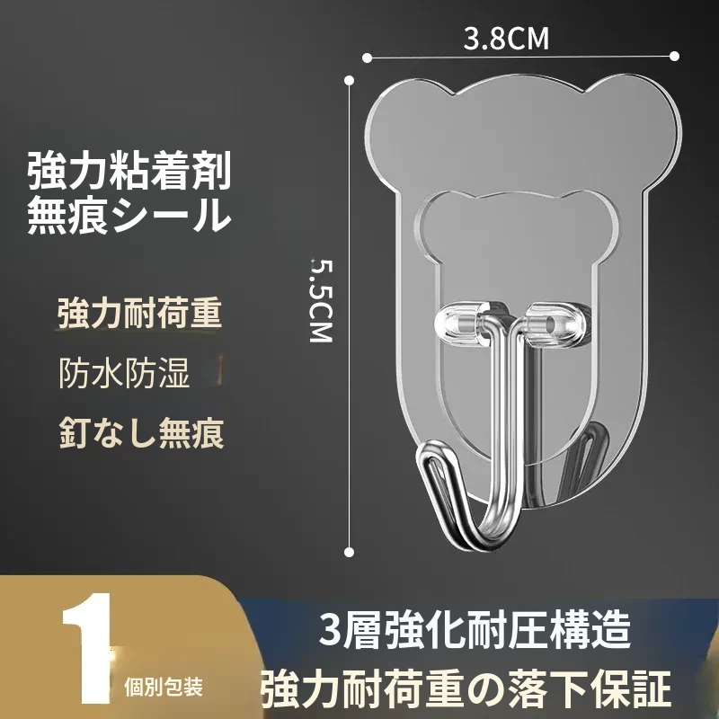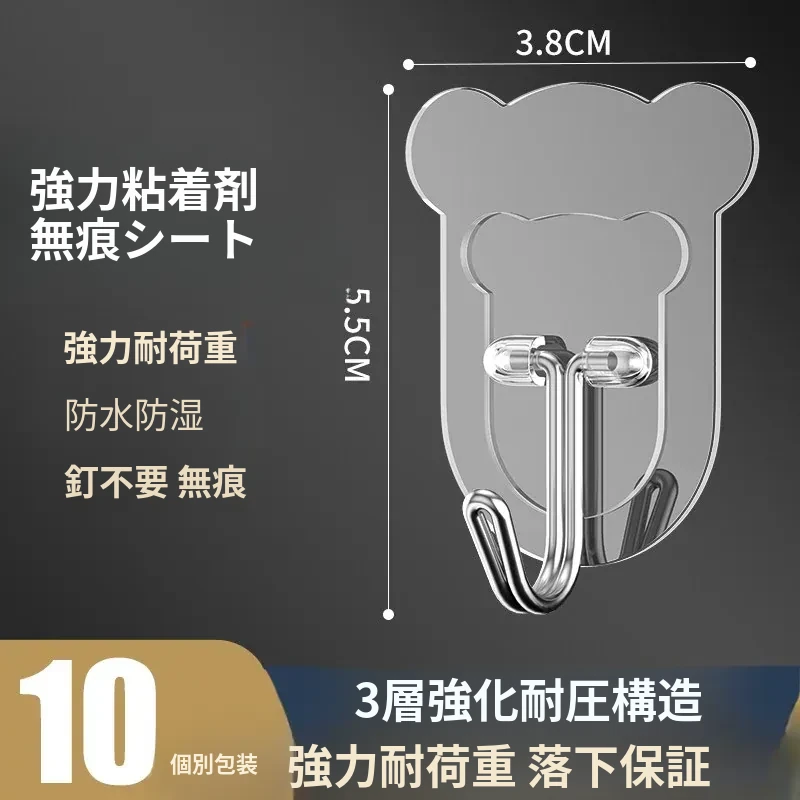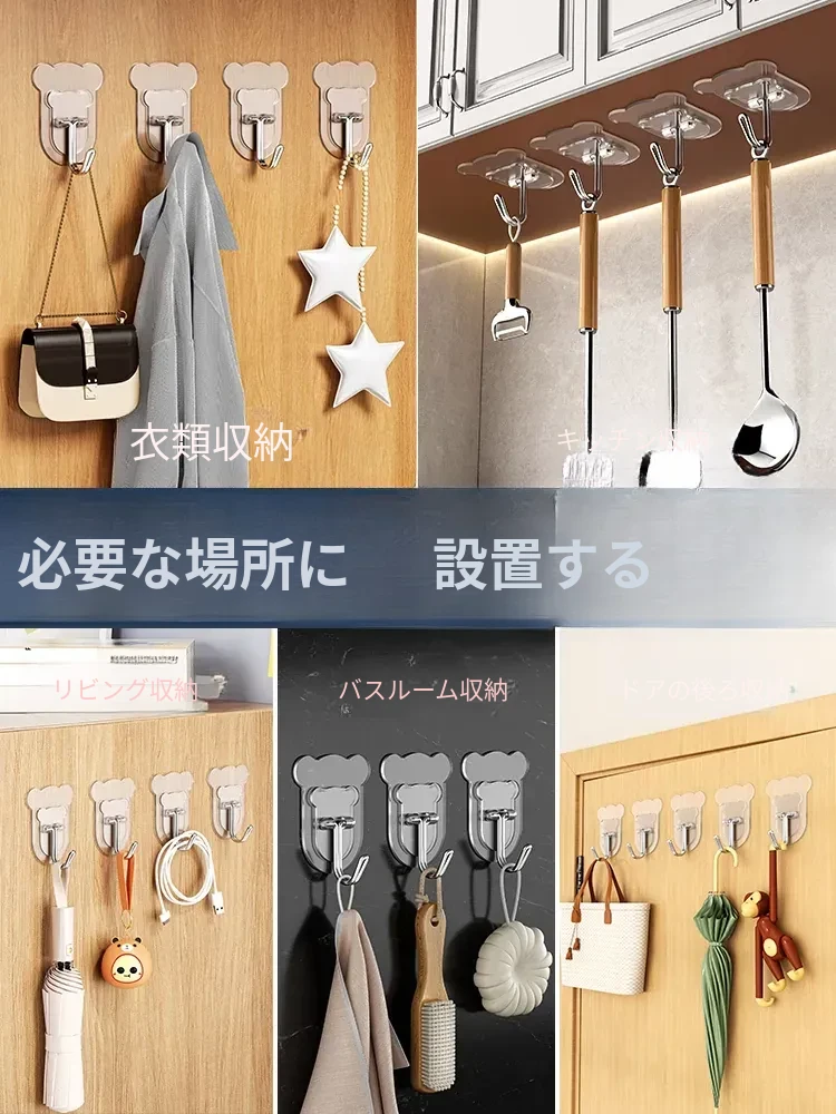 【10個セット】クリエイティブクマフック★強力粘着で落ちない