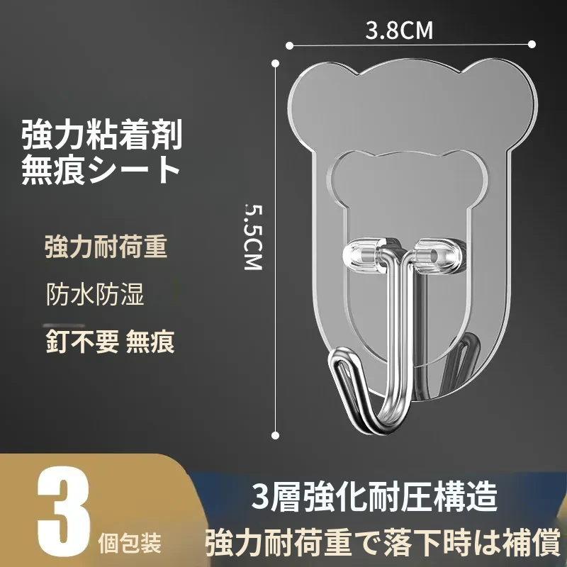 【3個セット】クリエイティブクマフック★強力粘着で落ちない