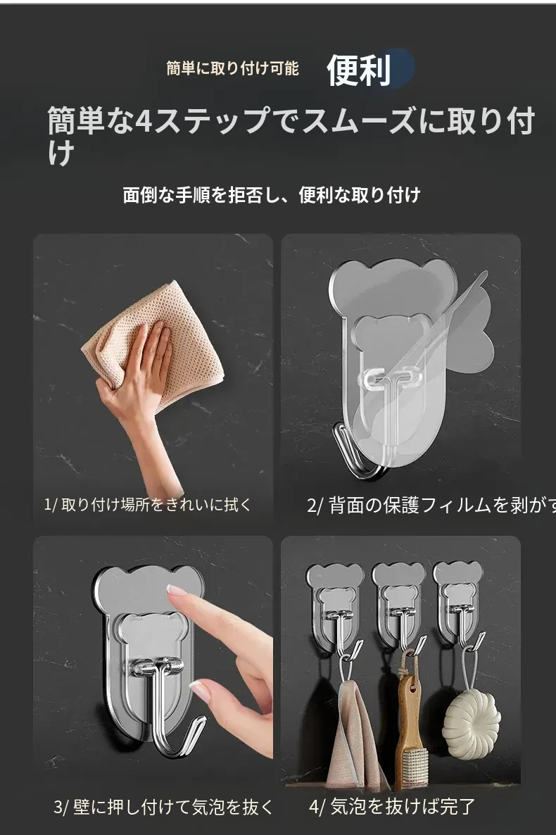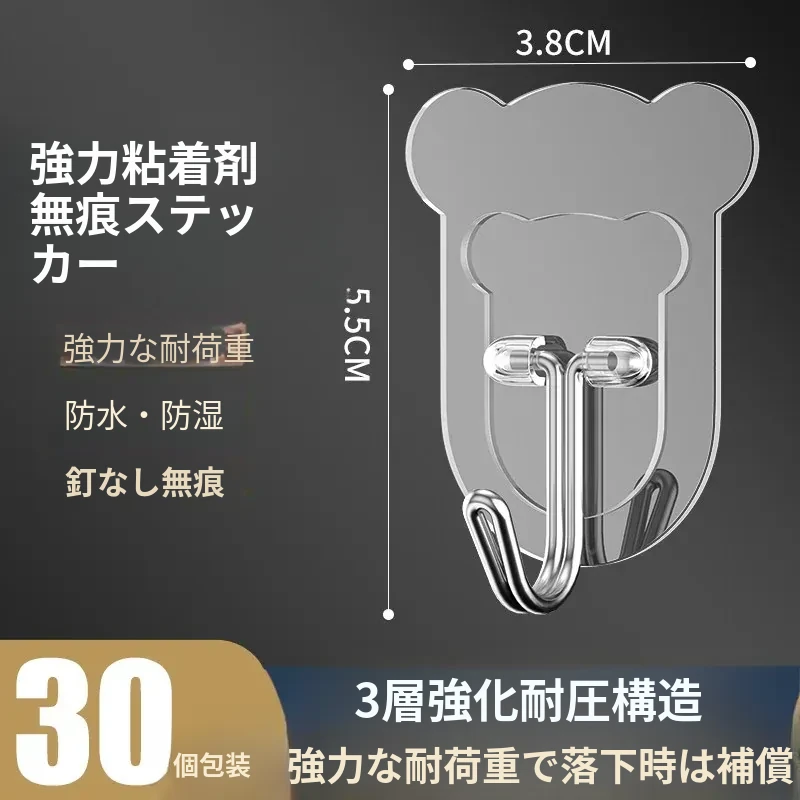 【30個セット】クリエイティブクマフック★強力粘着で落ちない