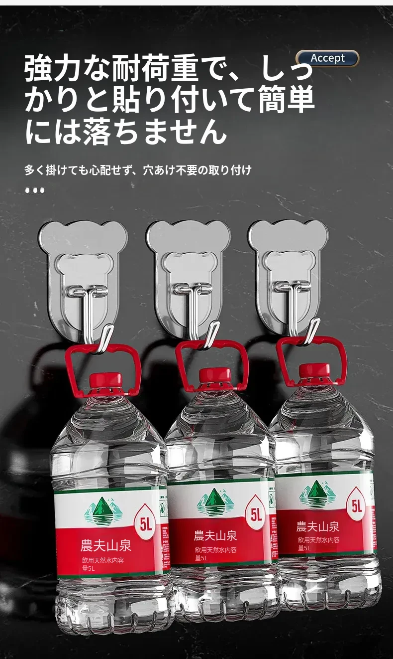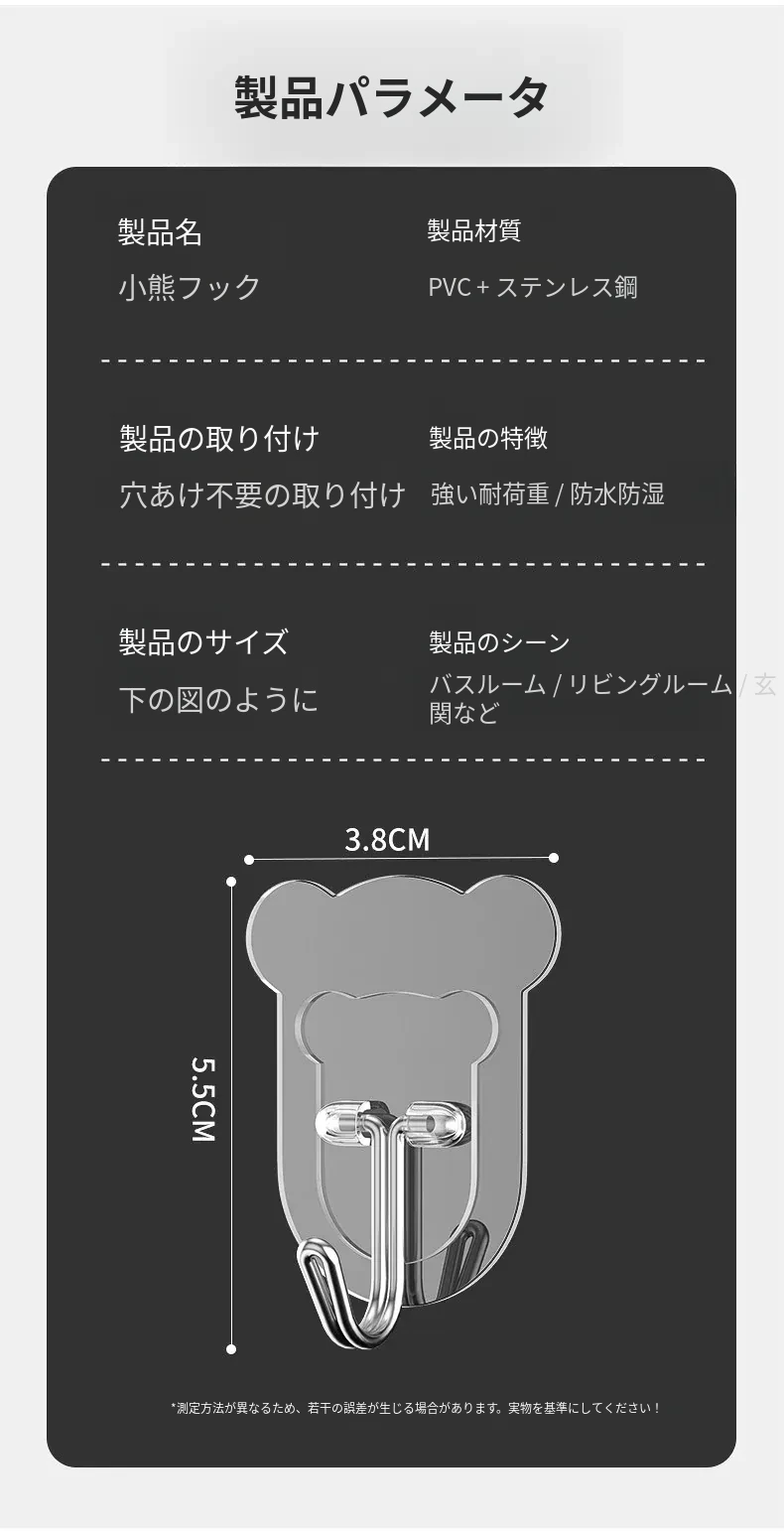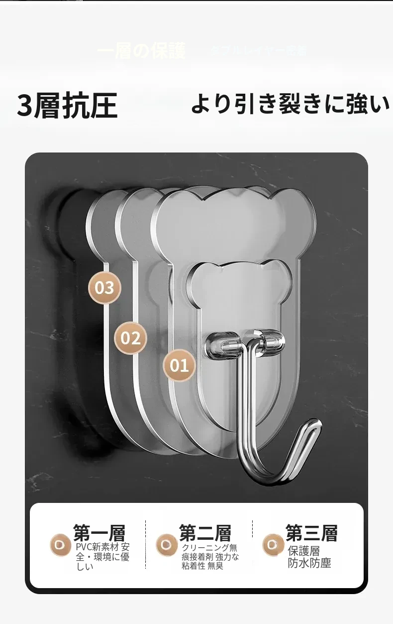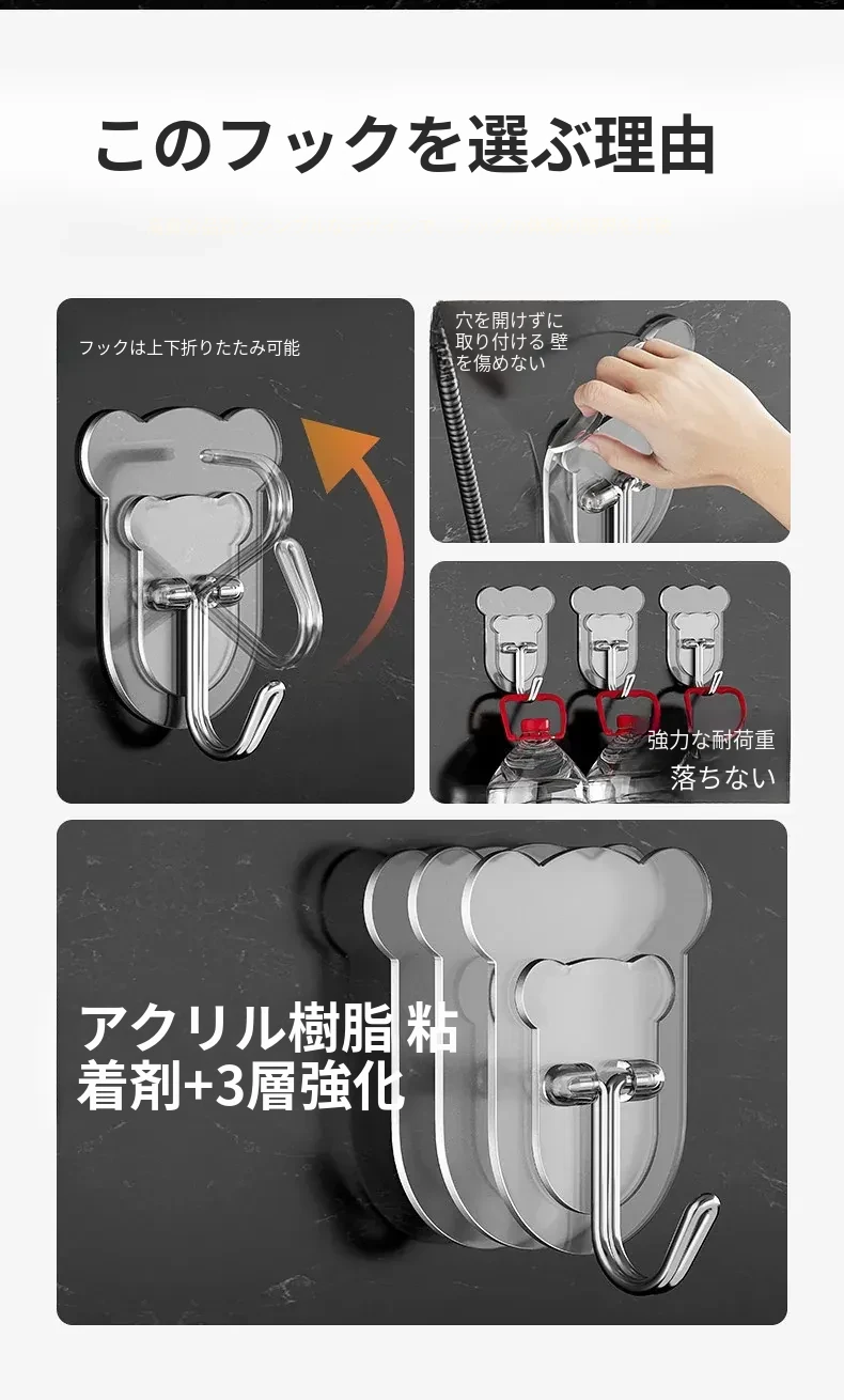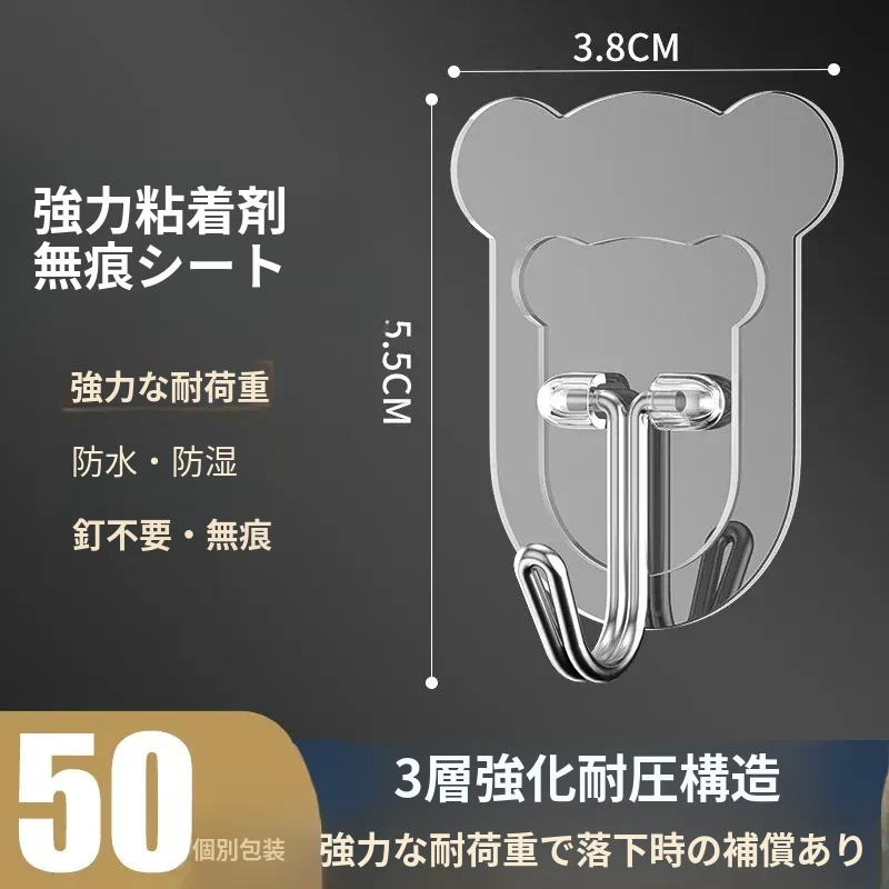 【50個セット】クリエイティブクマフック★強力粘着で落ちない