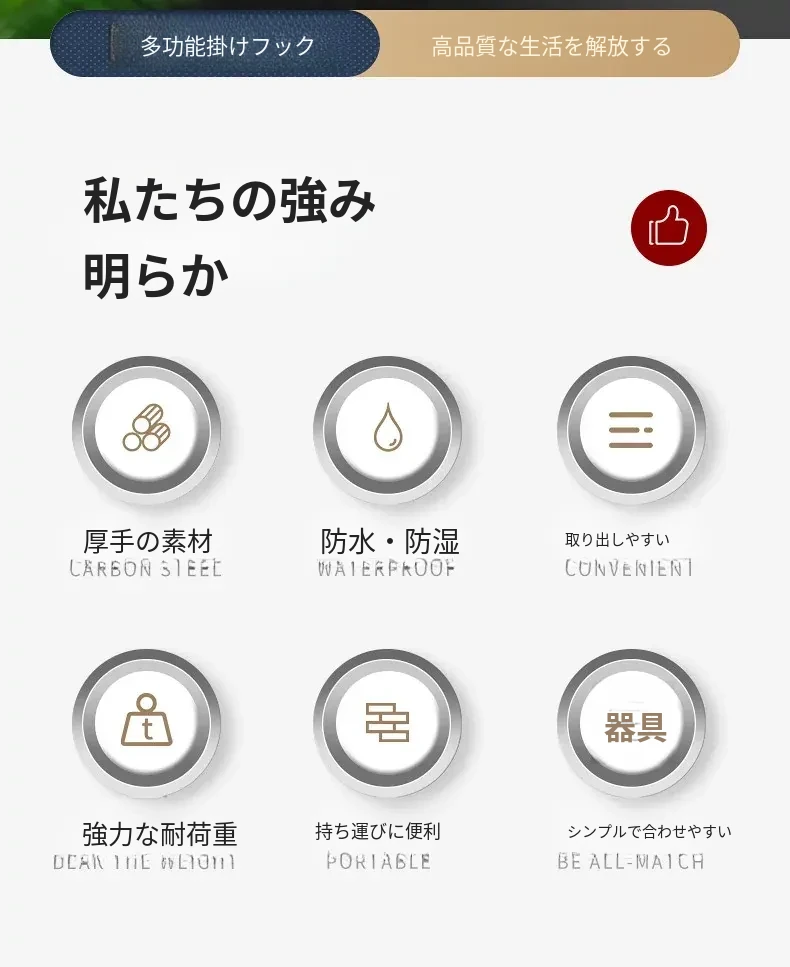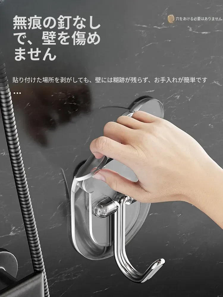 創造的フック!強力粘着で簡単取り付け、穴を開けずに壁に貼れるキッチン用衣類フック。無痕で美しい仕上がり、重さにも耐える優れた耐久性。あなたの生活を便利にするアイテムです!
