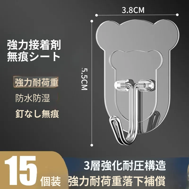 【15個セット】クリエイティブクマフック★強力粘着で落ちない