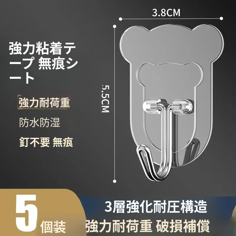 【5個セット】クリエイティブクマフック★強力粘着で落ちない