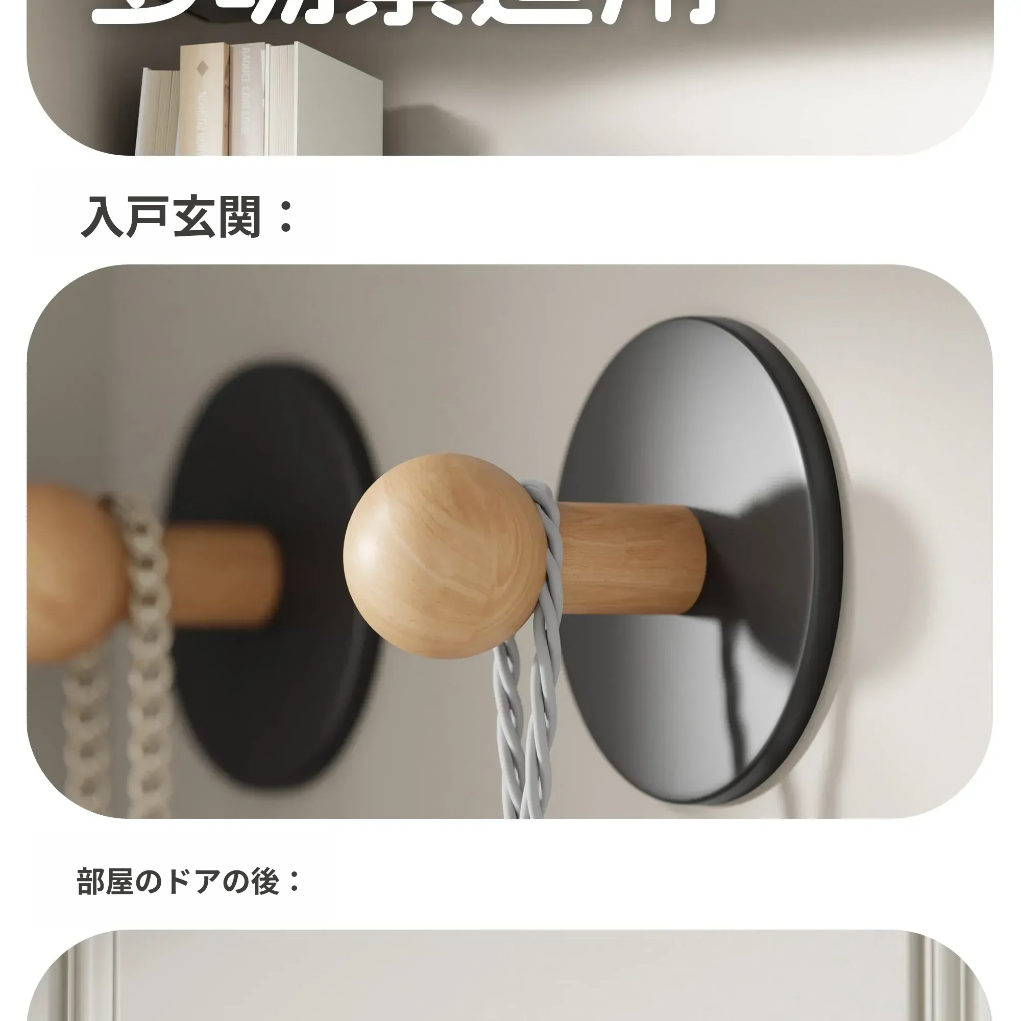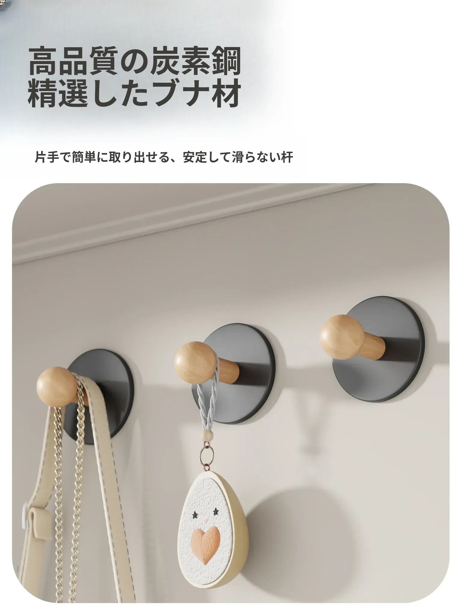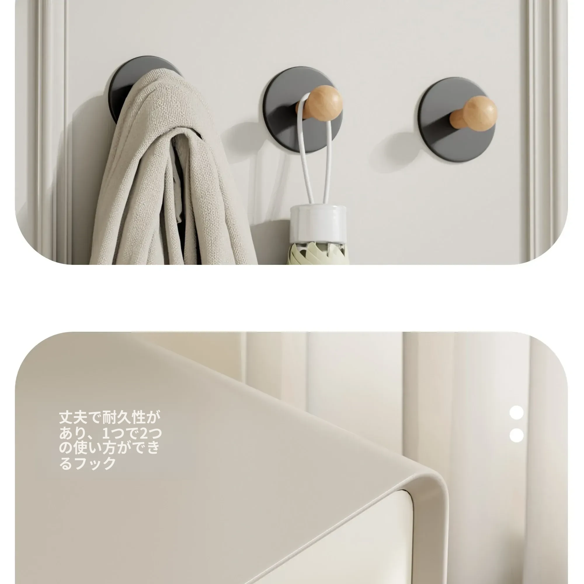 創造的フック、穴を開けずに強力粘着!バスルーム、キッチン、玄関で便利に使える衣服やバッグ、鍵を掛けるのに最適なフックです。整理整頓が簡単で、インテリアにもマッチ!