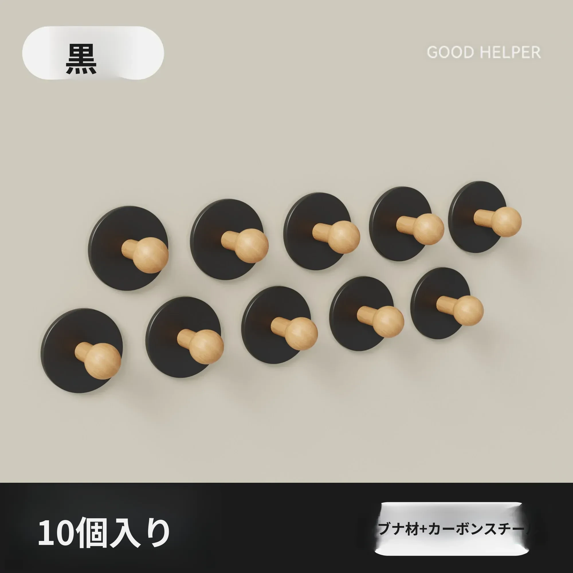 ブナ材カーボンスチール【黒色10個入り】穴あけ不要