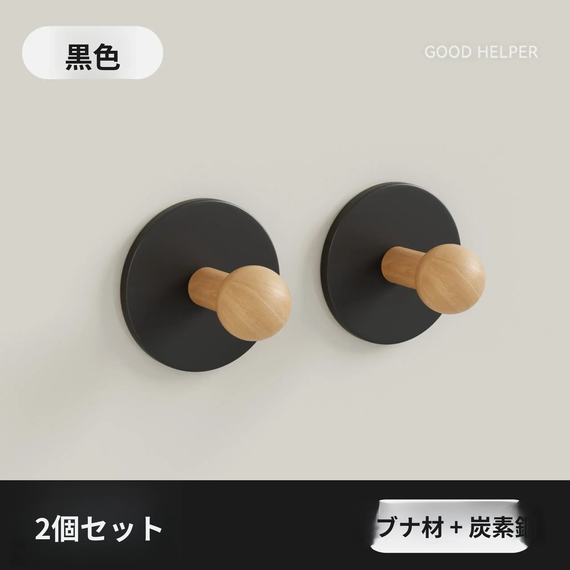 ブナ材カーボンスチール【黒色2個入り】穴あけ不要