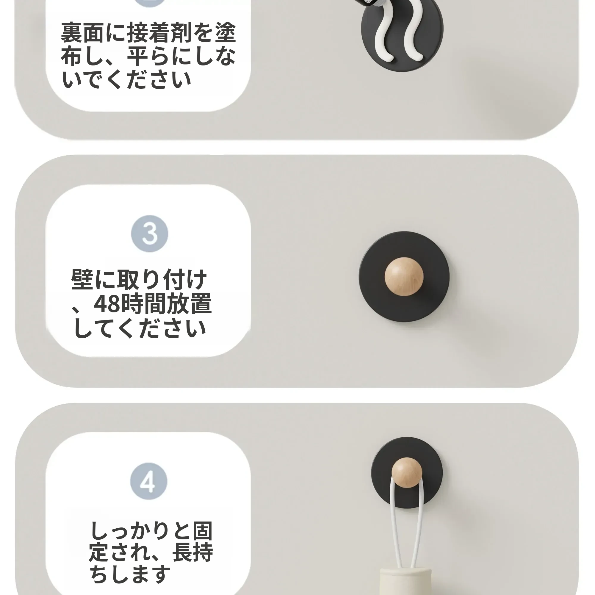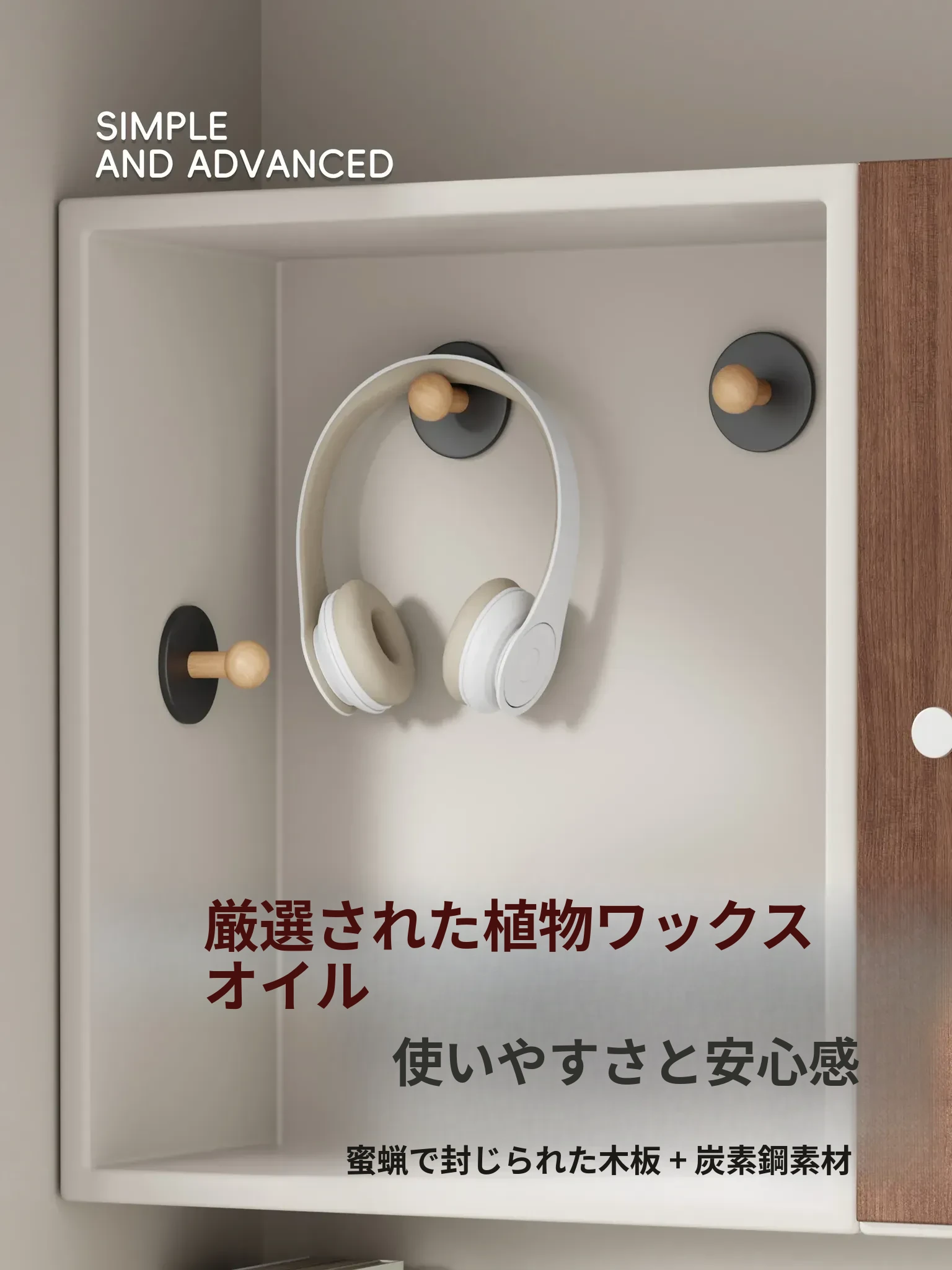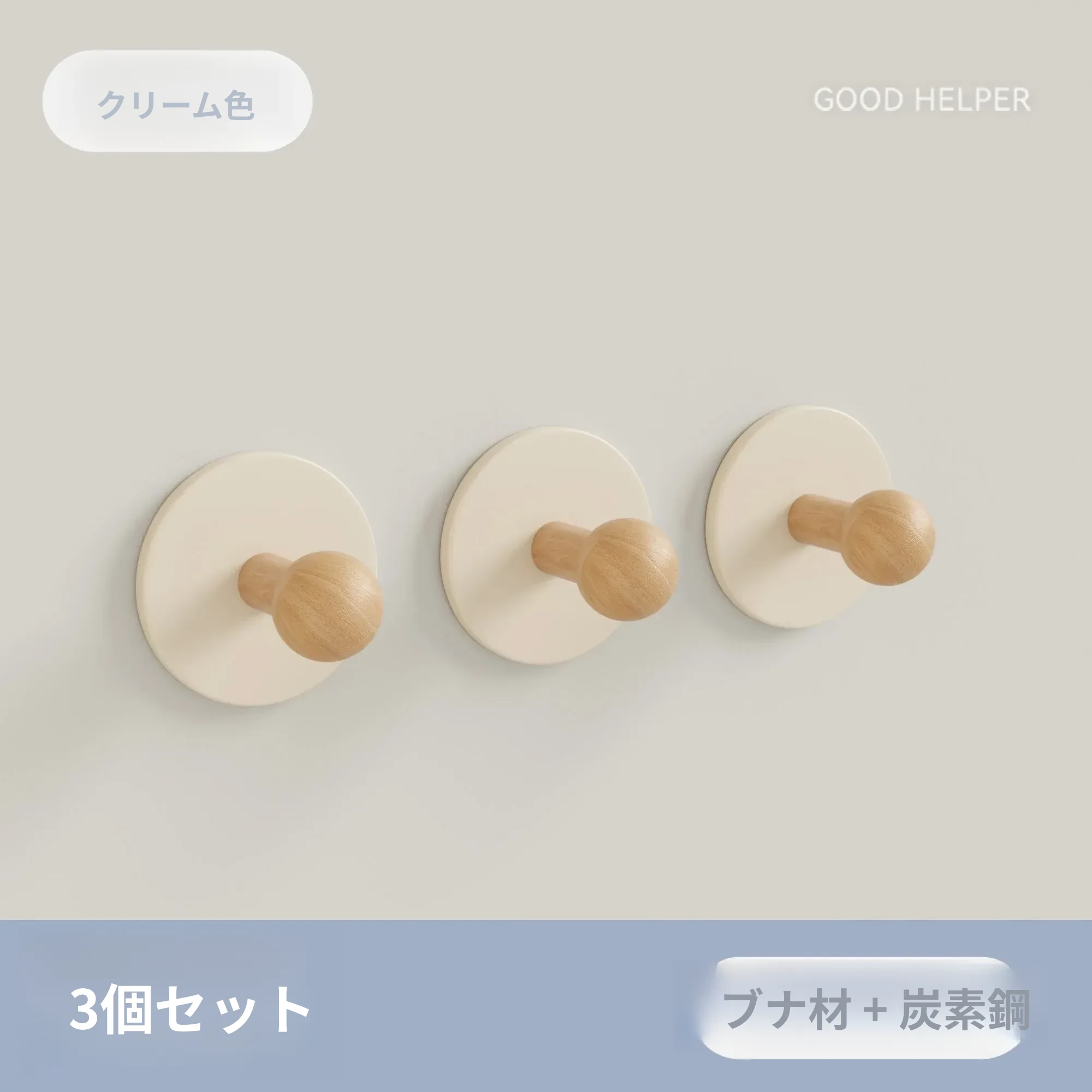 ブナ材カーボンスチール【クリーム3個入り】穴あけ不要