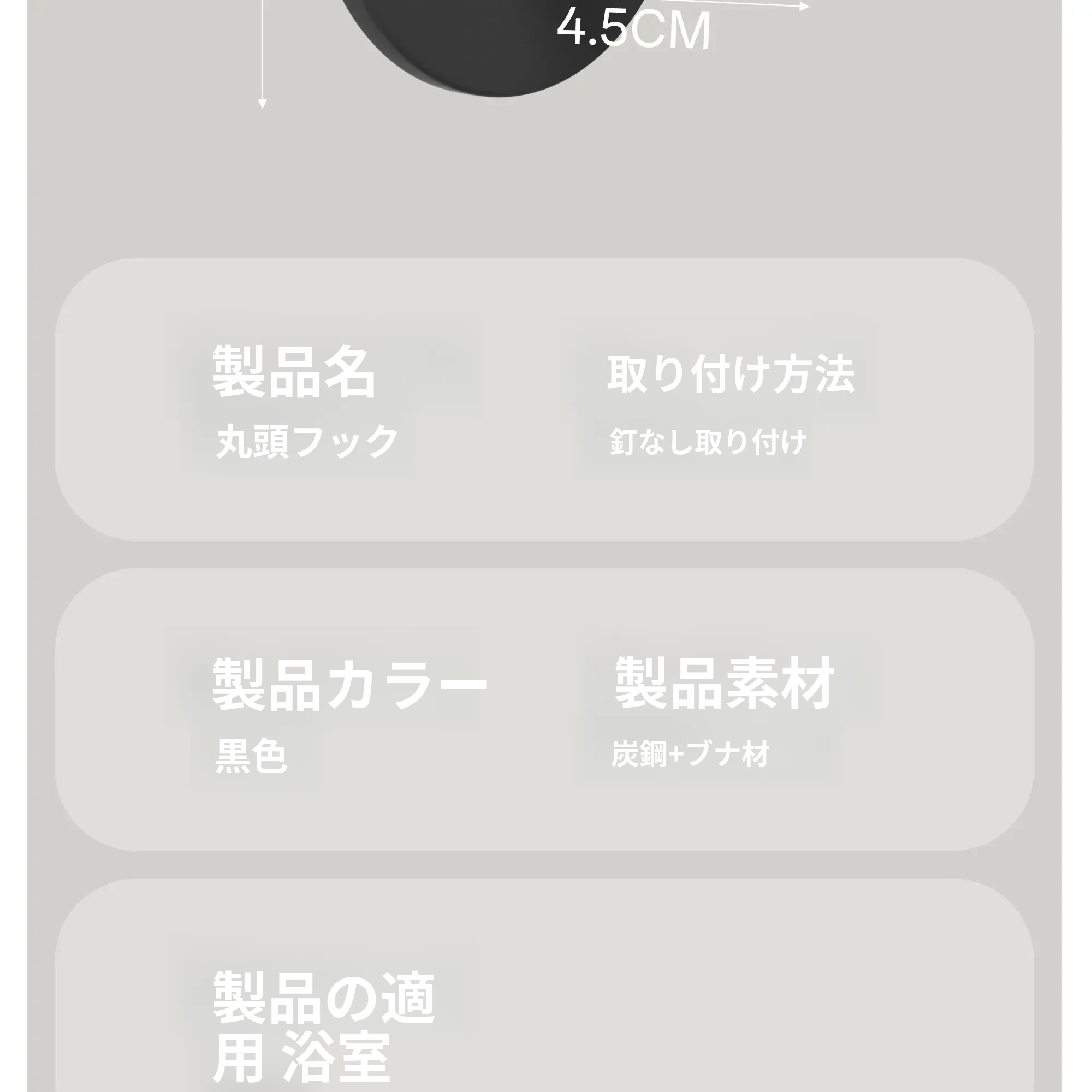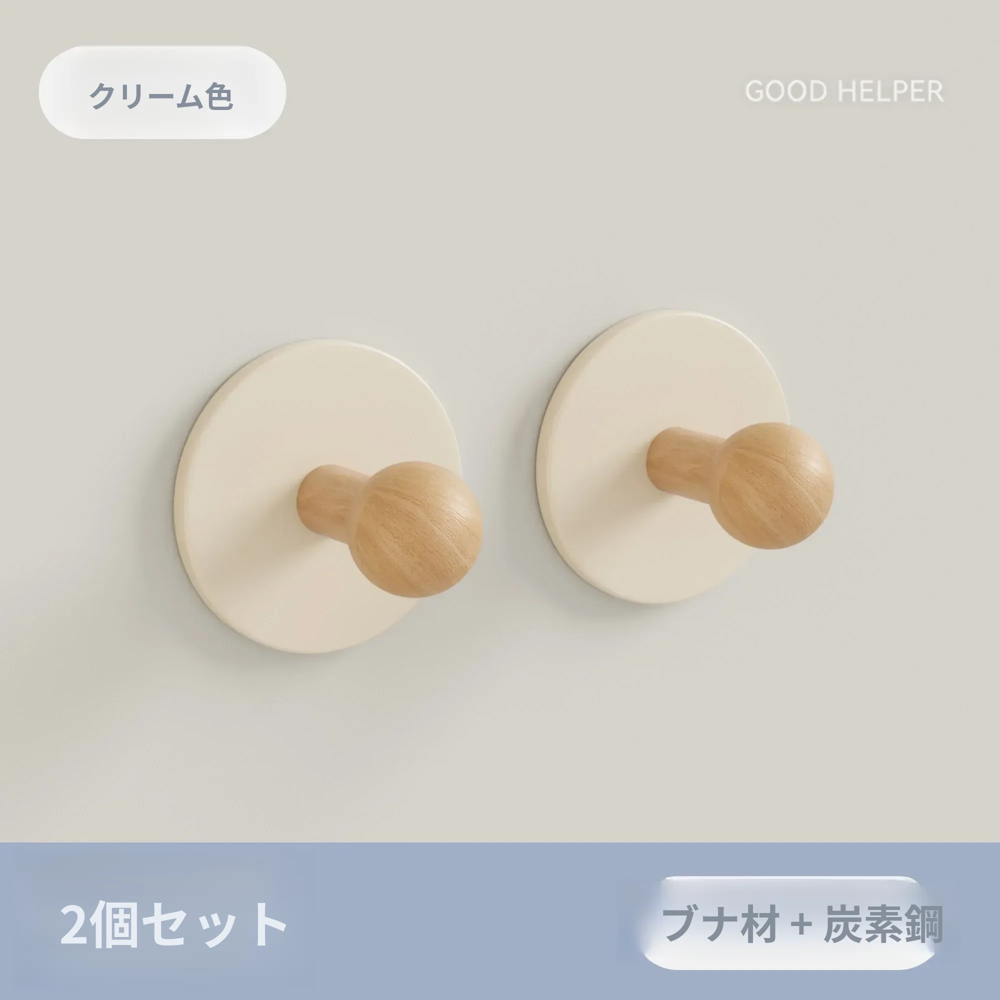ブナ材カーボンスチール【クリーム2個入り】穴あけ不要
