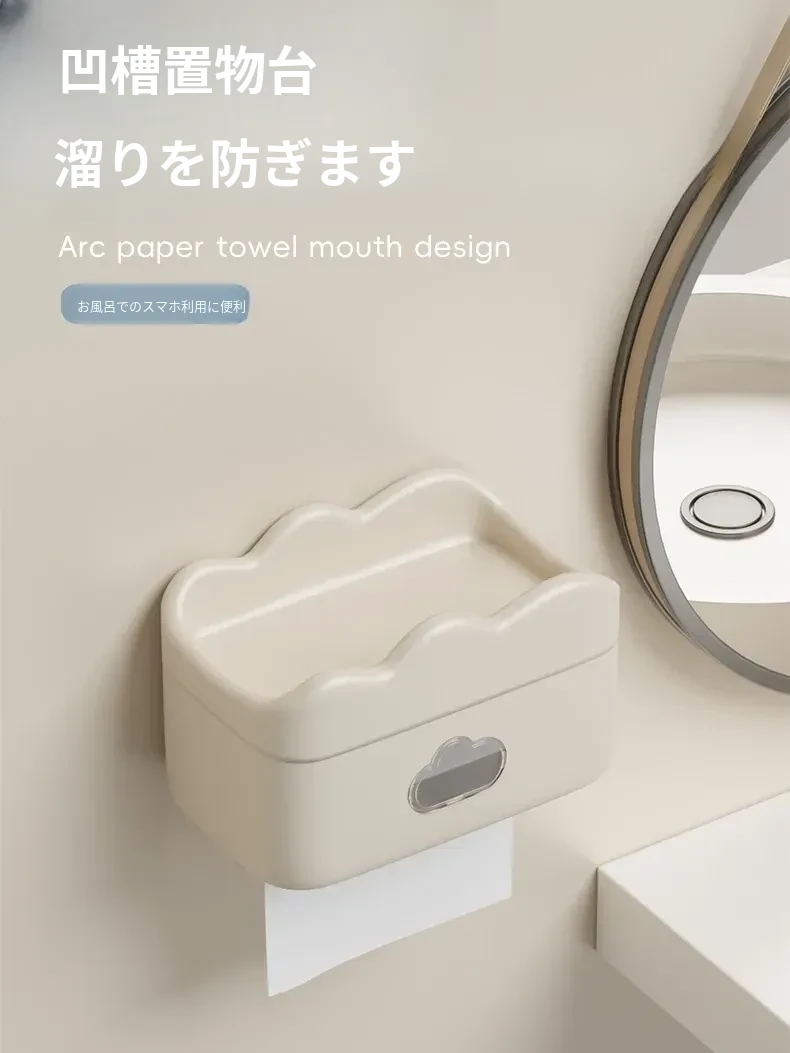 クリーム風デザインの壁掛けティッシュボックス - おしゃれで機能的なトイレ用ペーパーケース、家庭用に最適!収納力抜群で、スペースを有効活用。トイレを華やかに彩るアイテムです。