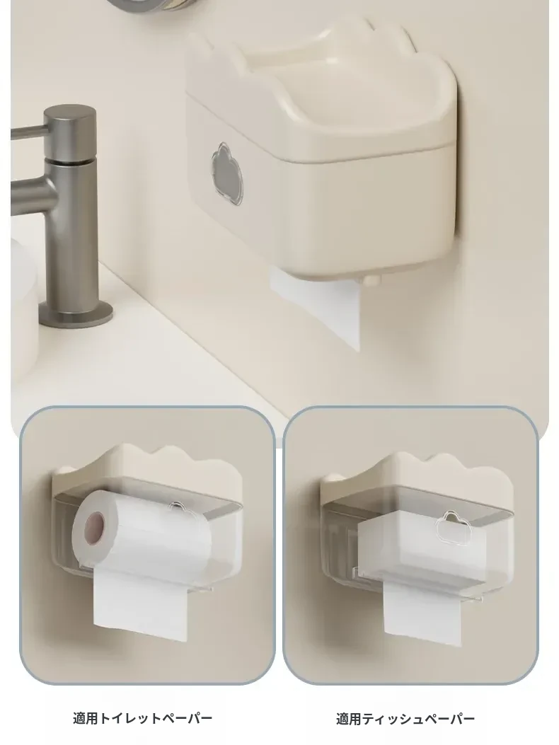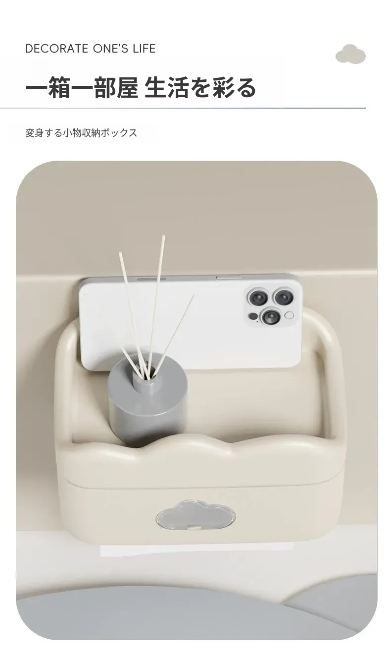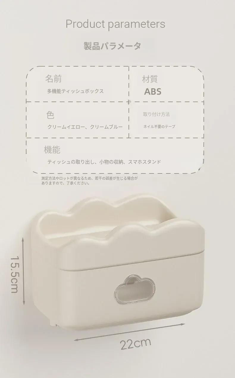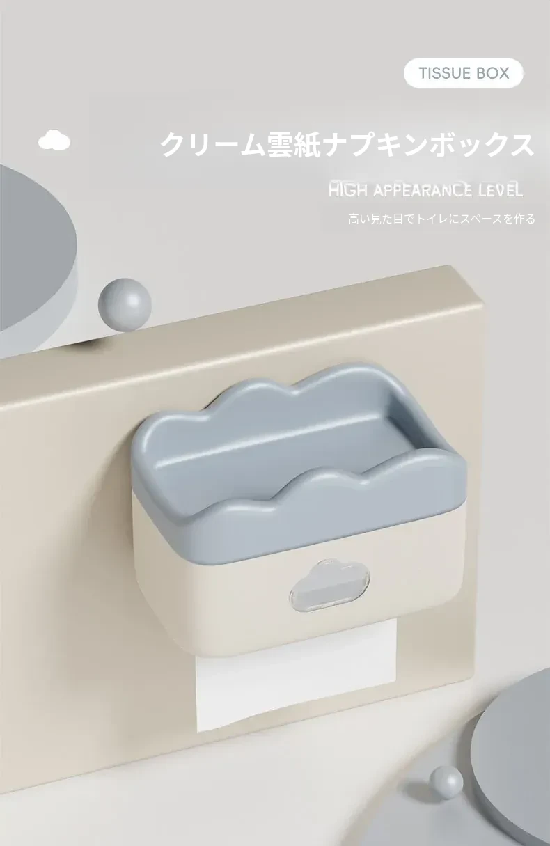 かわいいクリーム風デザインの壁掛けティッシュボックス - トイレや洗面所に最適!穴あけ不要で簡単取り付け、清潔感あふれるおしゃれな空間を演出します。