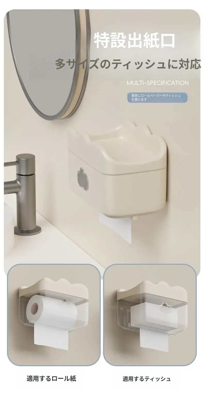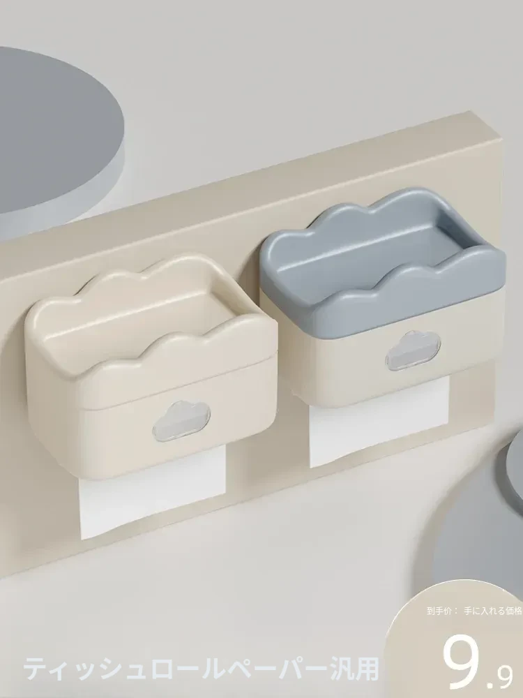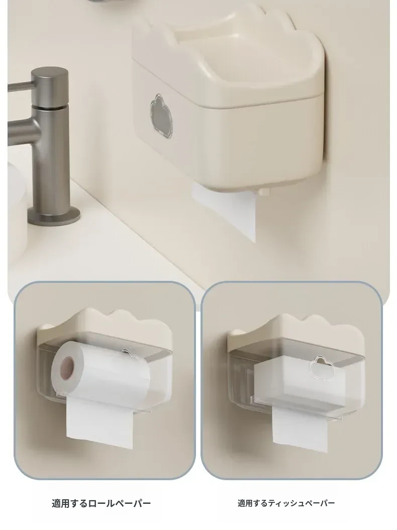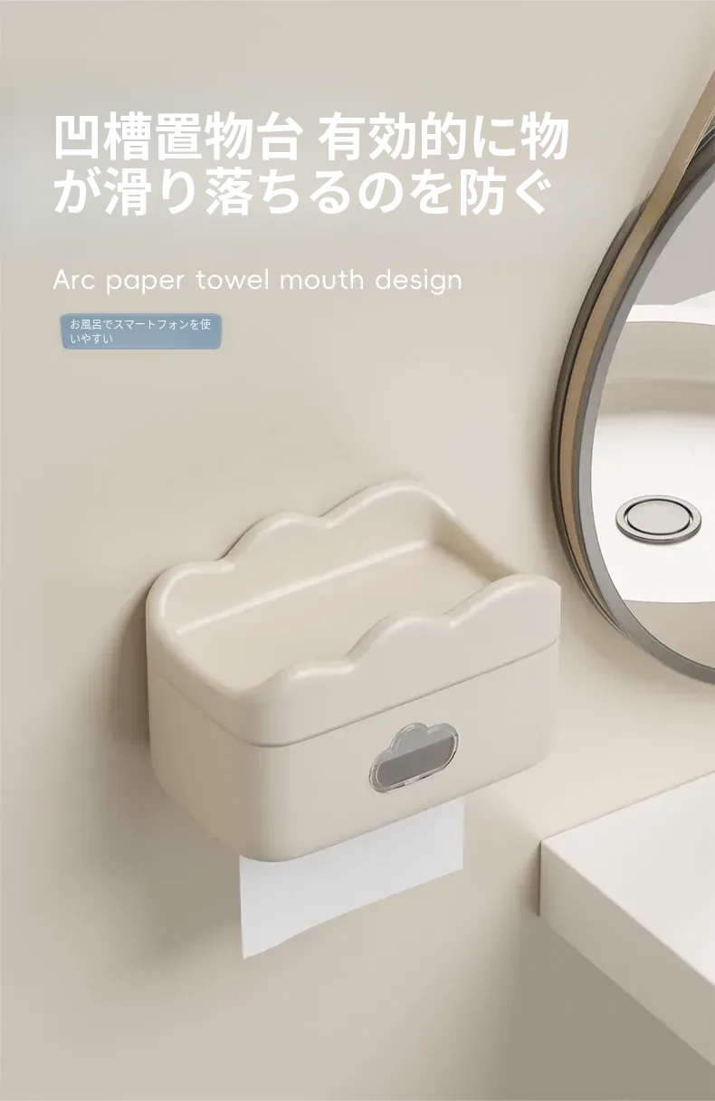 かわいいクリーム風デザインの壁掛けティッシュボックス - トイレや洗面所に最適!穴あけ不要で簡単取り付け、清潔感あふれるおしゃれな空間を演出します。