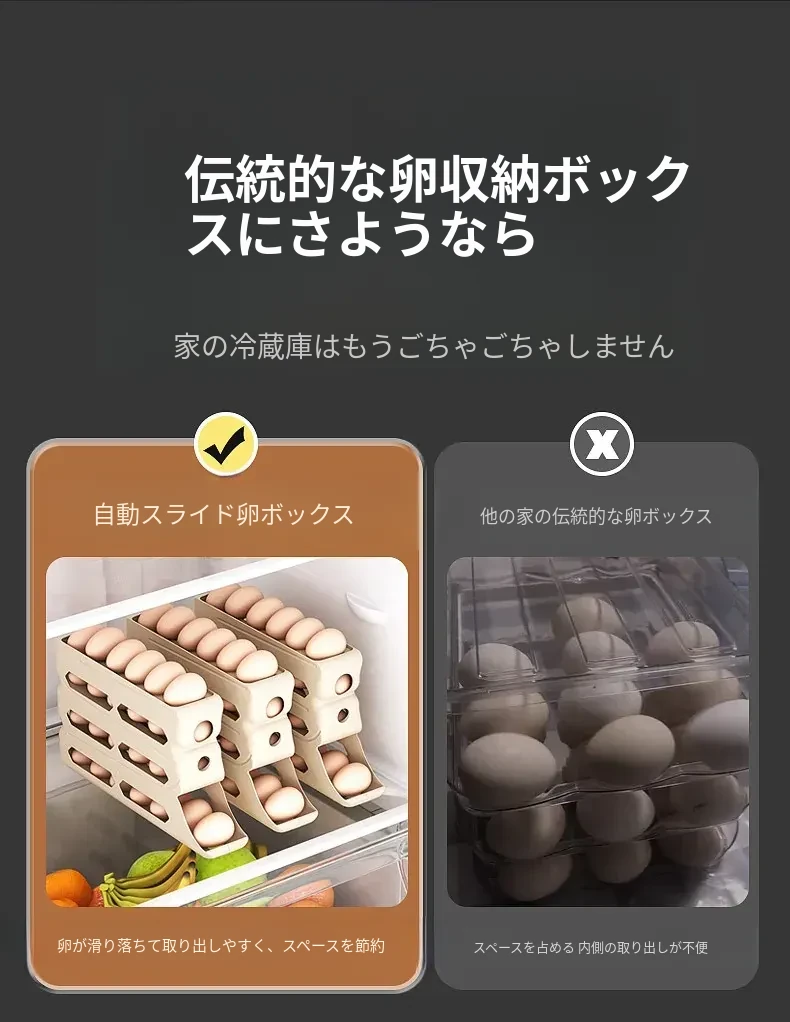 冷蔵庫用の卵収納ボックス - サイドドアにピッタリ!新鮮な卵を整理整頓!食材の鮮度を保つ卵ラック、便利な収納でキッチンをスッキリ!