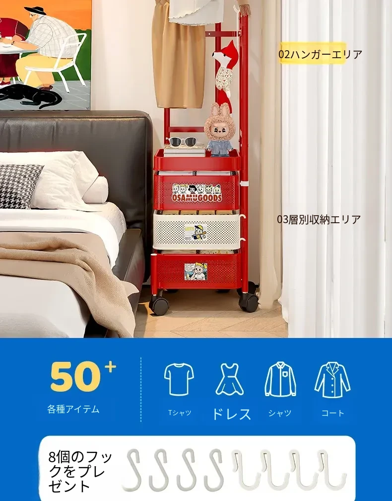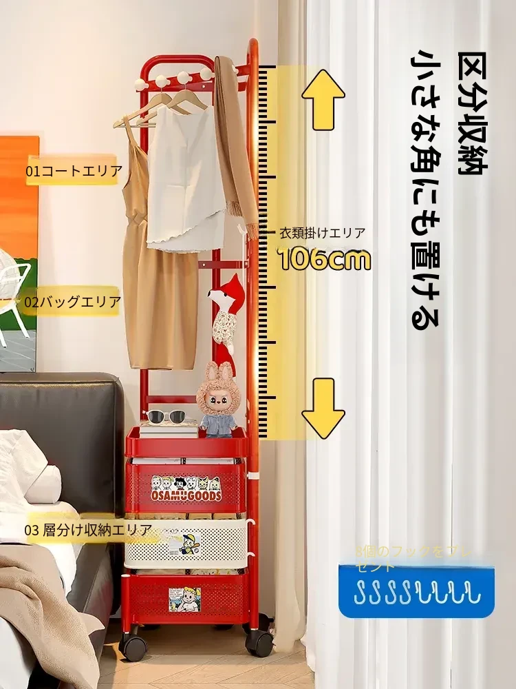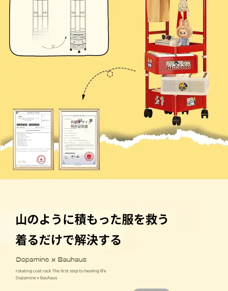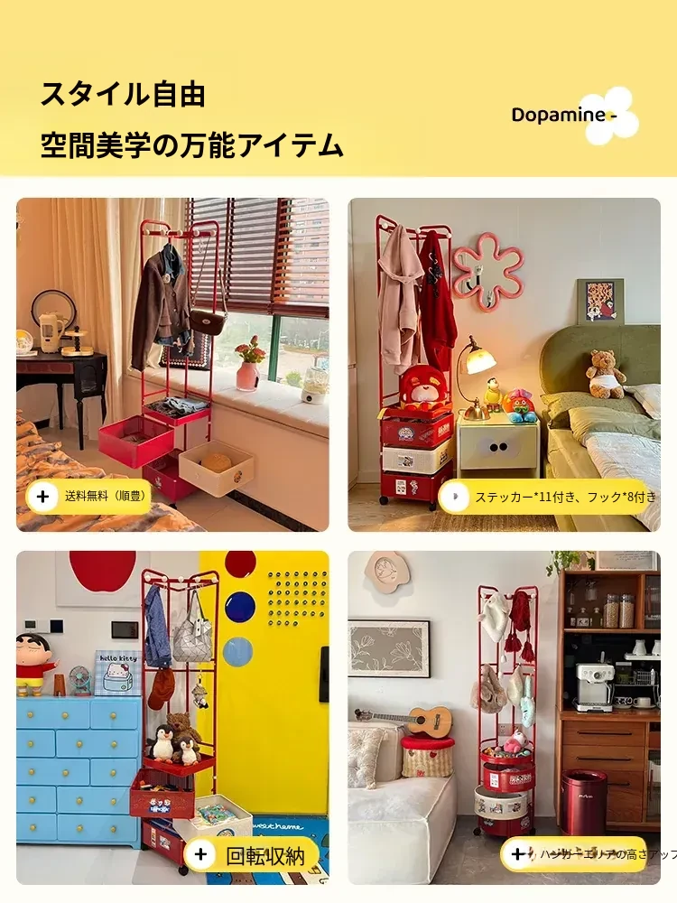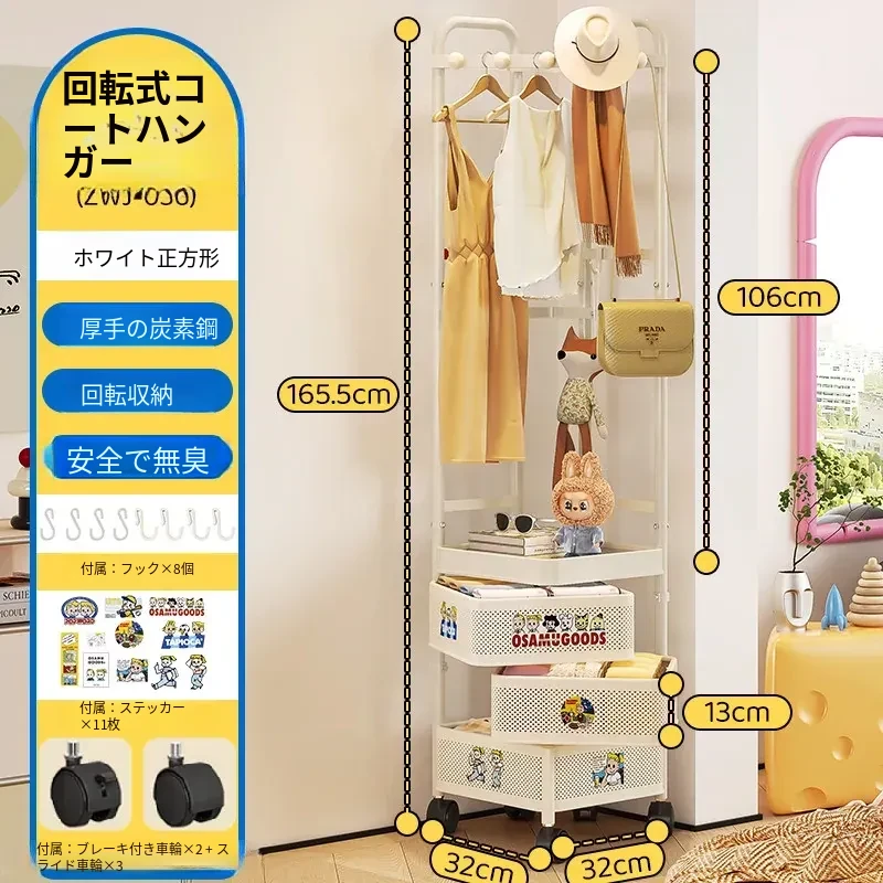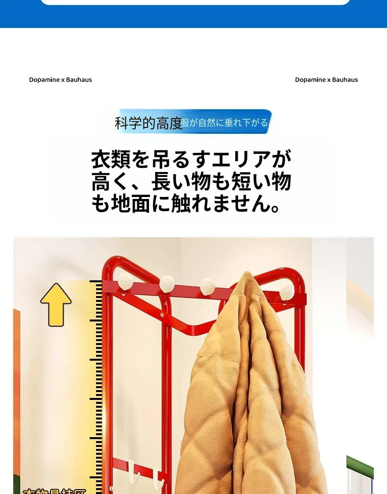 【達人専用】ドーパミンハンガー!移動可能な角型コートラックで、あなたの寝室をスタイリッシュに。収納力抜群で、洋服を美しくディスプレイ。家での使い勝手を追求した一体型の掛け具です。