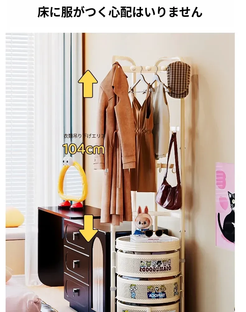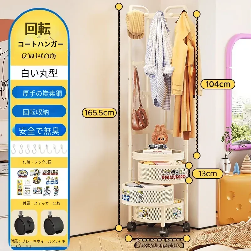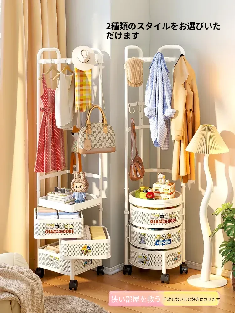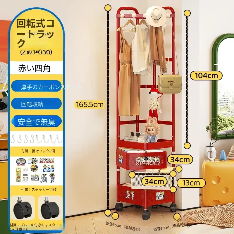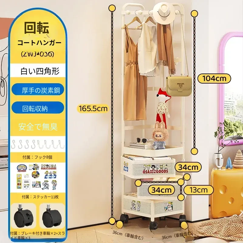 フリンス コーナーコートラック 家庭用ドア前移動式ハンガーラック 寝室用クリーン衣類ラック フロアベッドサイド収納棚で、スタイリッシュにお部屋を演出!