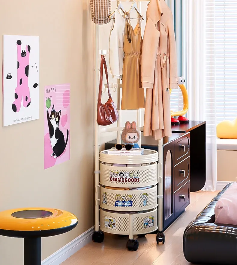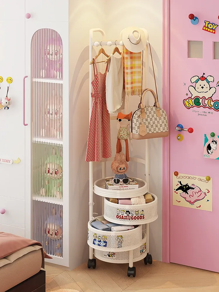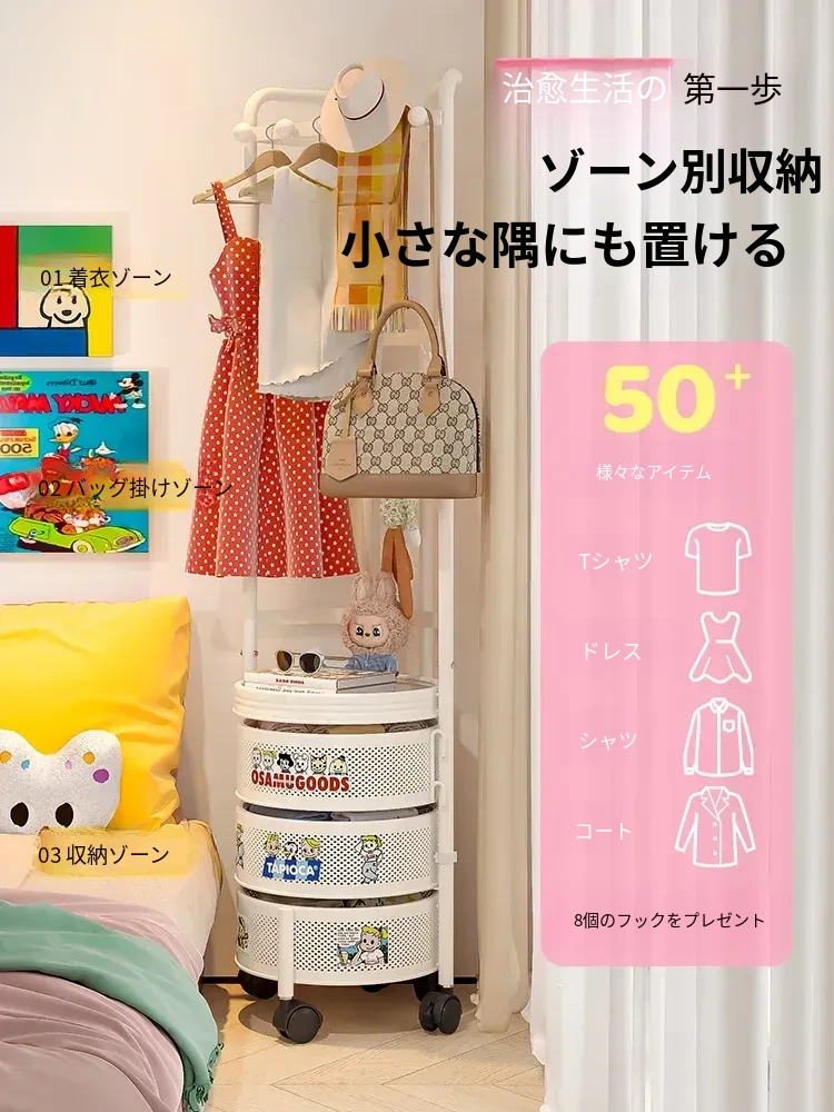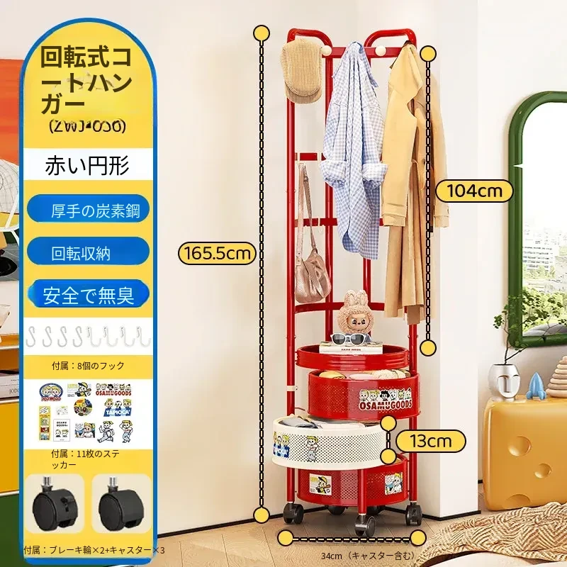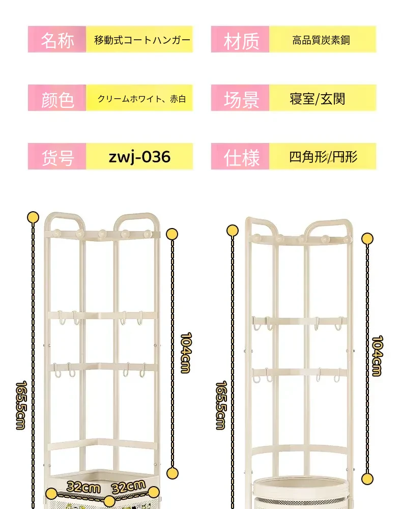 フリンス コーナーコートラック 家庭用ドア前移動式ハンガーラック 寝室用クリーン衣類ラック フロアベッドサイド収納棚で、スタイリッシュにお部屋を演出!
