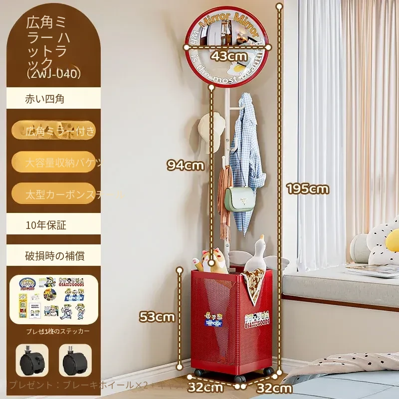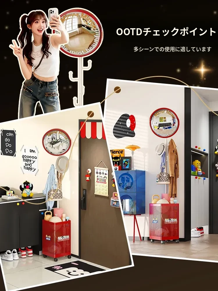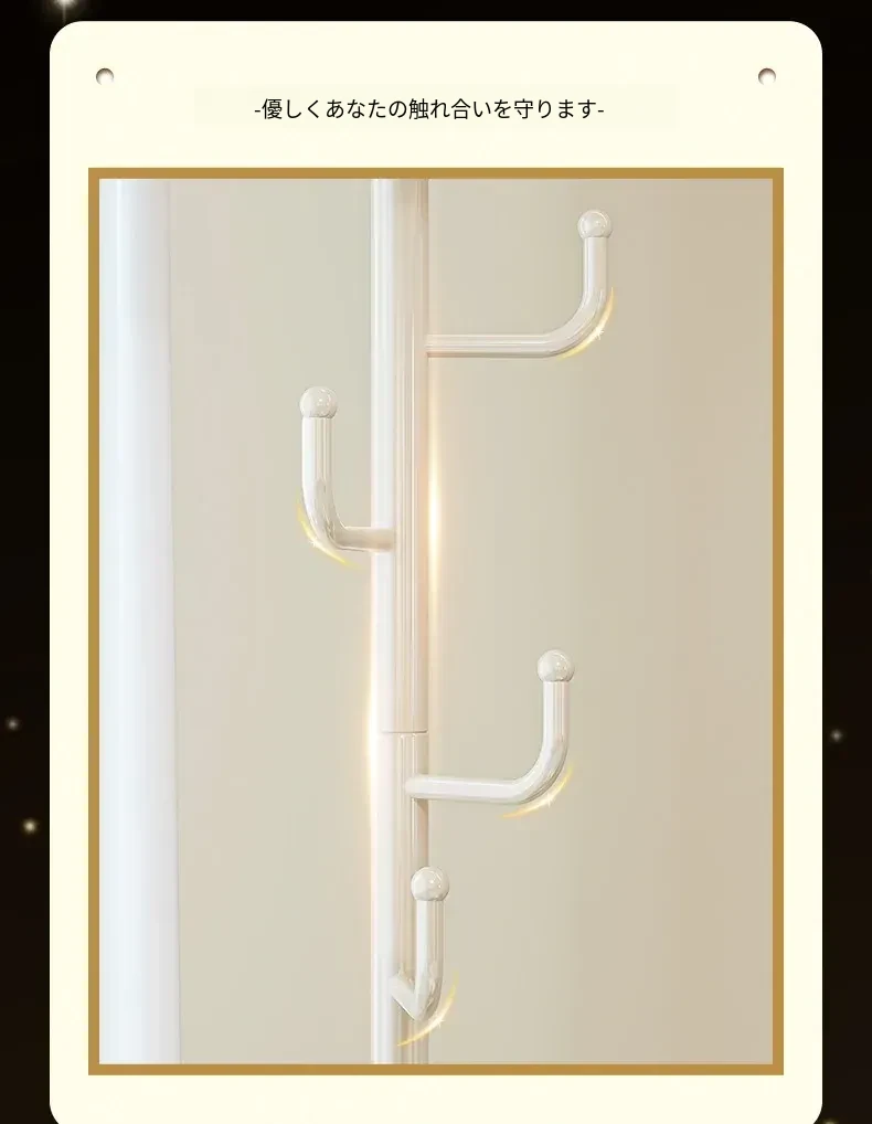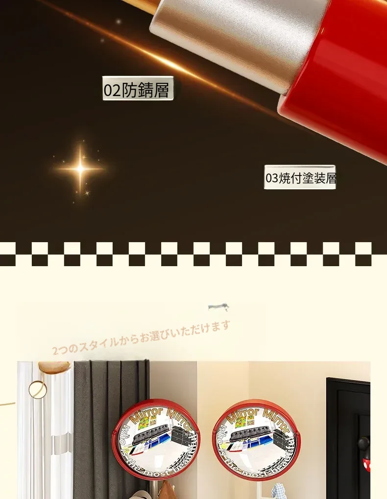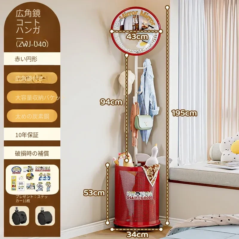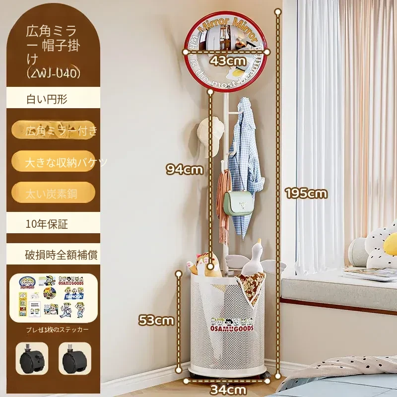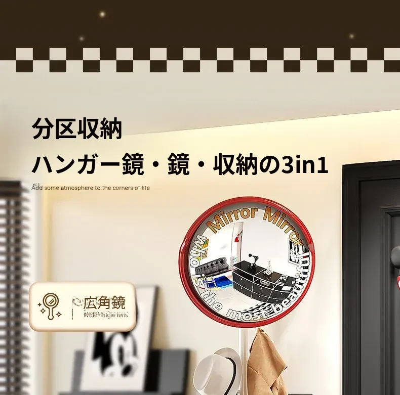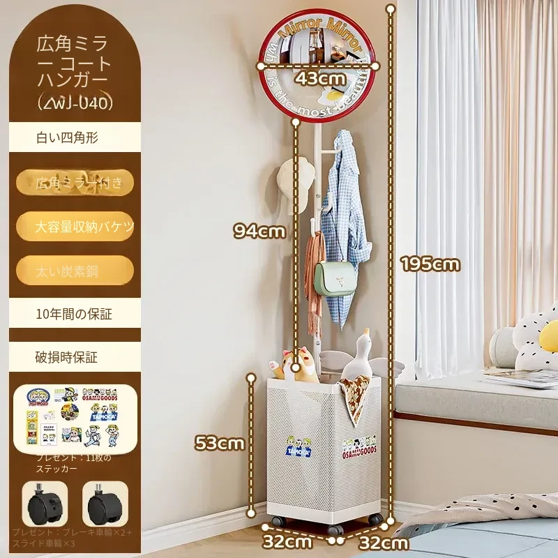 フリンス広角ミラー付きコーナーコートハンガー - ベッドルームや玄関に最適なスタイリッシュな衣類ラック!省スペースで収納力抜群、スッキリとした空間を演出します。