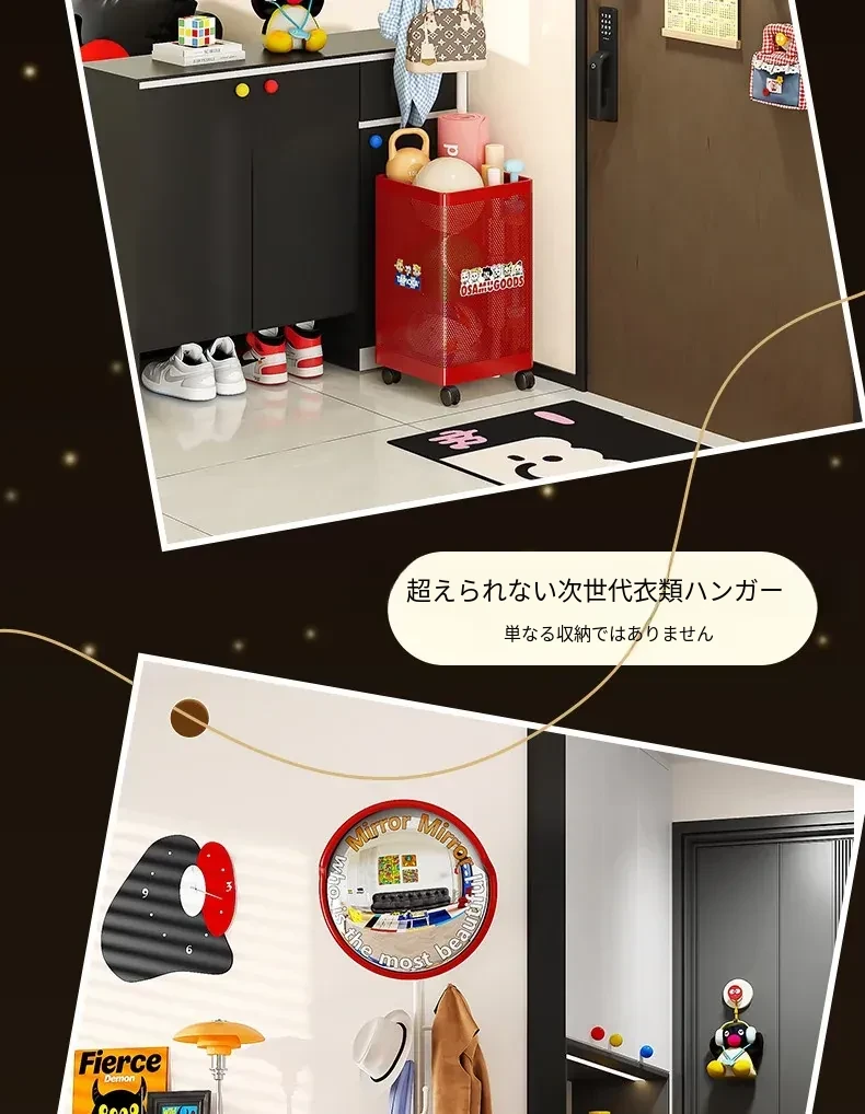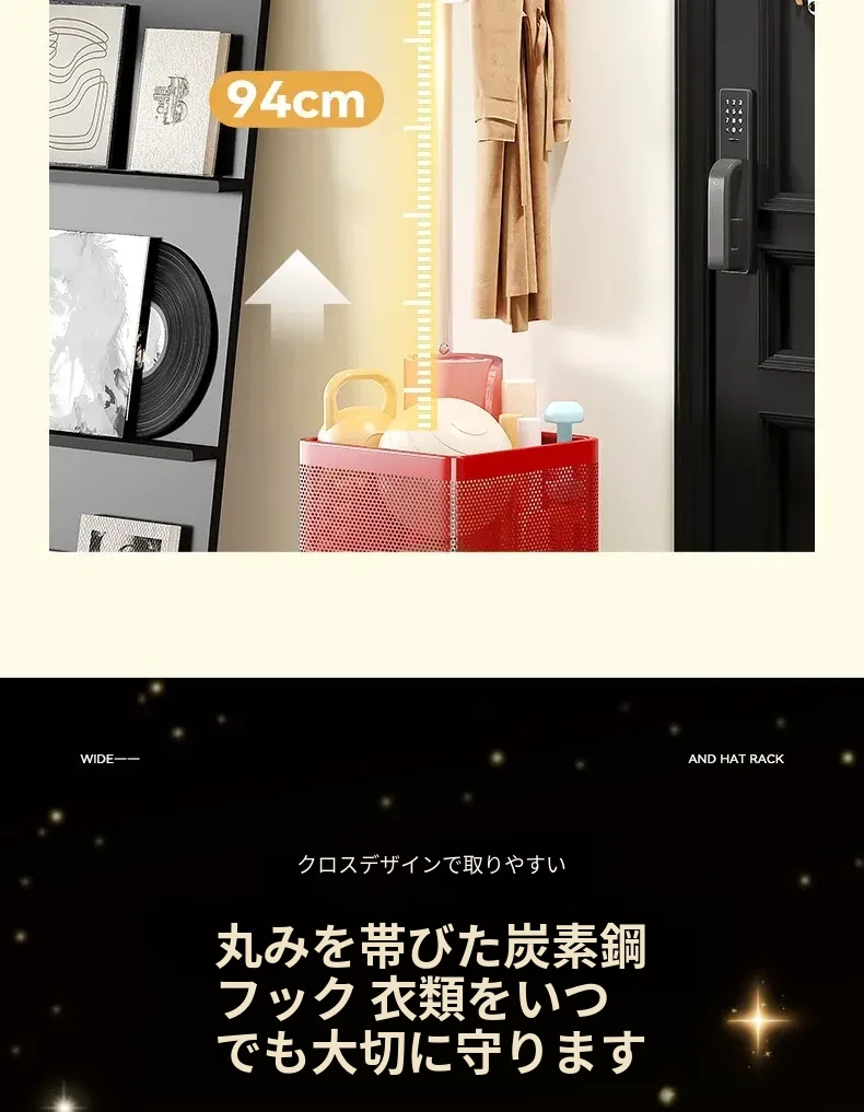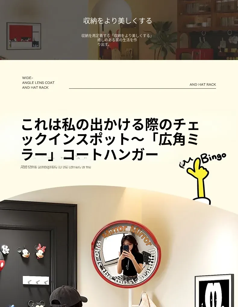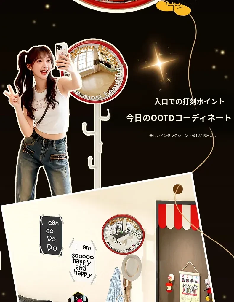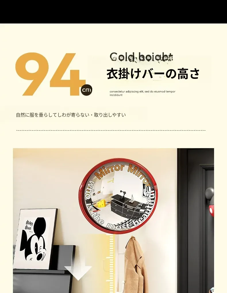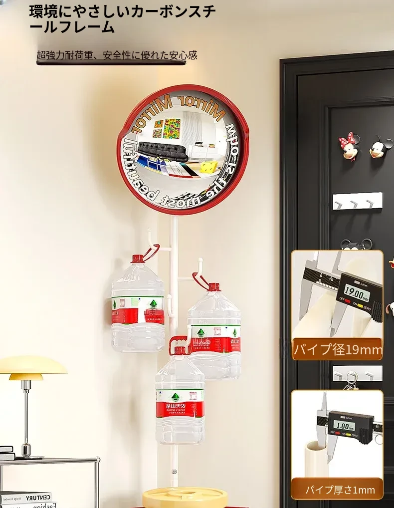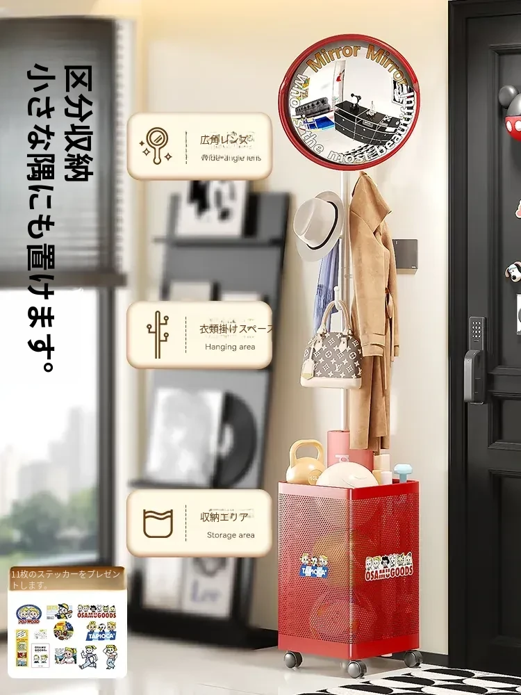 フリンス広角ミラー付きコーナーコートハンガー - ベッドルームや玄関に最適なスタイリッシュな衣類ラック!省スペースで収納力抜群、スッキリとした空間を演出します。