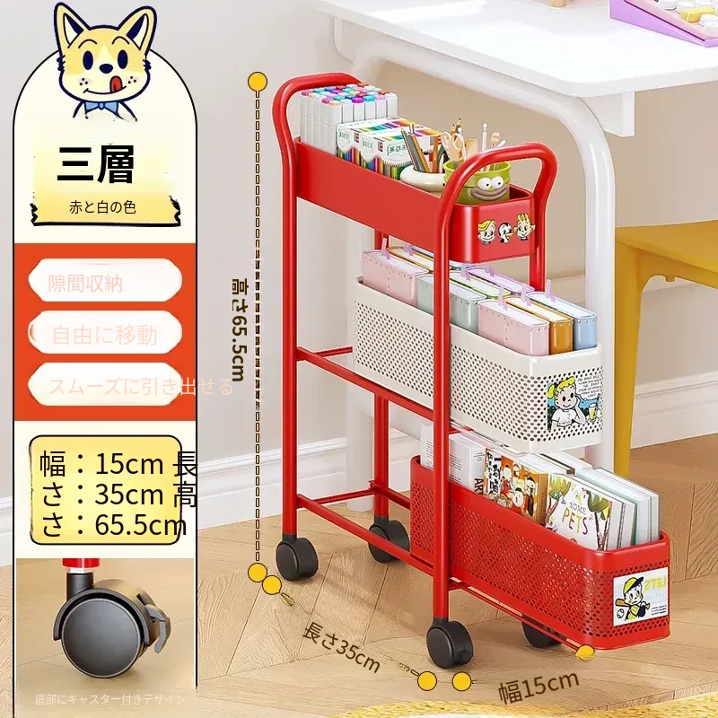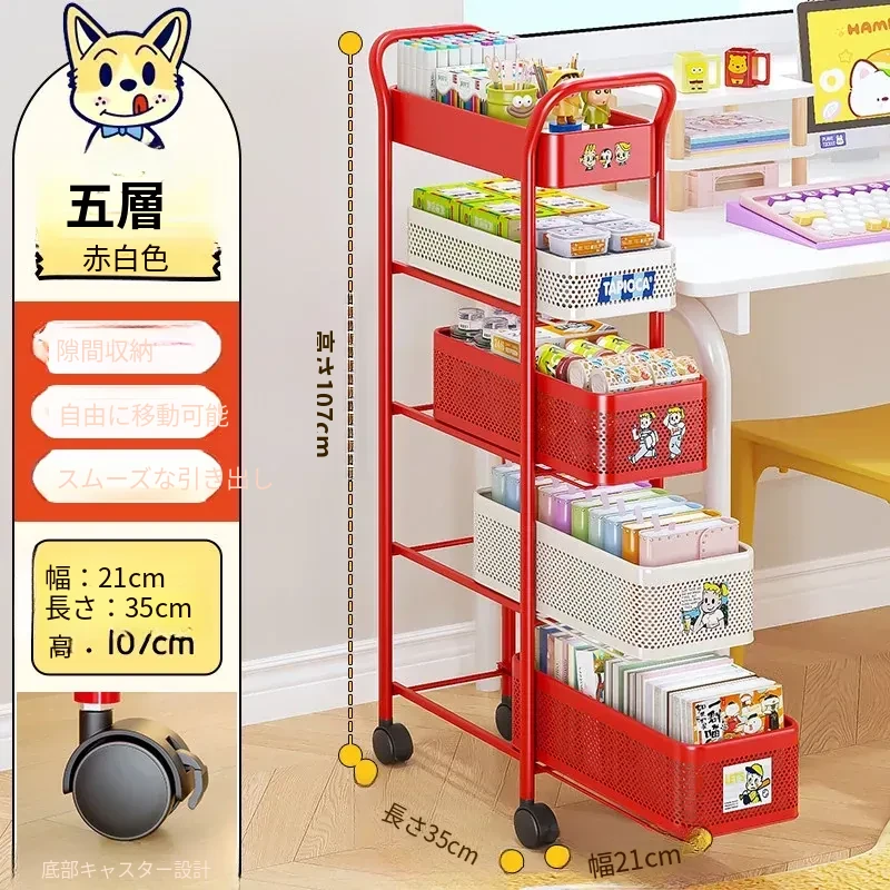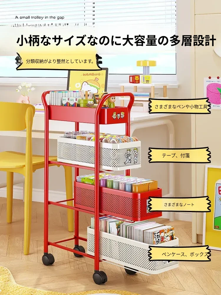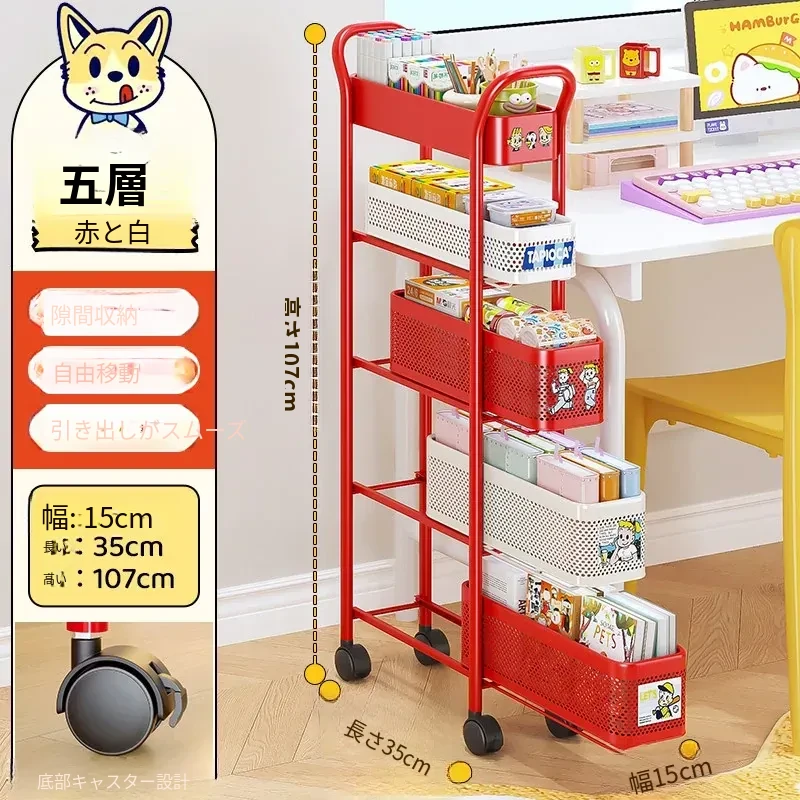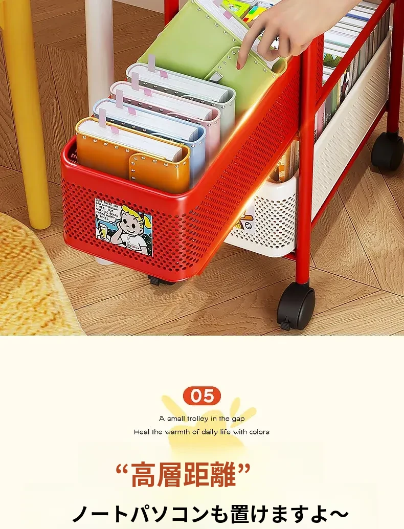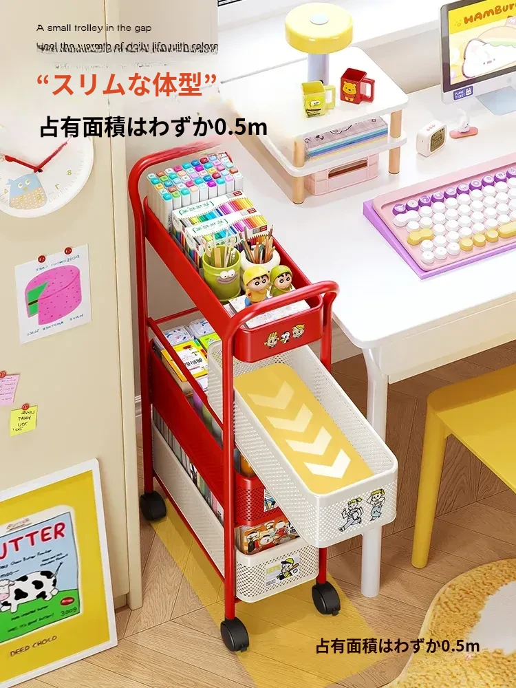 フリンストバミン文具収納ミニカート - 移動式ブックシェルフ、デスクサイド・ベッドサイドにぴったりなスリムデザインの隙間収納ラック!おしゃれで機能的、スペースを有効活用し、あなたの生活を便利にします。