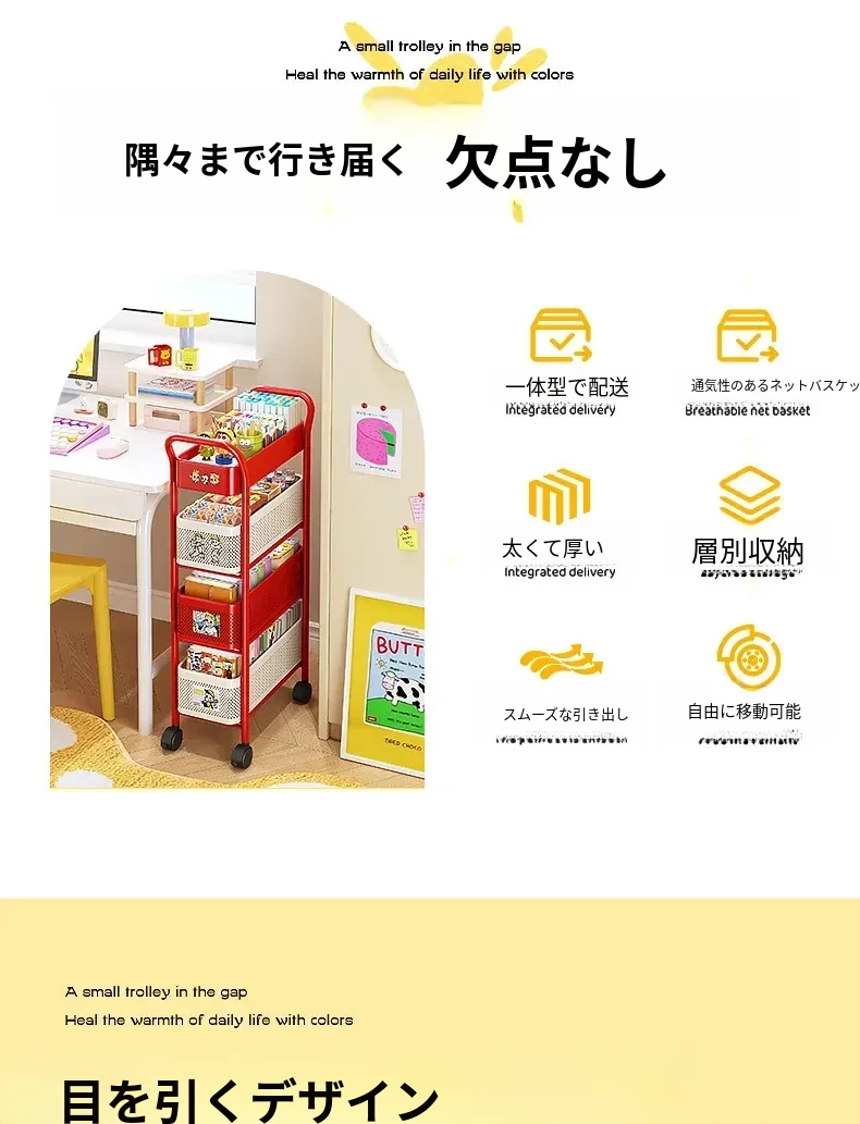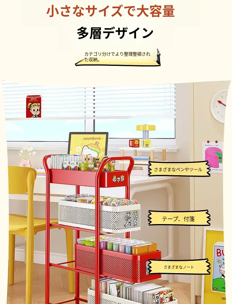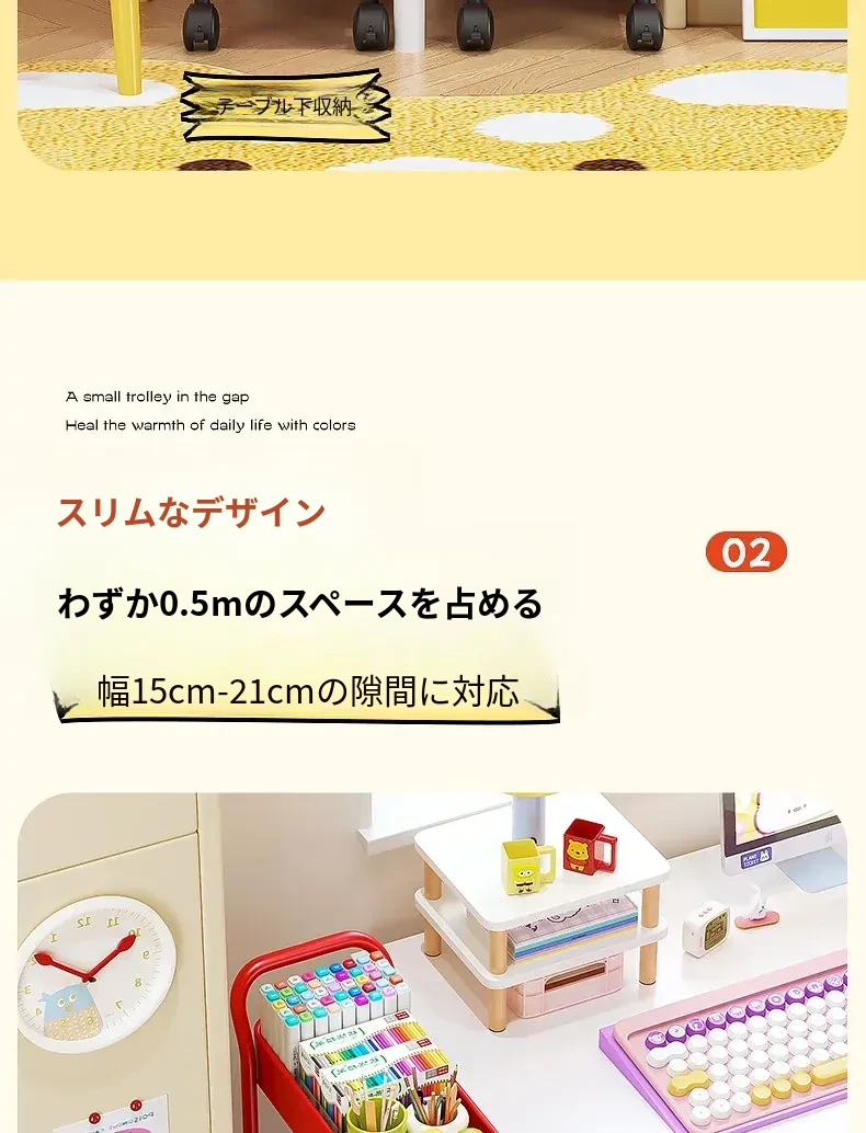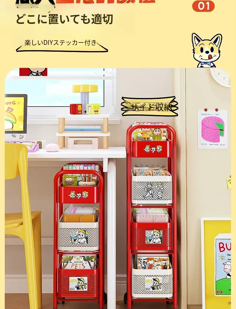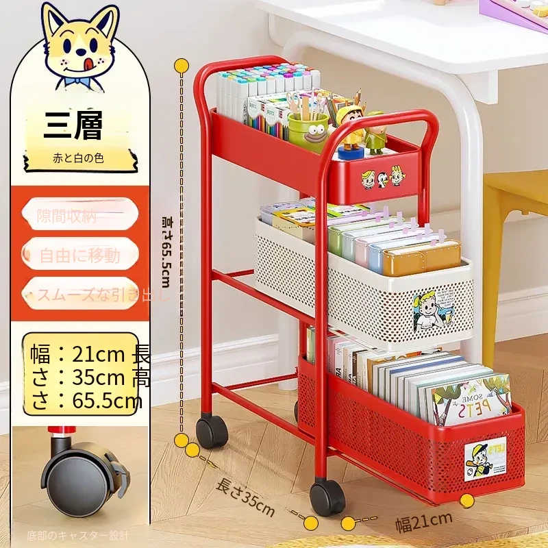 フリンストバミン文具収納ミニカート - 移動式ブックシェルフ、デスクサイド・ベッドサイドにぴったりなスリムデザインの隙間収納ラック!おしゃれで機能的、スペースを有効活用し、あなたの生活を便利にします。