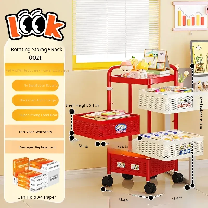 Can Hold A4 Paper⭐[Large Square Model] Four Layers of Red and White⭐11 Stickers Included + Shipped in One Package