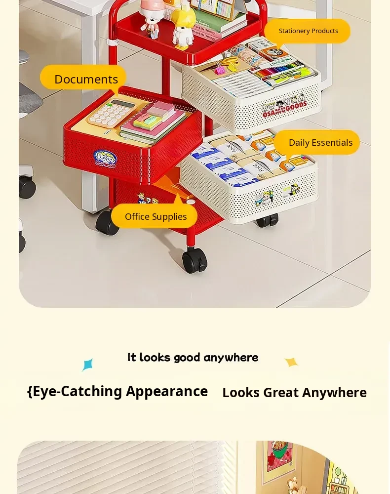 Flins Multi-Layer A4 File Cart - Stylish Floor Storage Solution for Office Supplies and Stationery Organization! Perfect for Workstations and Home Offices.