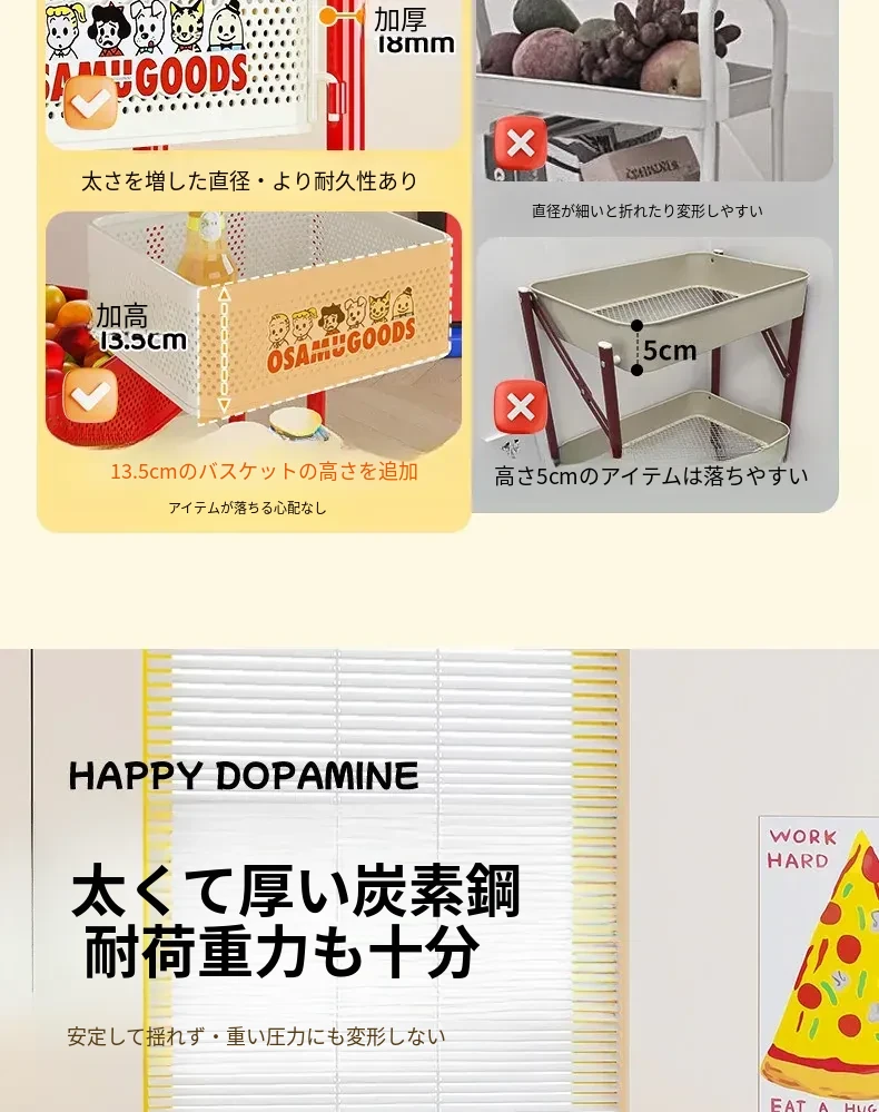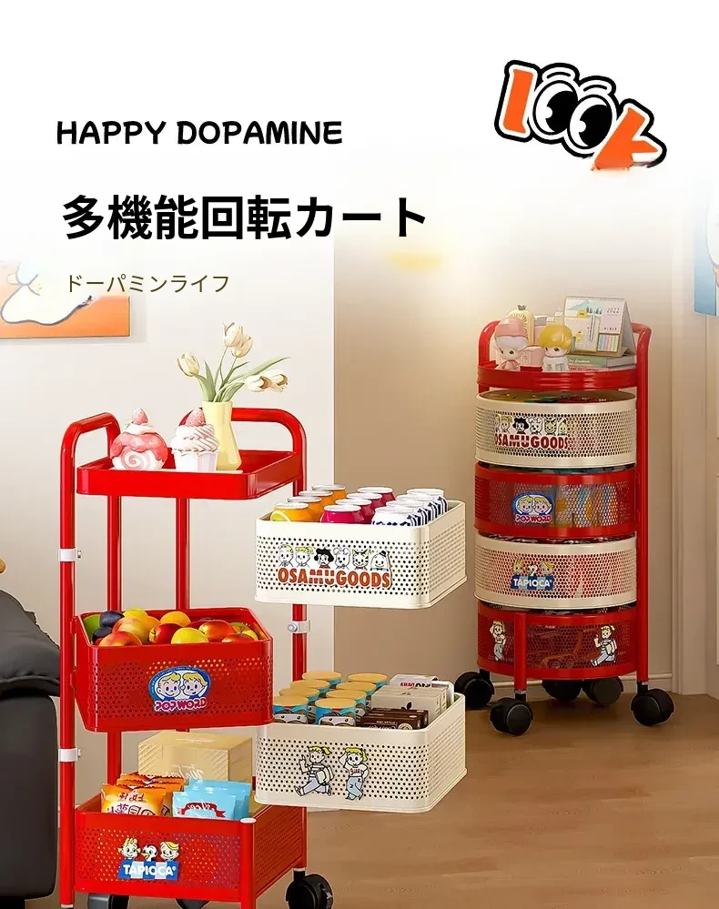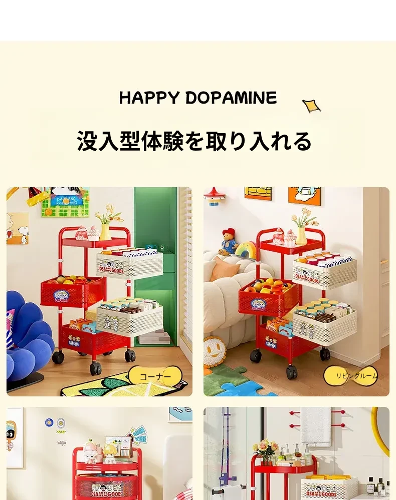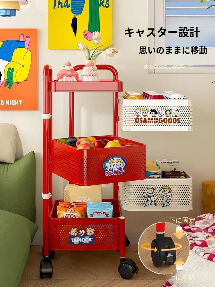 フリンズ多層移動式収納ラック - 家庭用、キッチンやバスルームに最適なティーテーブルとしても使える便利な収納ソリューション!整理整頓が簡単で、お部屋をスッキリさせるアイテムです。