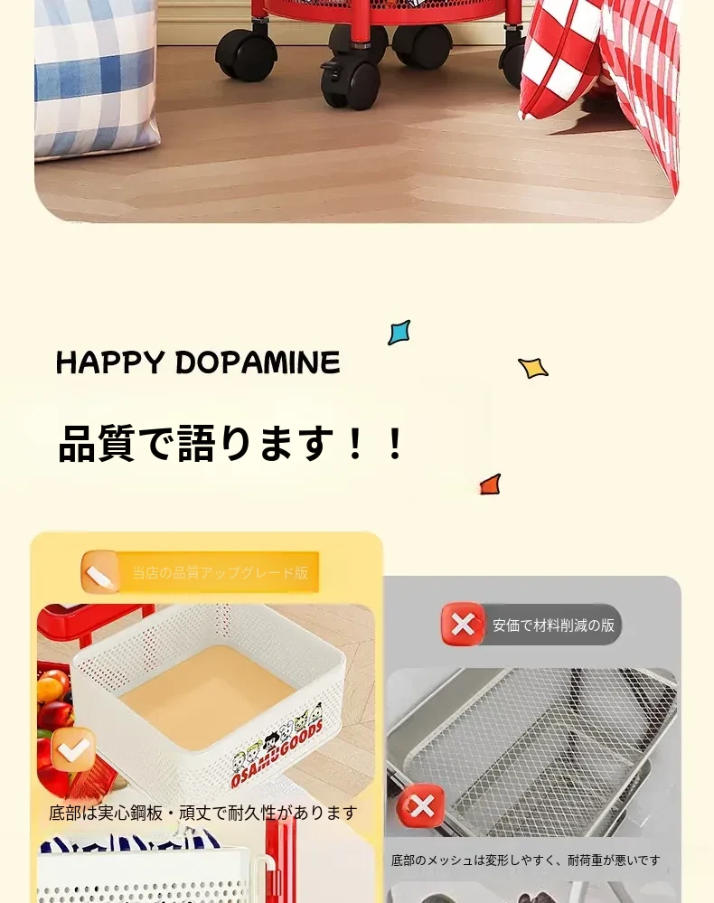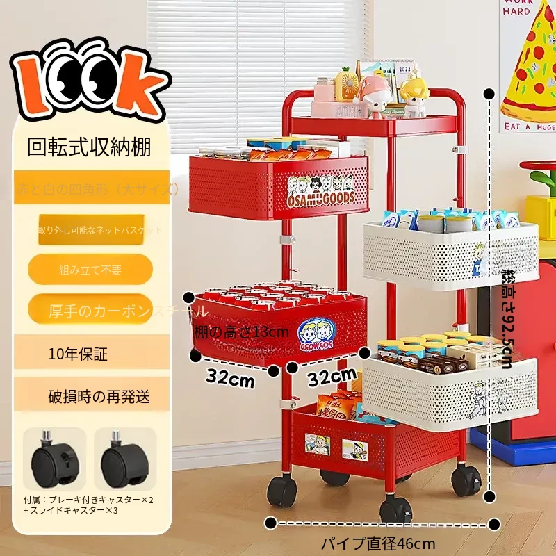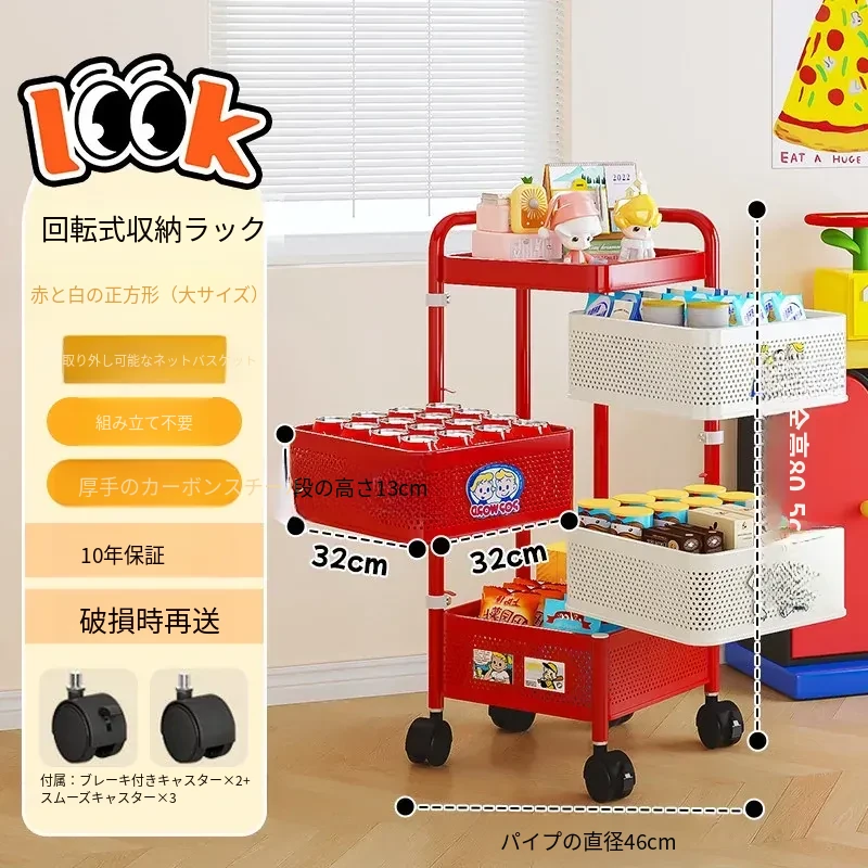 おすすめ⭐【厚手正方形タイプ】四層赤白❥11枚ステッカー+キャスター付き * 完全組み立て発送