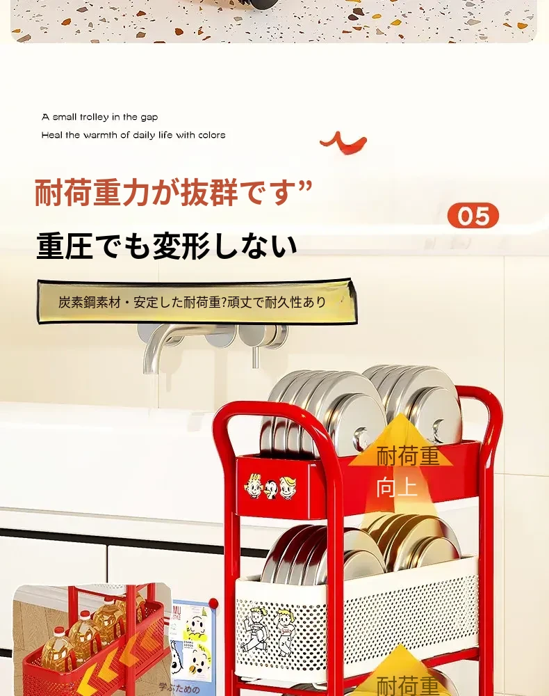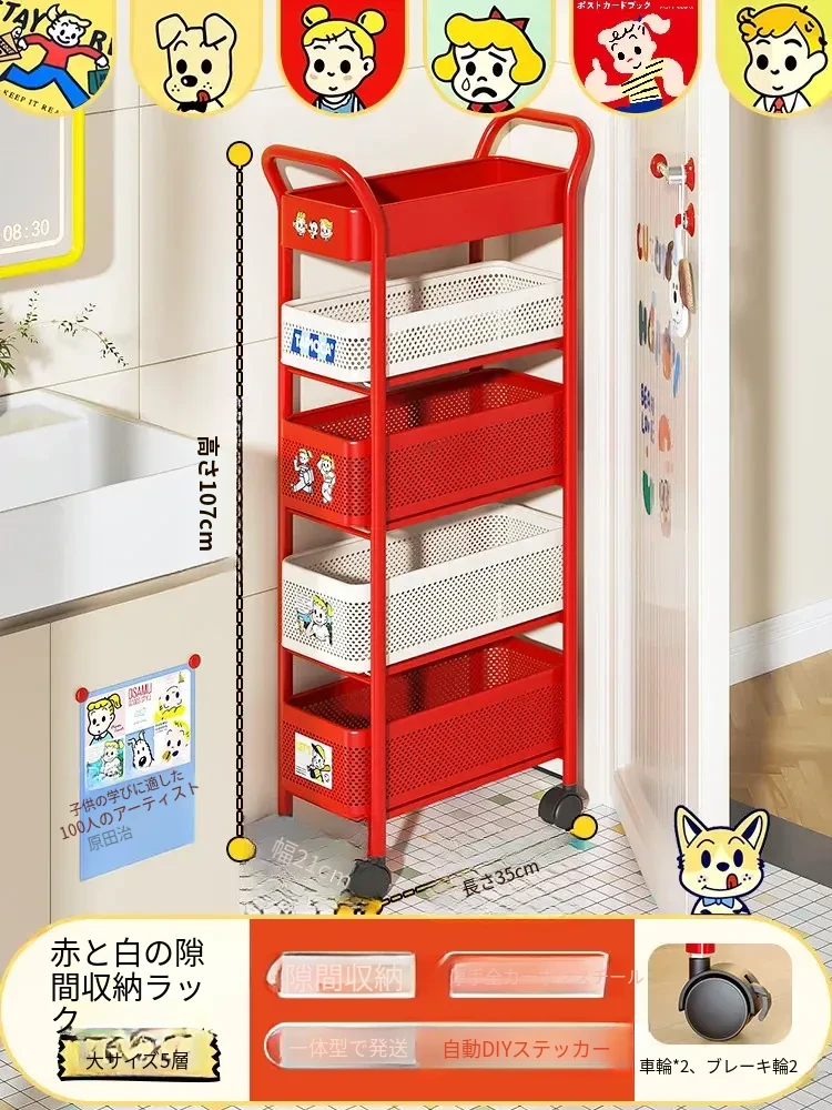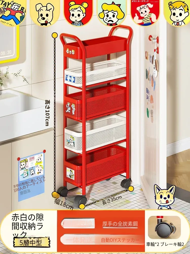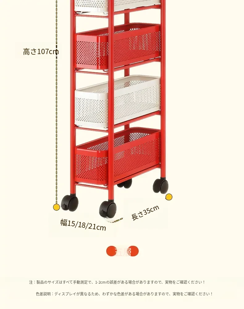 【18cm幅】5段中型引き出し収納ラック 取り付け不要⭐ステッカー付き