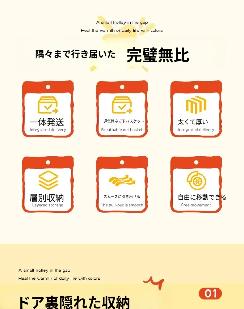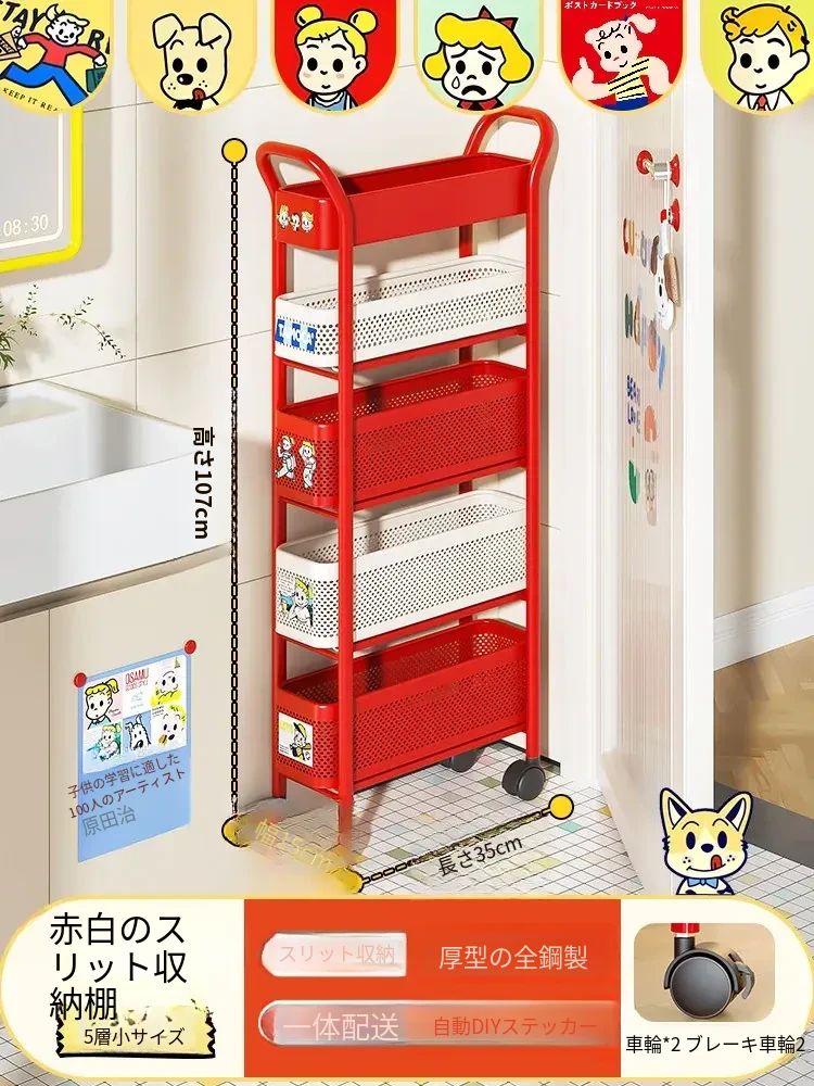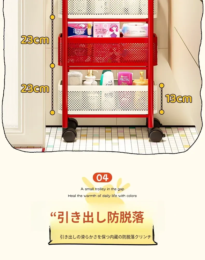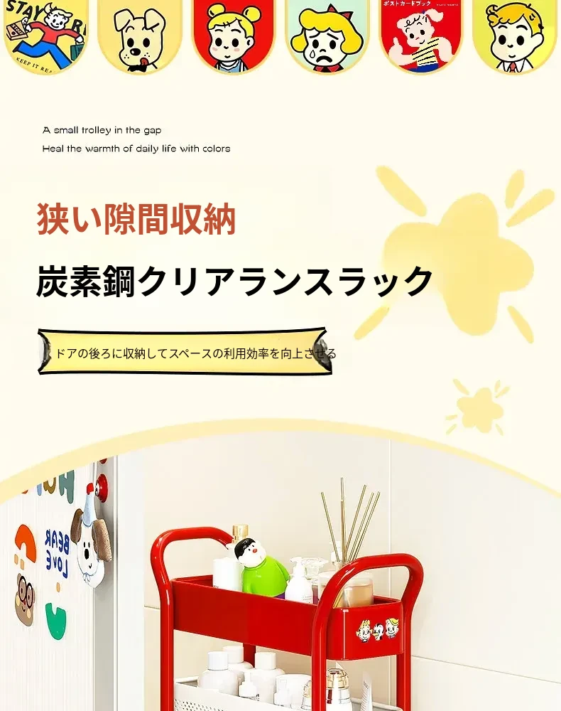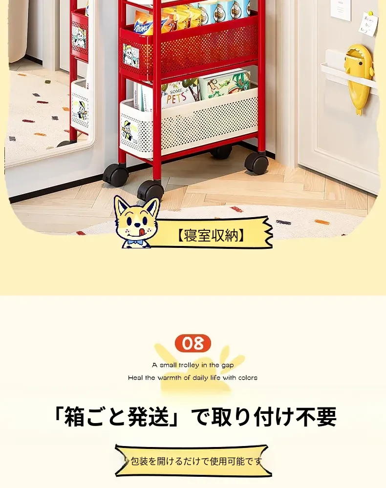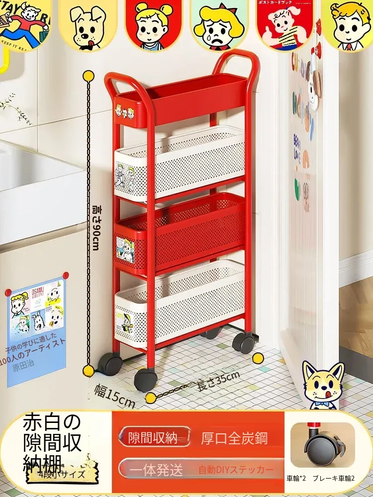 【18cm幅】4段中型引き出し収納ラック 取り付け不要⭐ステッカー付き