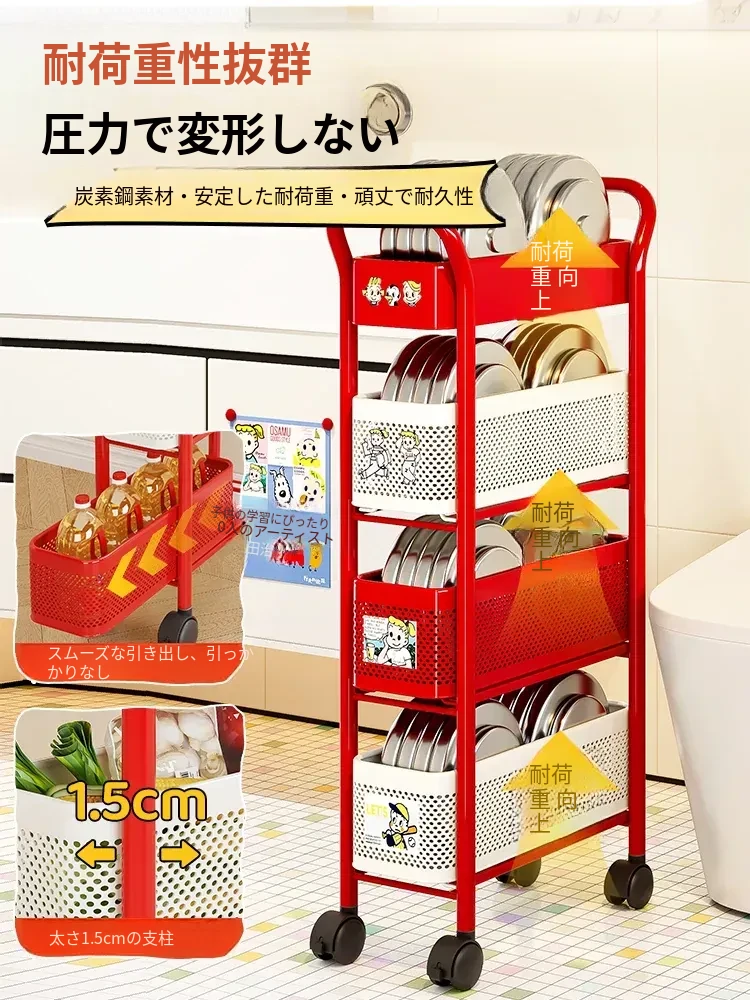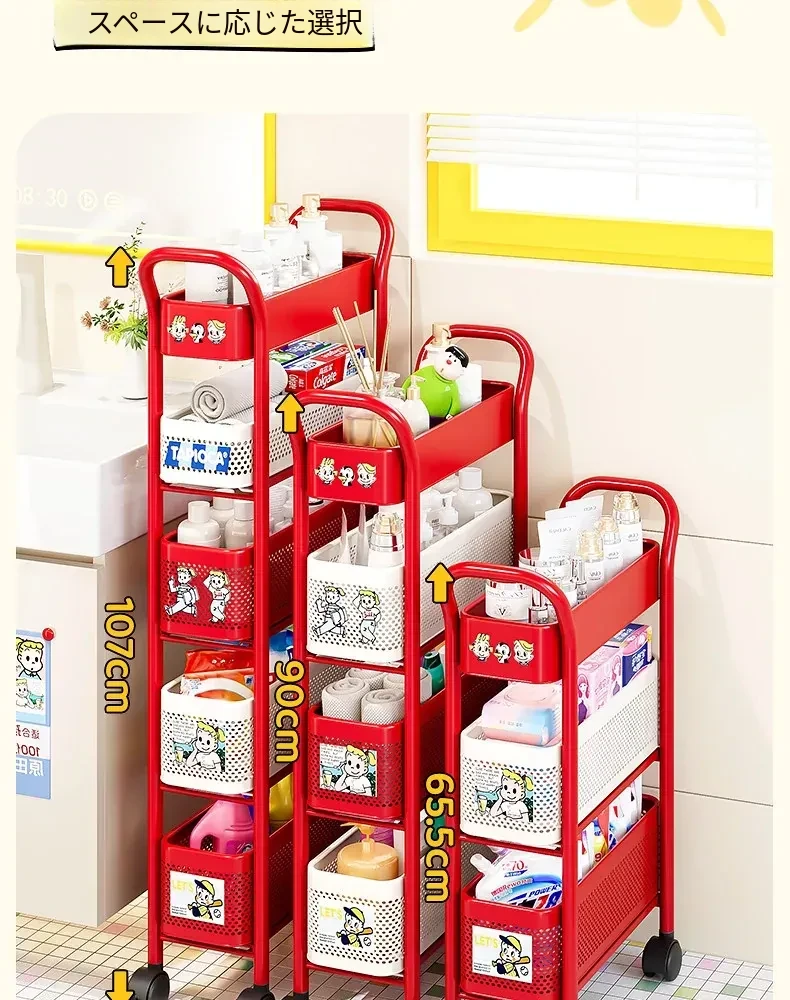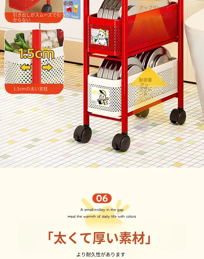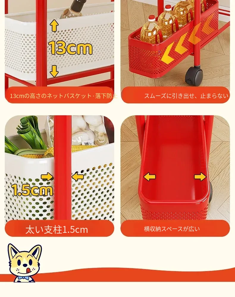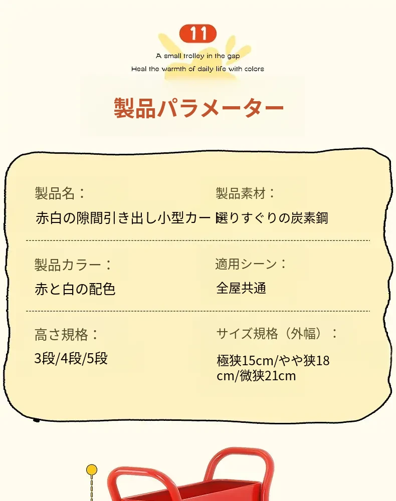【18cm幅】4段中型引き出し収納ラック 取り付け不要⭐ステッカー付き