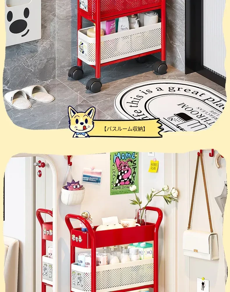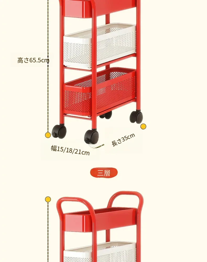 【18cm幅】3段中型引き出し収納ラック 取り付け不要⭐ステッカー付き
