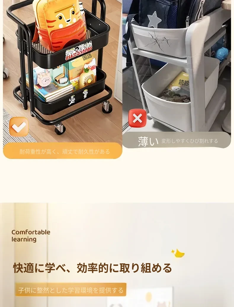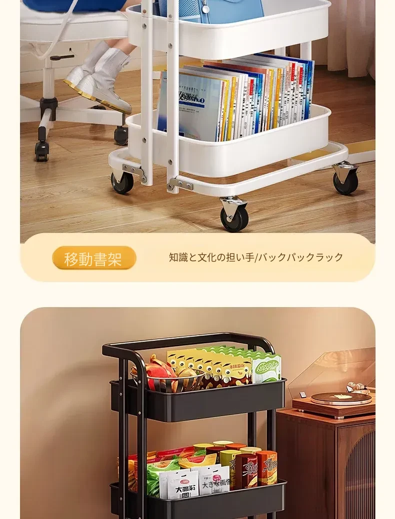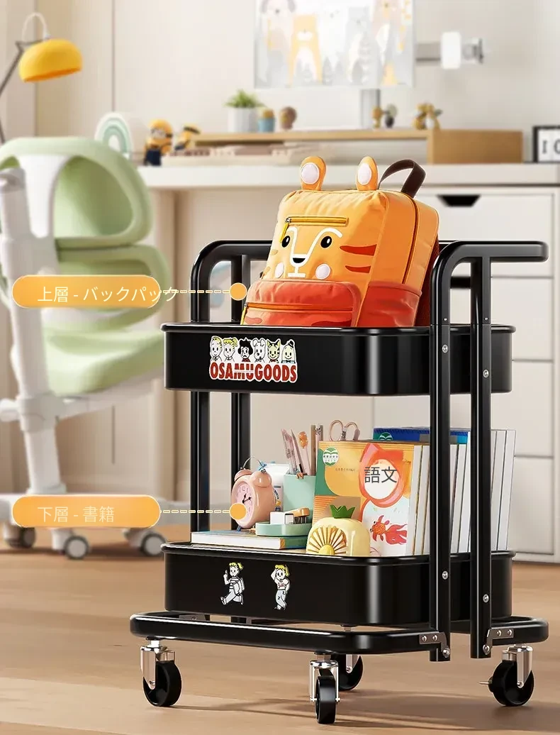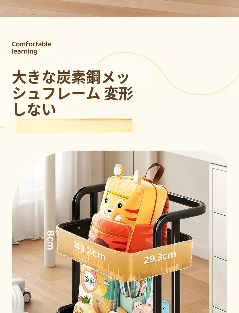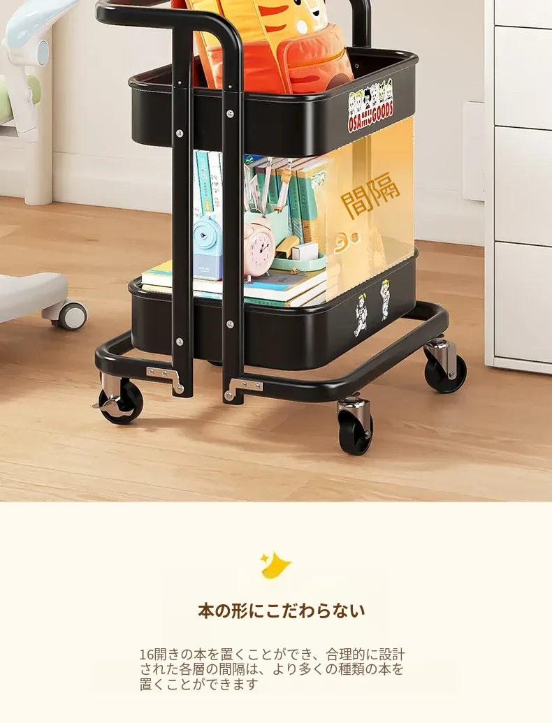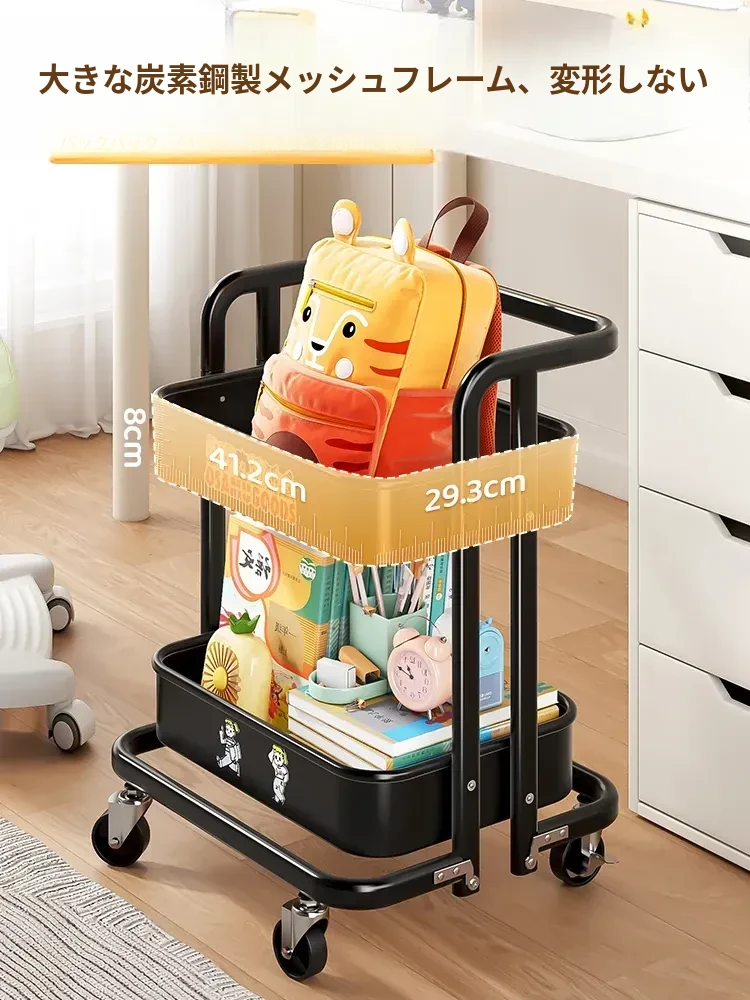 フリンスの書籍収納ラック - 移動可能な小型カート!小学生・中学生必見の教科書整理アイテム、デスク下にぴったりの収納バスケットで、学びをもっと快適に!
