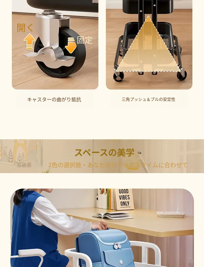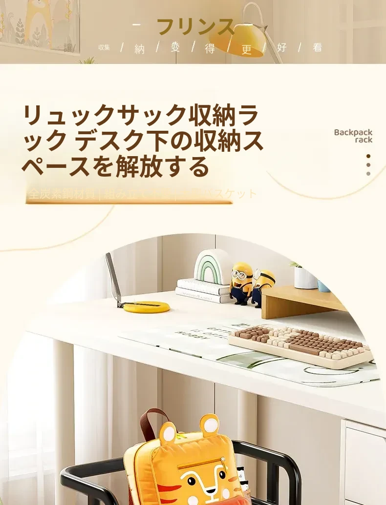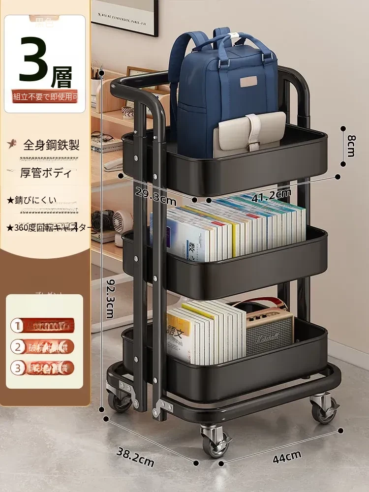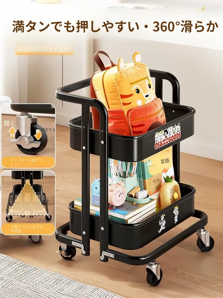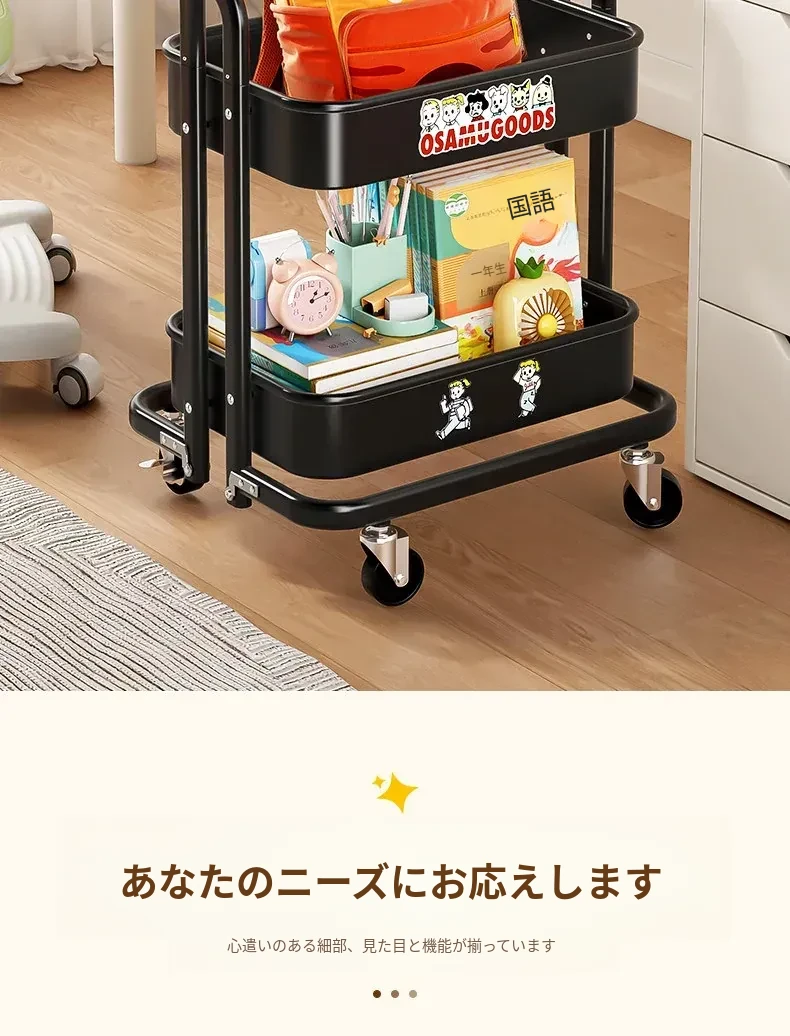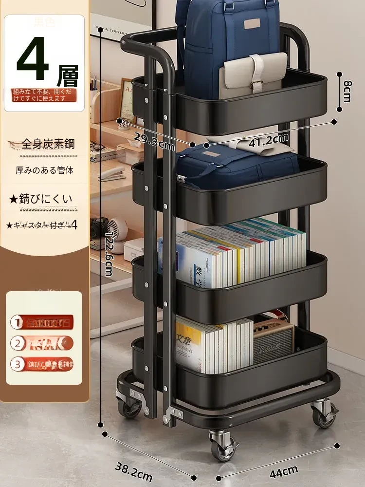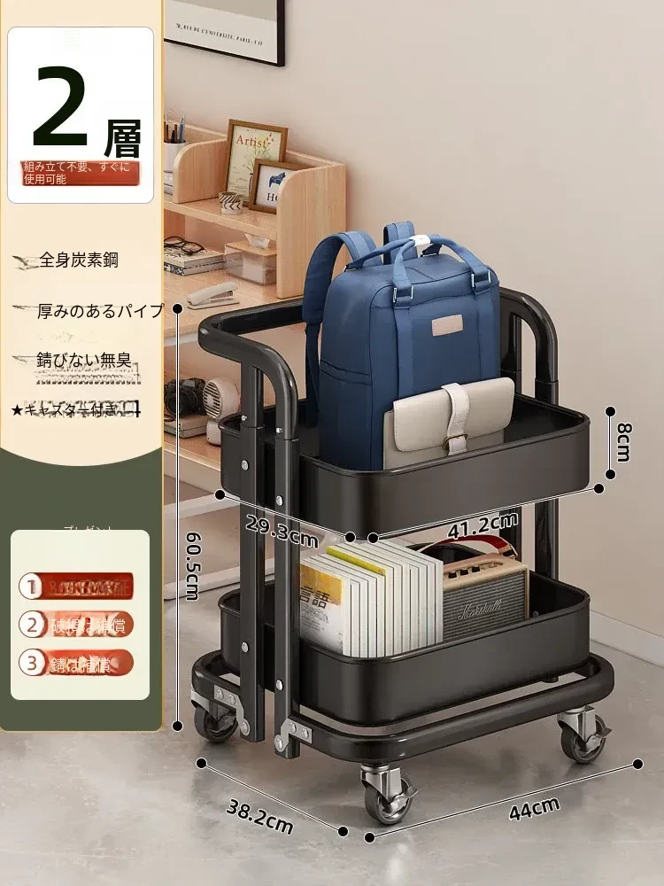 フリンスの書籍収納ラック - 移動可能な小型カート!小学生・中学生必見の教科書整理アイテム、デスク下にぴったりの収納バスケットで、学びをもっと快適に!