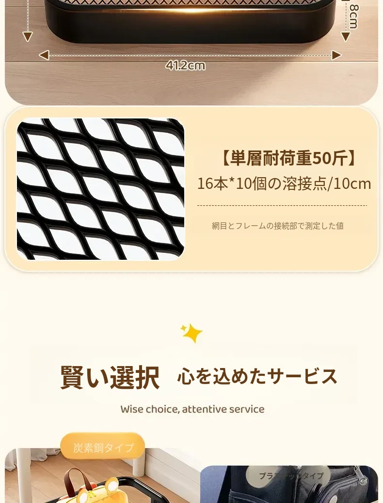 【全鋼フレーム折りたたみタイプ】オブシディアンブラック 二段 長さ43.5*幅38*高さ60