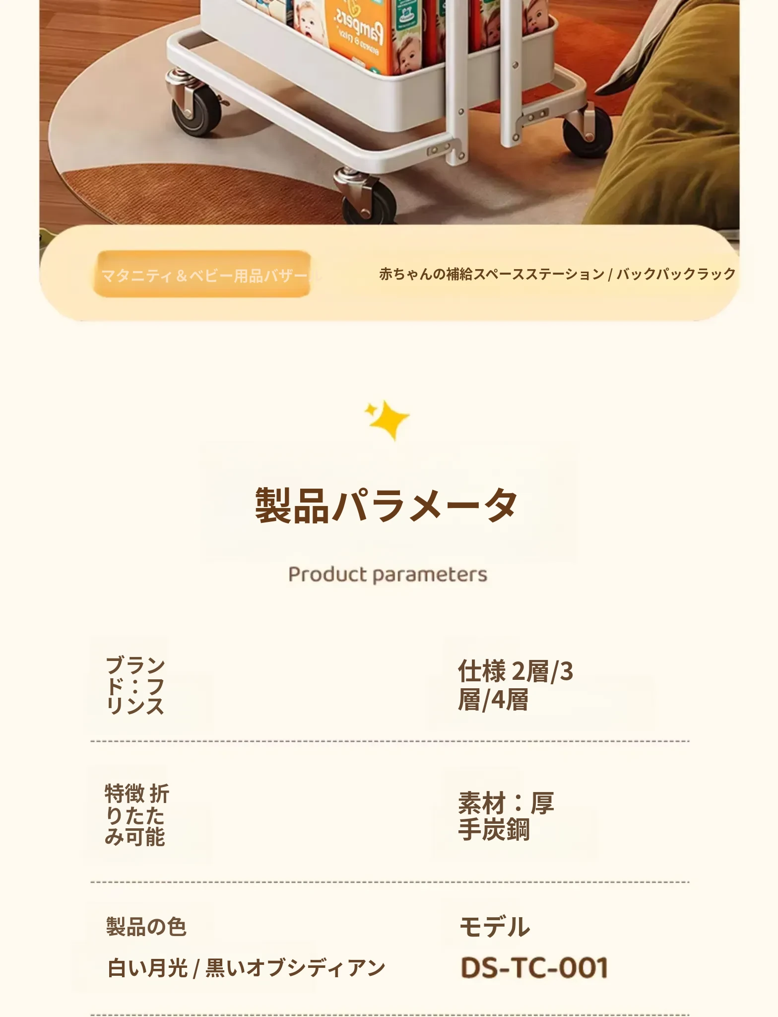 【全鋼フレーム折りたたみタイプ】月白 四段 長さ44*幅38*高さ122.5