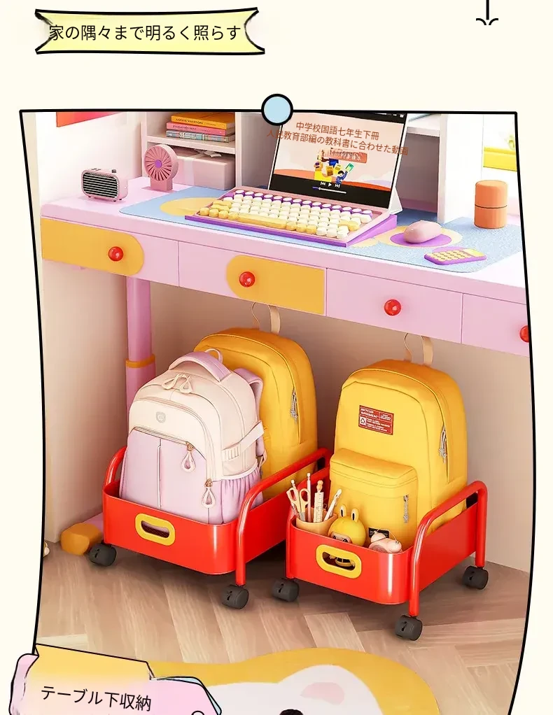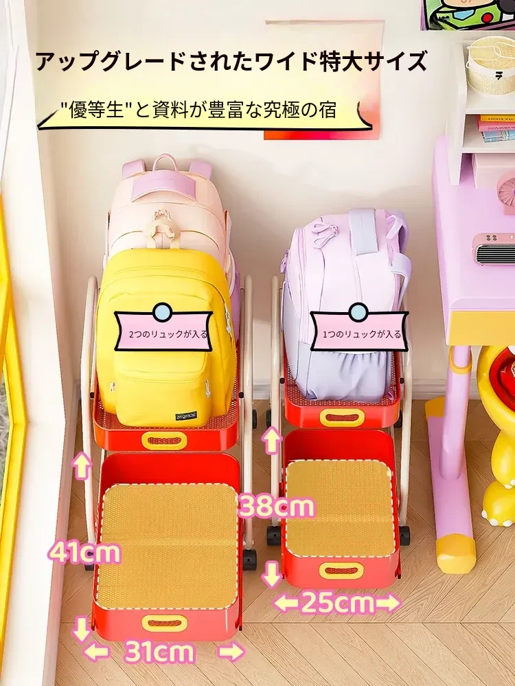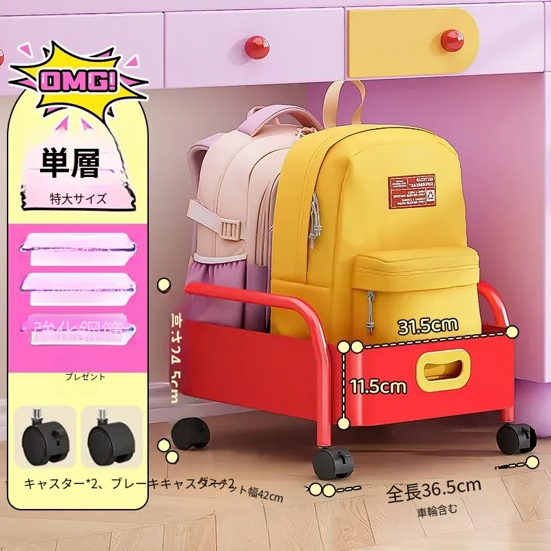 デスク下収納❤二つのリュックが置ける】赤色 一層特大号
