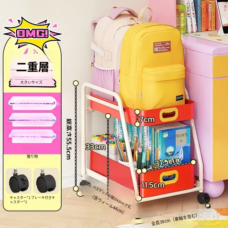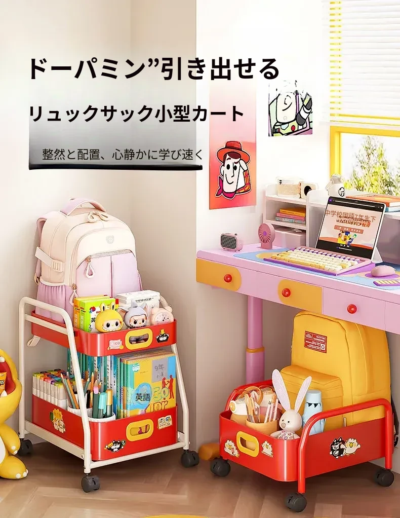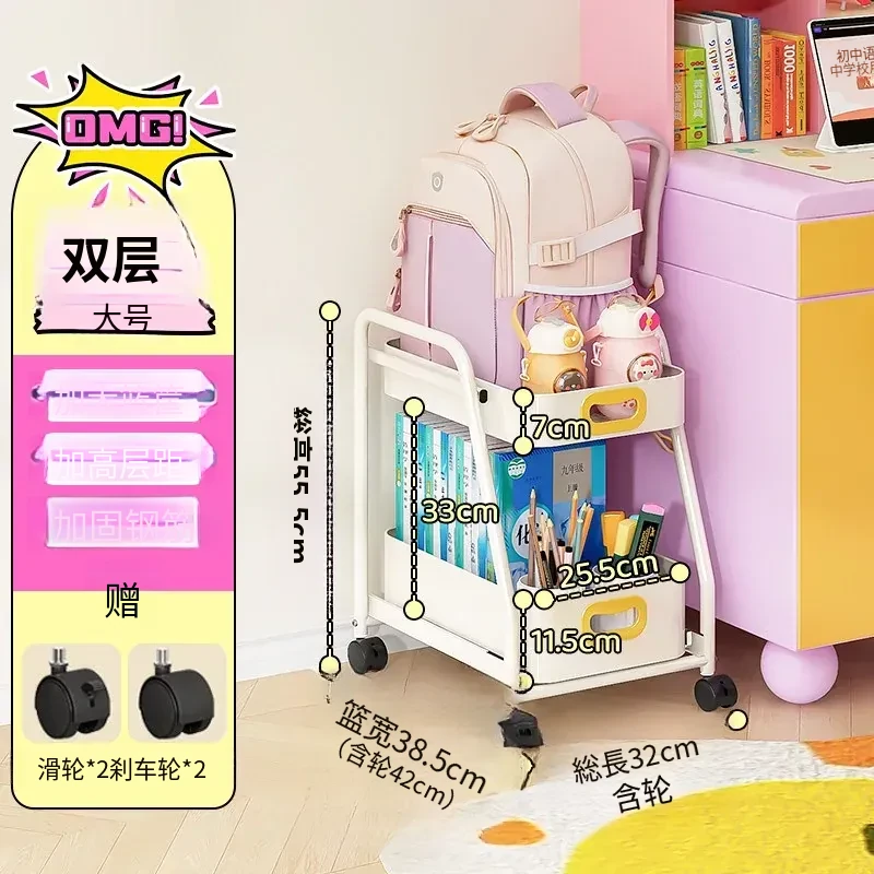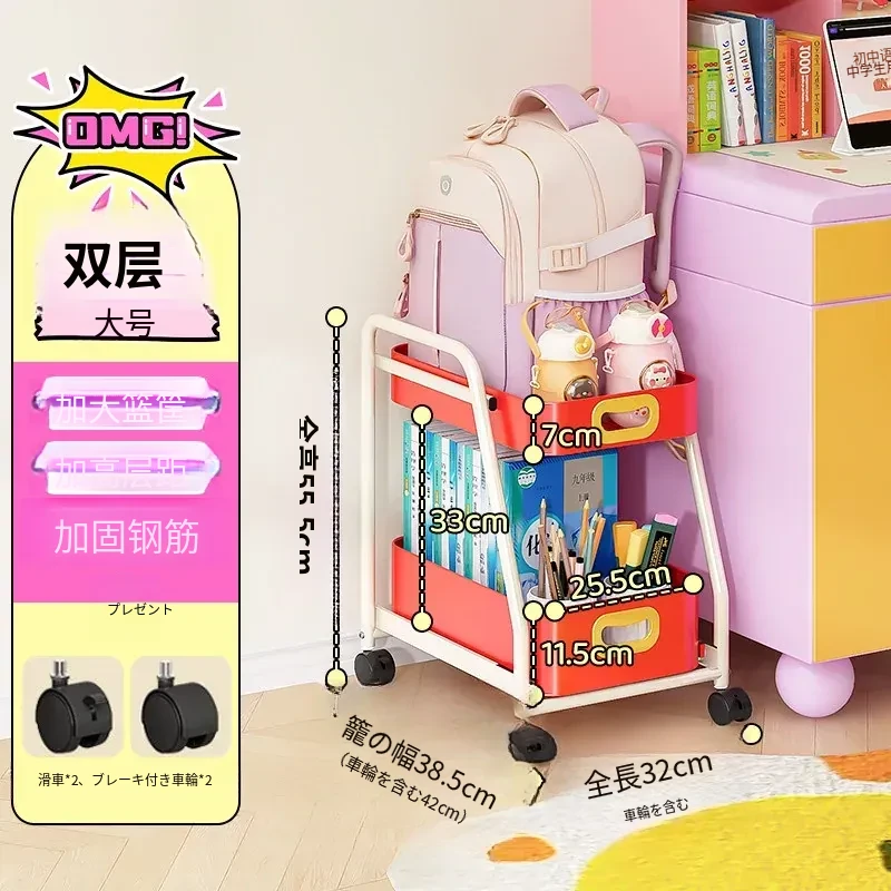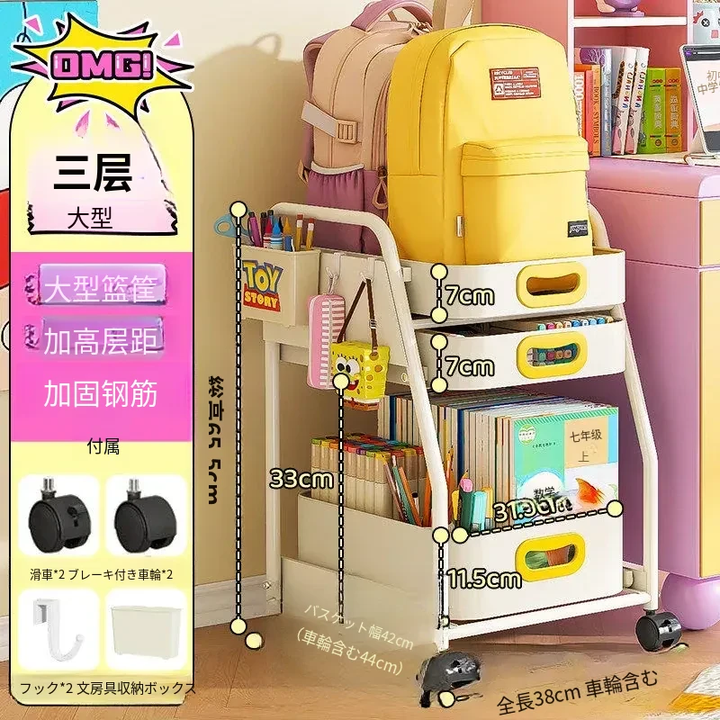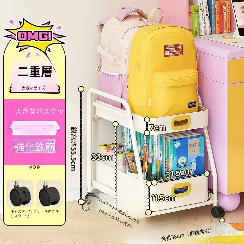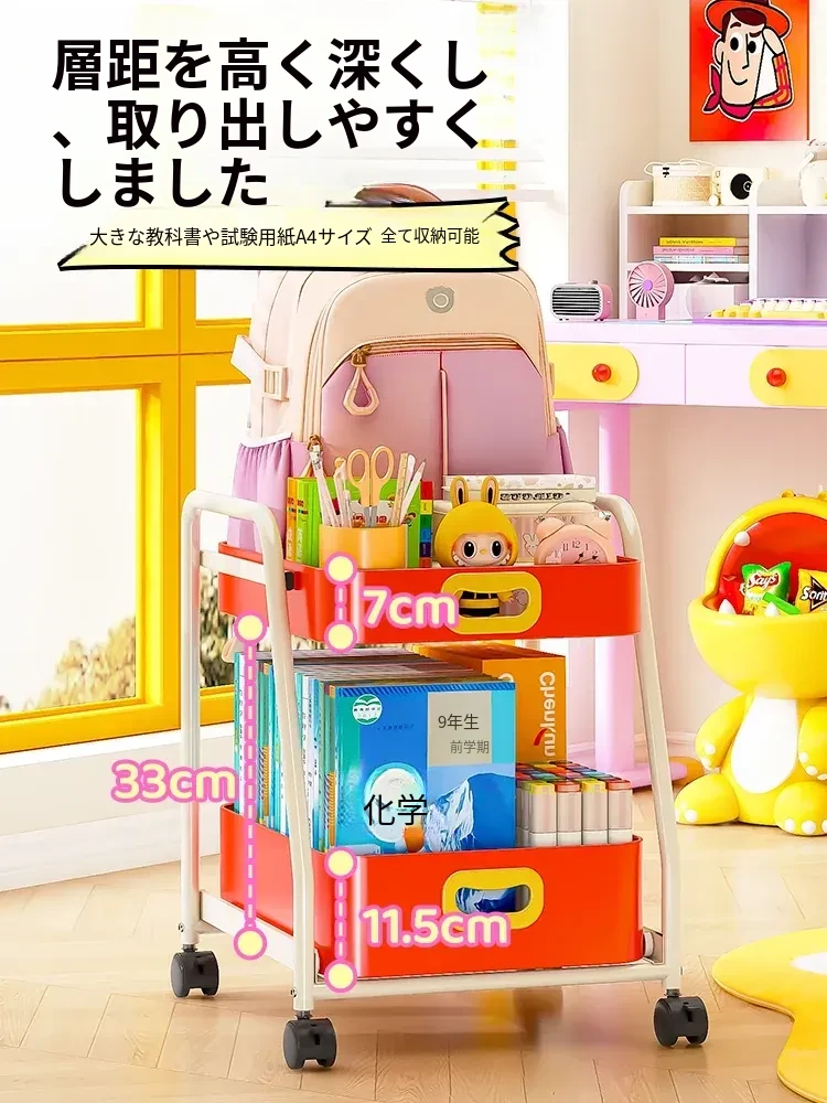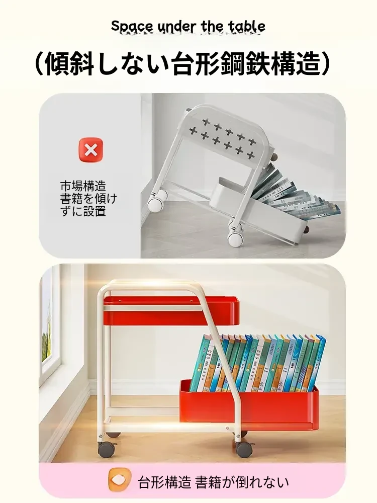 フリンス移動式書棚収納カート、キャスター付きデスク下ラック、学習に最適な便利アイテム!整理整頓をサポートし、スペースを有効活用!