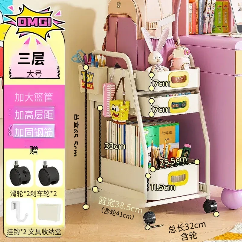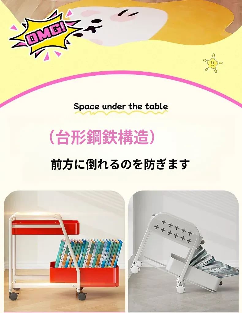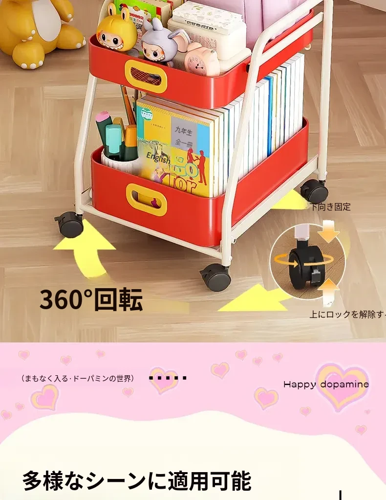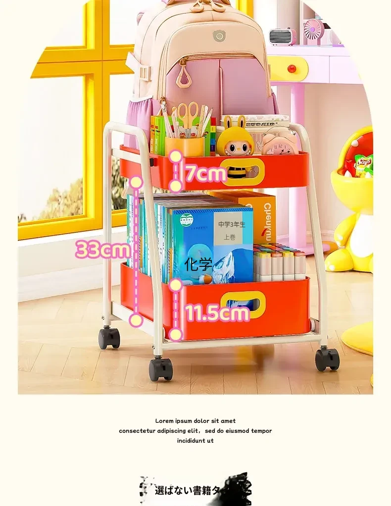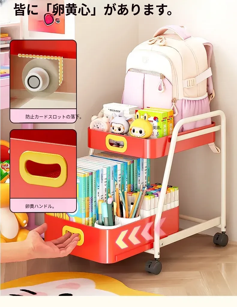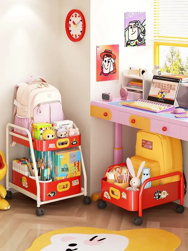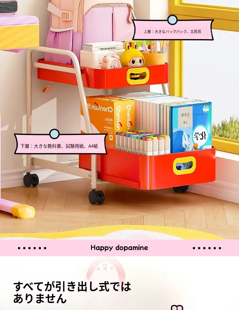 フリンス移動式書棚収納カート、キャスター付きデスク下ラック、学習に最適な便利アイテム!整理整頓をサポートし、スペースを有効活用!