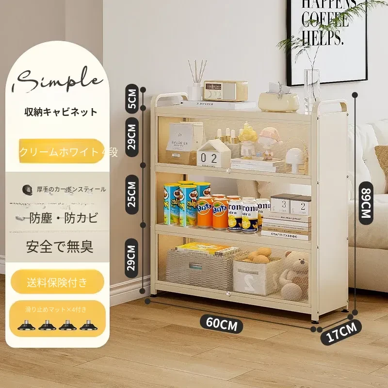 【厚手の炭素鋼】クリームホワイト 4段 長さ80*幅28*高さ89 防塵・防カビ