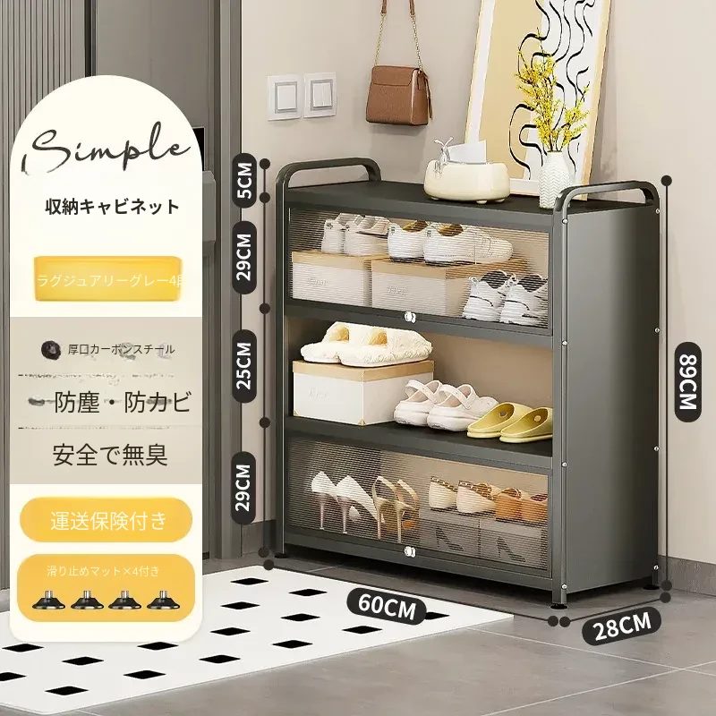【厚手の炭素鋼】ラグジュアリーグレー 4段 長さ60*幅28*高さ89 防塵・防カビ