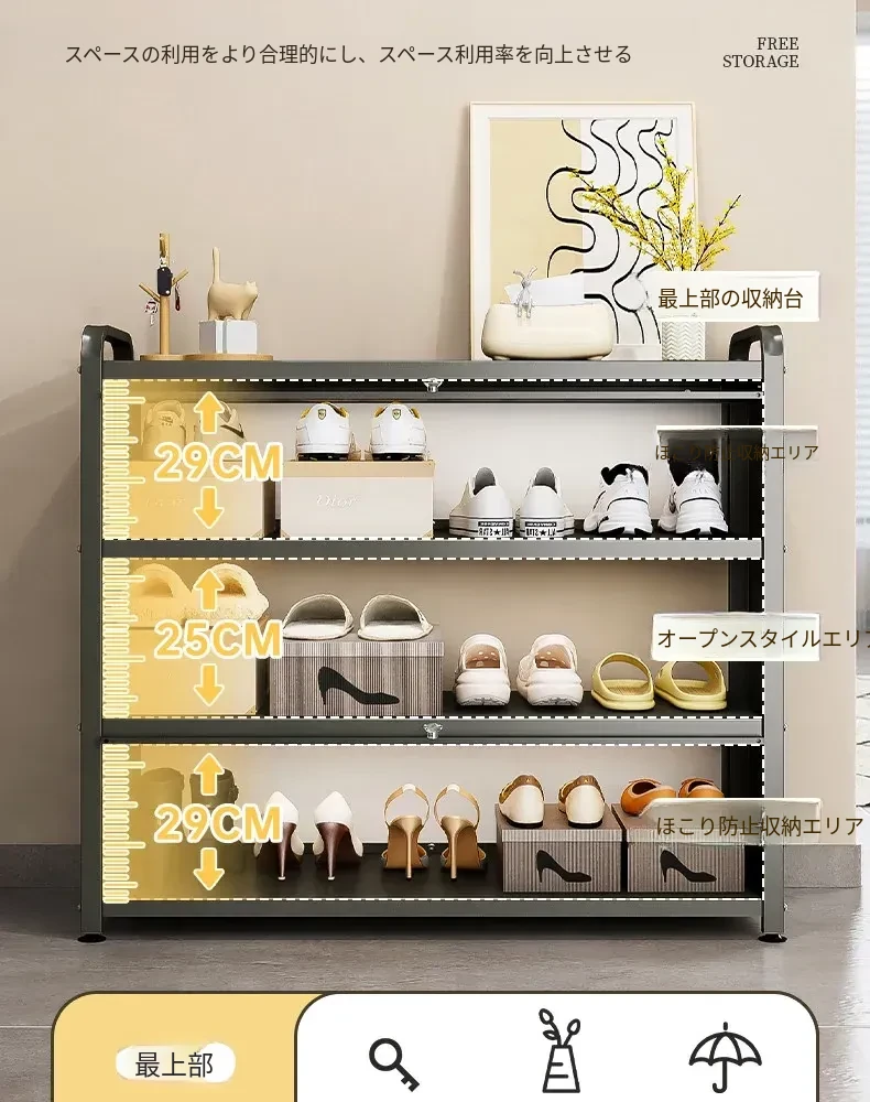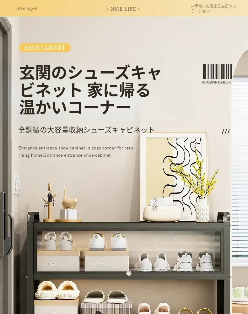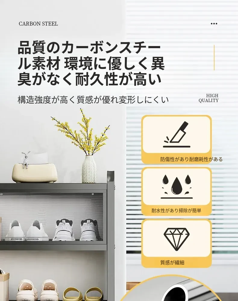 フリンス スチール製シューズキャビネット 家庭用 玄関収納キャビネット 地面に置ける多段収納ラック 屋内用シューズラックで整理整頓を簡単に!おしゃれで実用的、あなたの玄関をすっきりと演出します。
