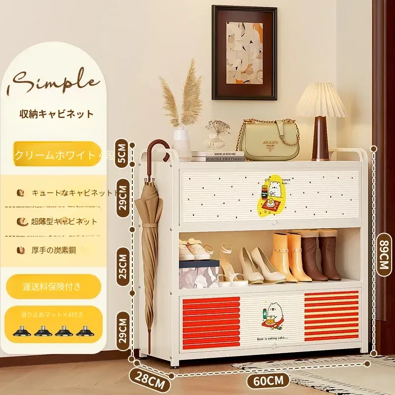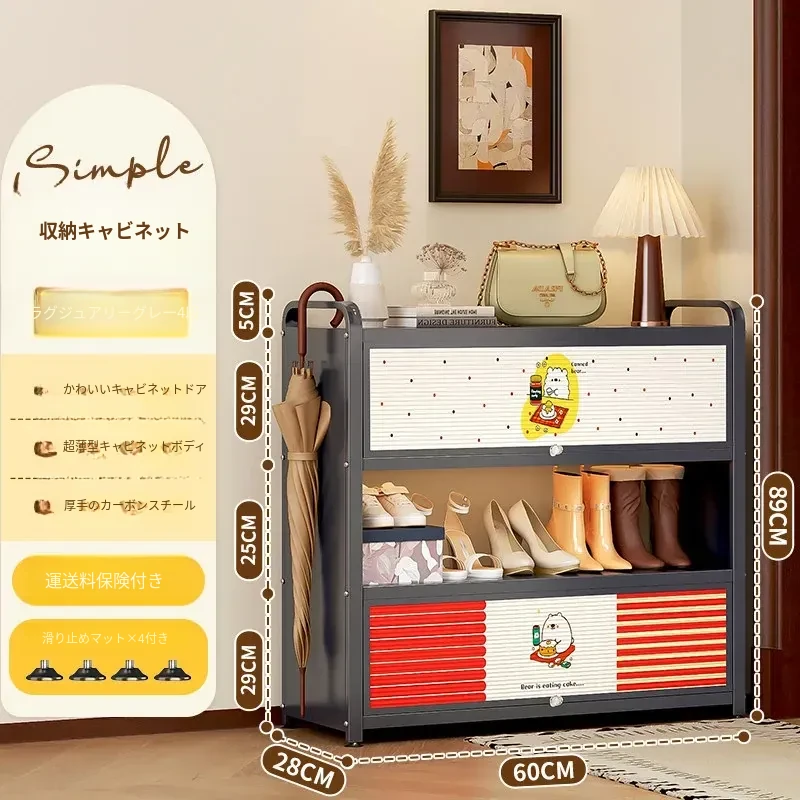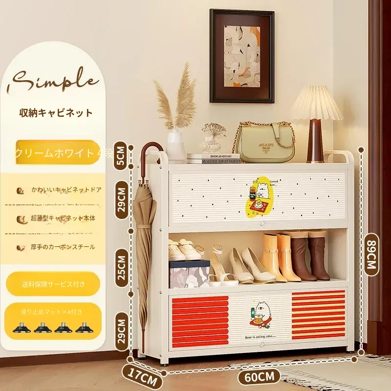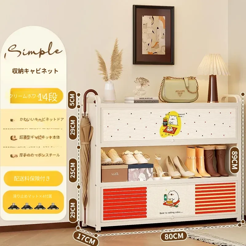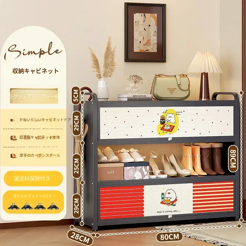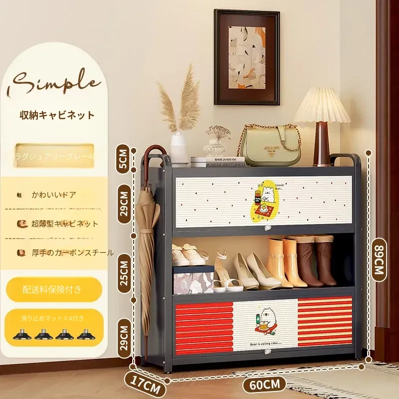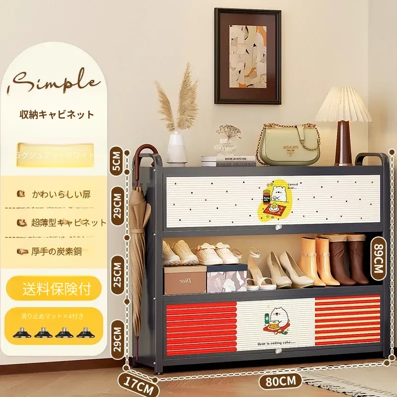 フリンス スチール製シューズキャビネット 家庭用玄関用 多段シューズラック 収納の魔法 入り口にぴったりの壁寄せ収納キャビネットで、すっきりとした玄関を実現!