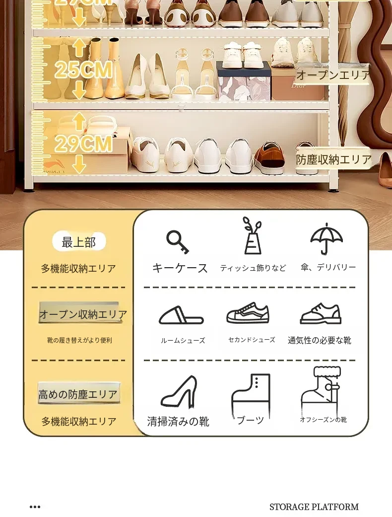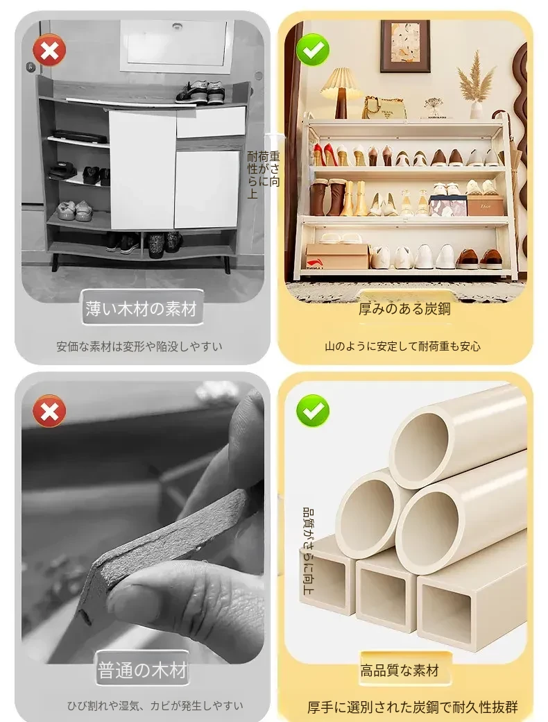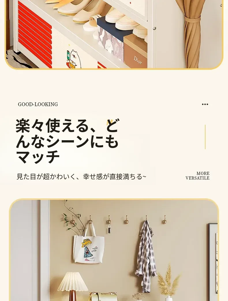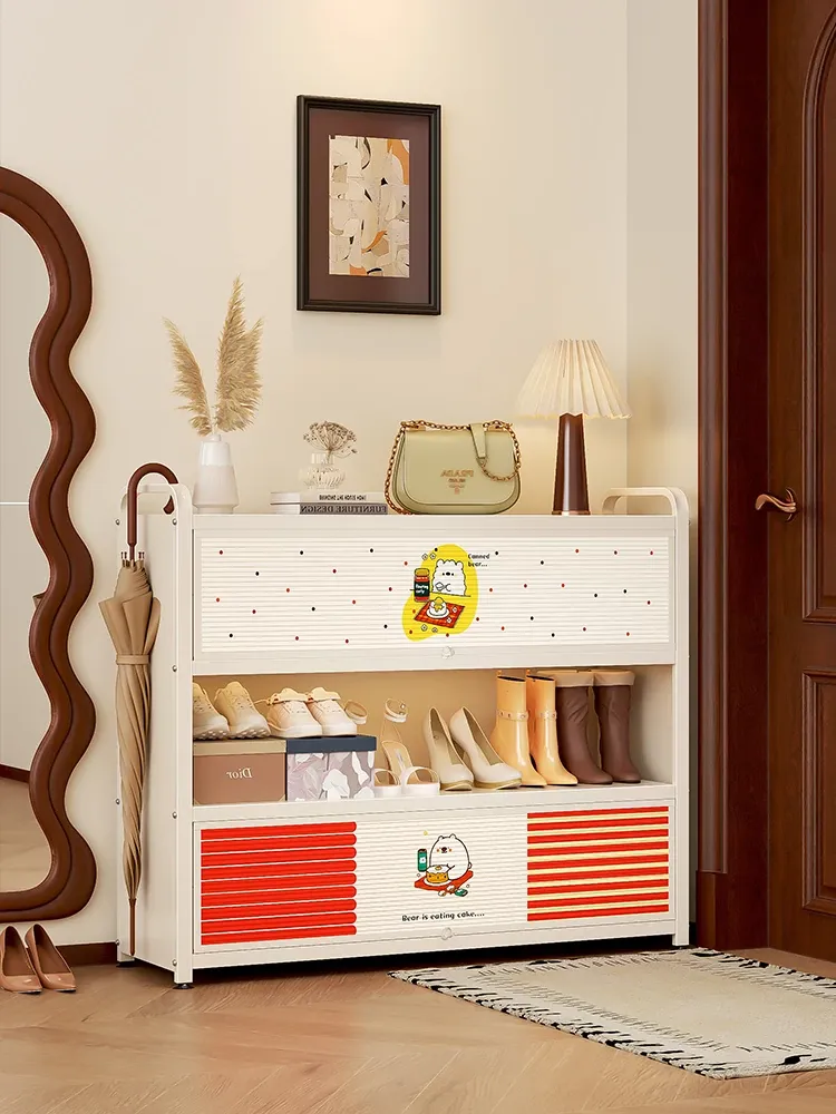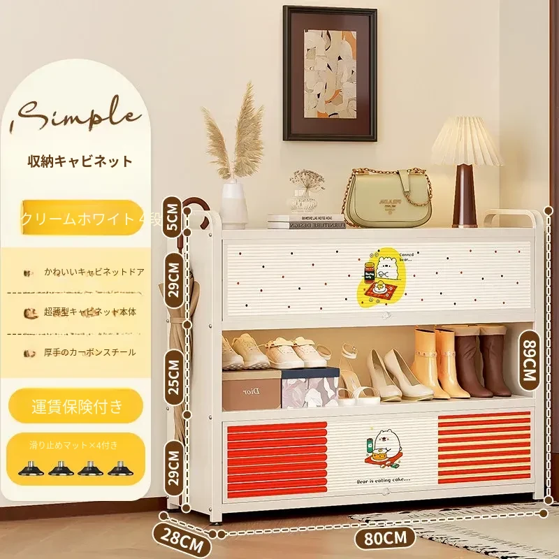 フリンス スチール製シューズキャビネット 家庭用玄関用 多段シューズラック 収納の魔法 入り口にぴったりの壁寄せ収納キャビネットで、すっきりとした玄関を実現!