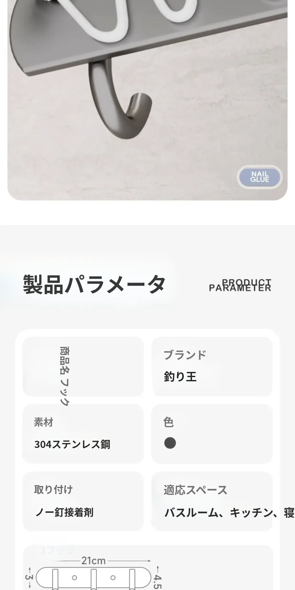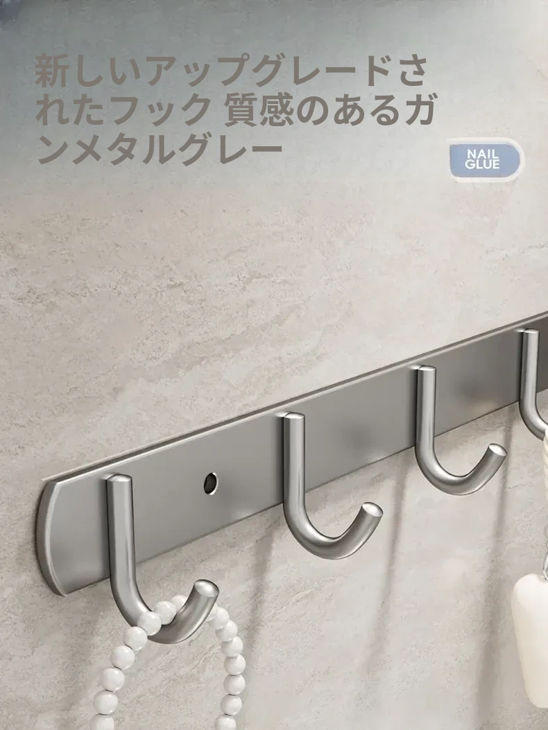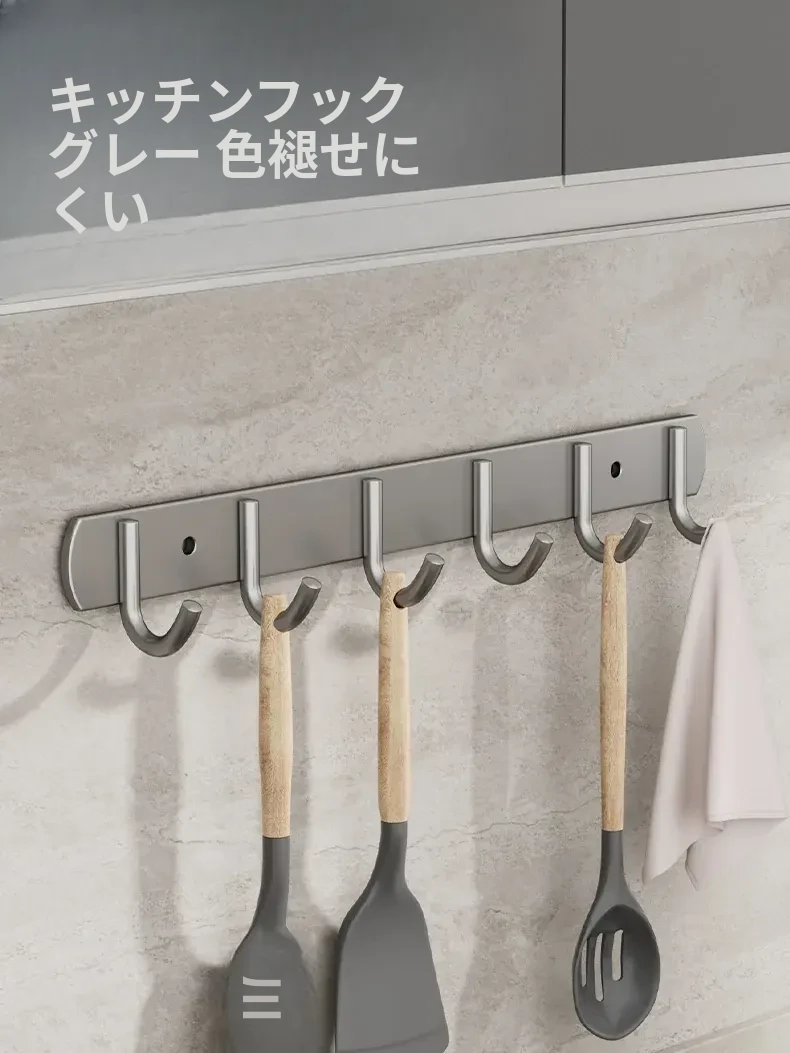 厚手304ステンレス製フック キッチン・バスルーム用 壁掛けフックラック 穴あけ不要の一列式コートフックで、収納力アップ!おしゃれで便利な空間を演出します。