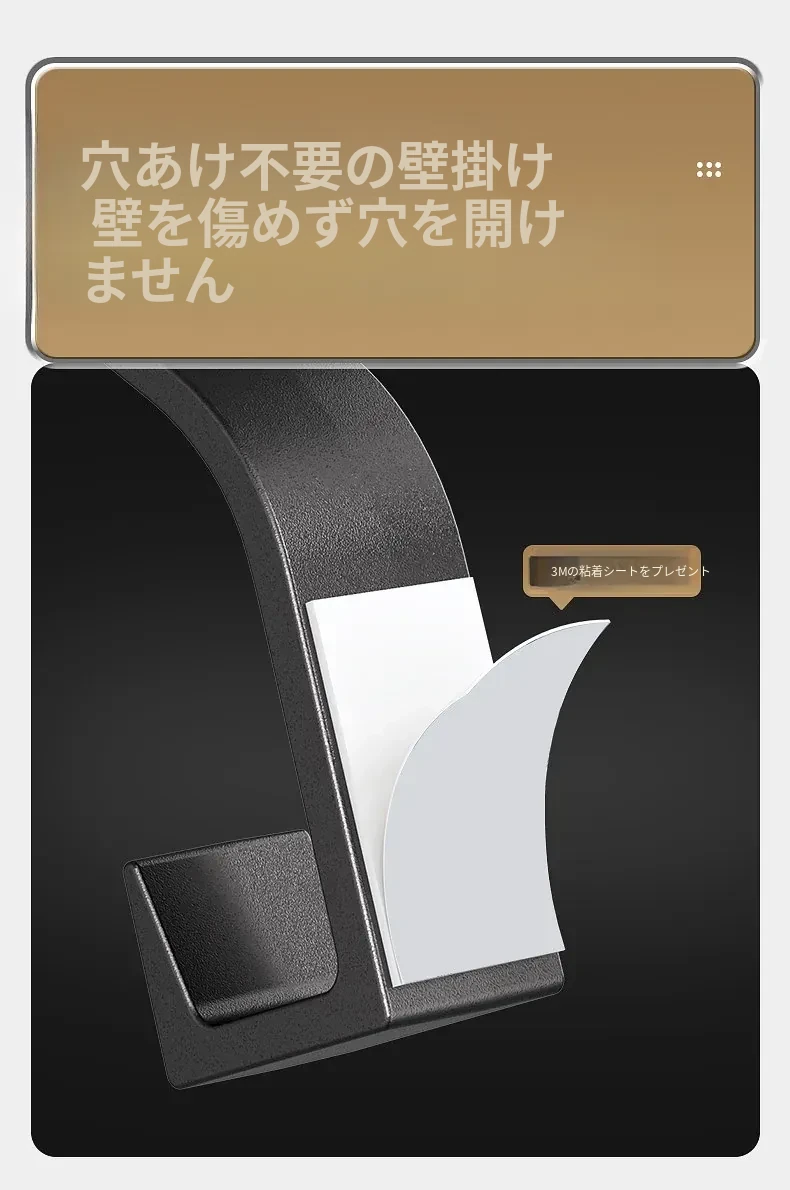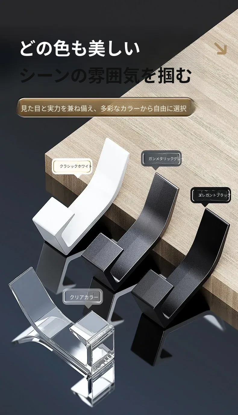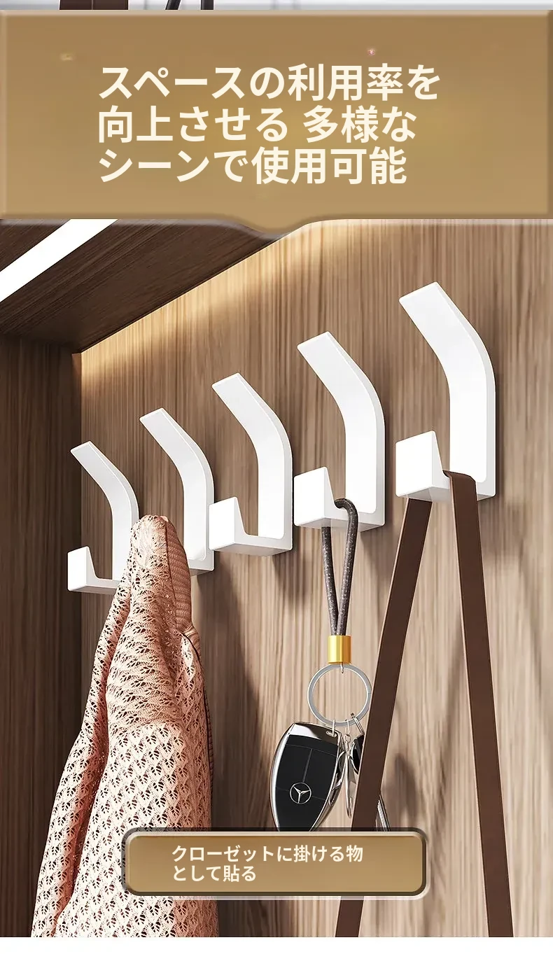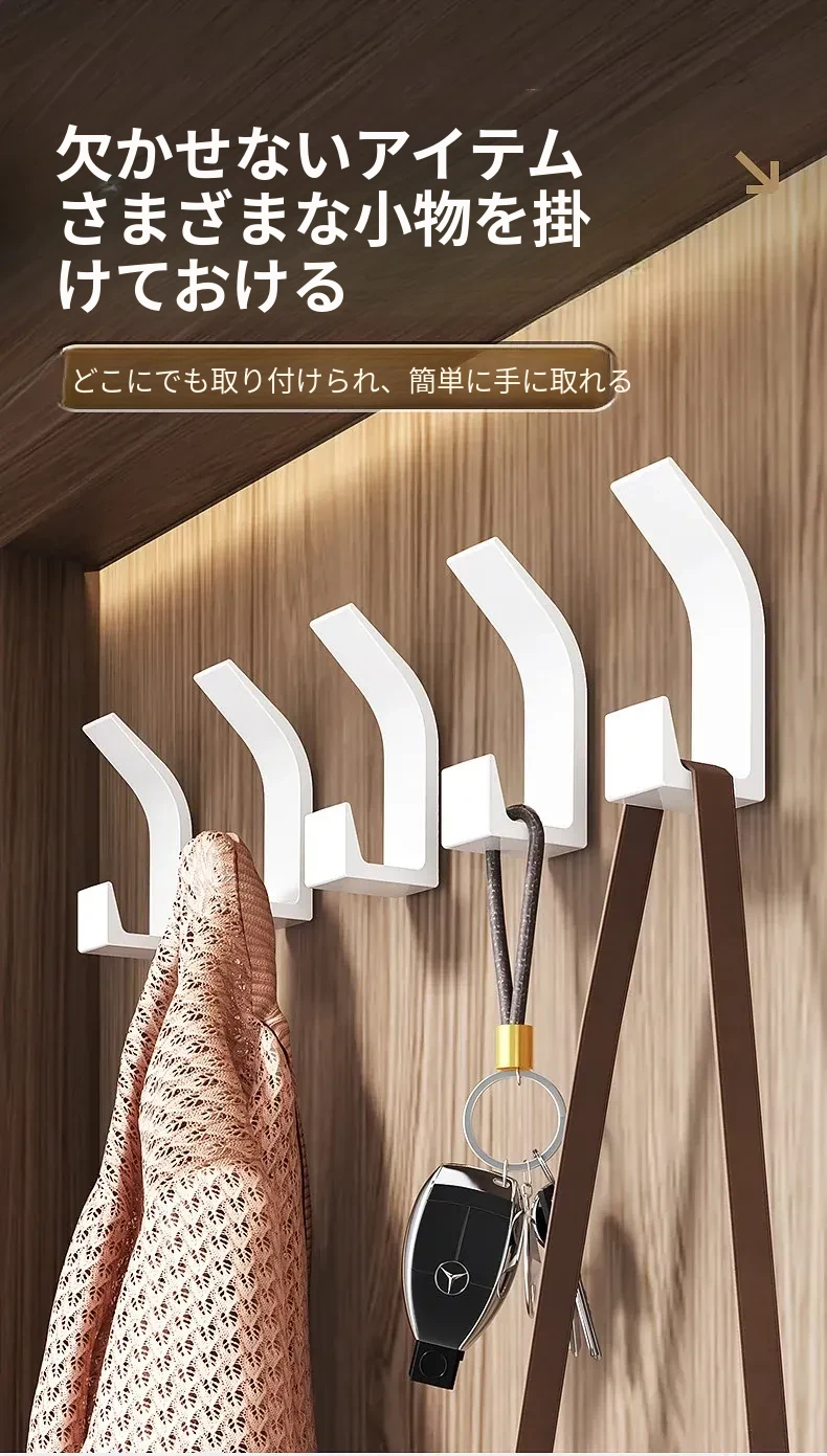 強力粘着フック - 穴あけ不要で壁に取り付け可能!鍵やバッグ、帽子の収納に最適な無痕フック。すっきりとしたお部屋作りをサポートします!