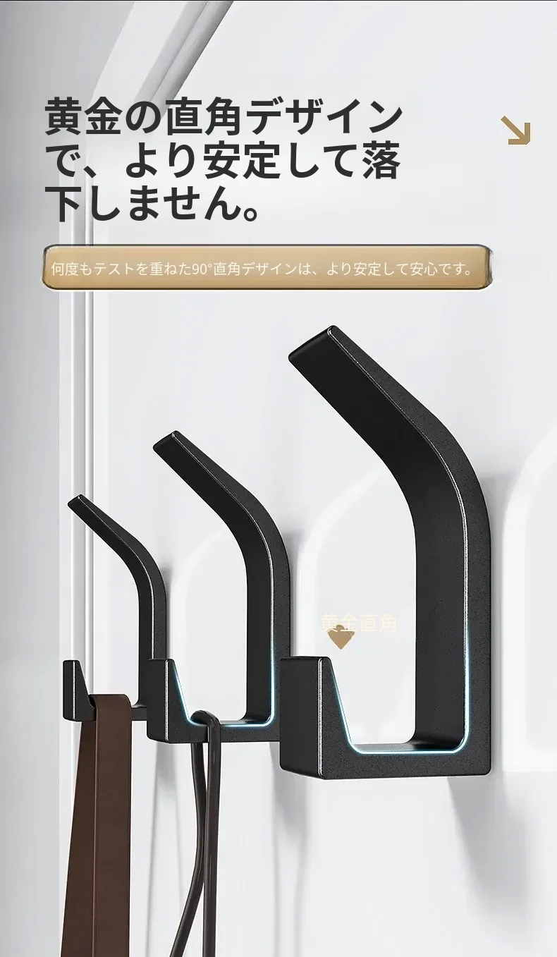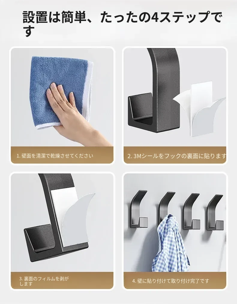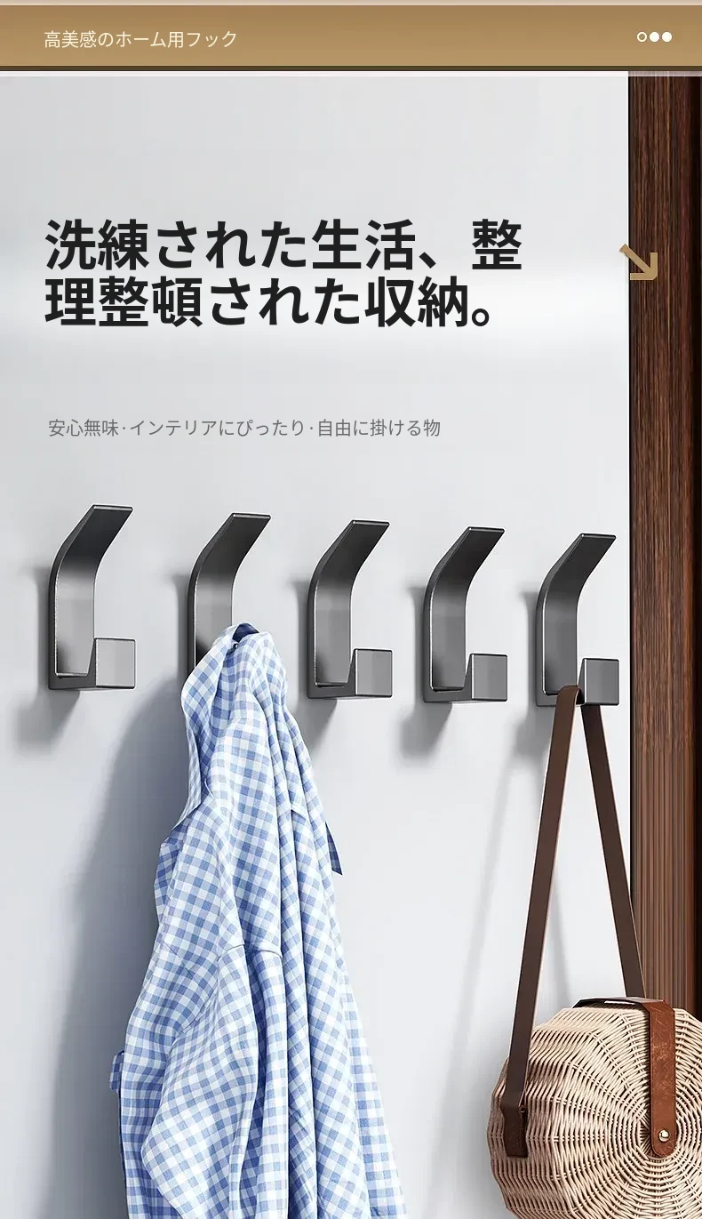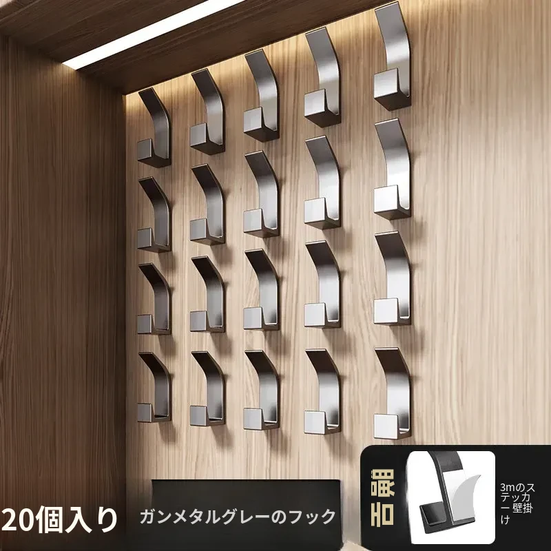 強力粘着フック - 穴あけ不要で壁に取り付け可能!鍵やバッグ、帽子の収納に最適な無痕フック。すっきりとしたお部屋作りをサポートします!