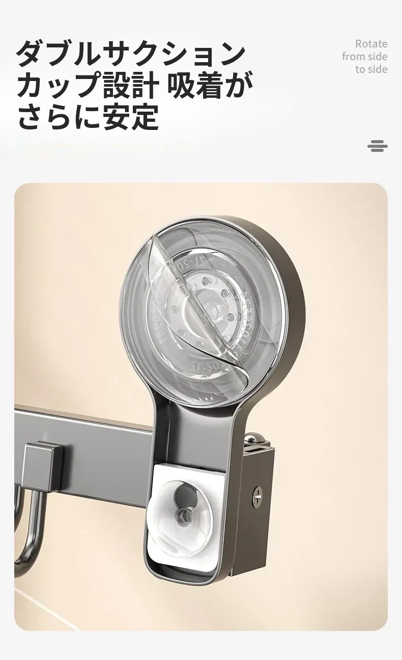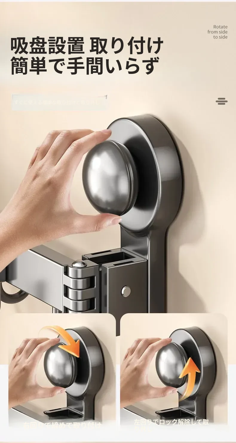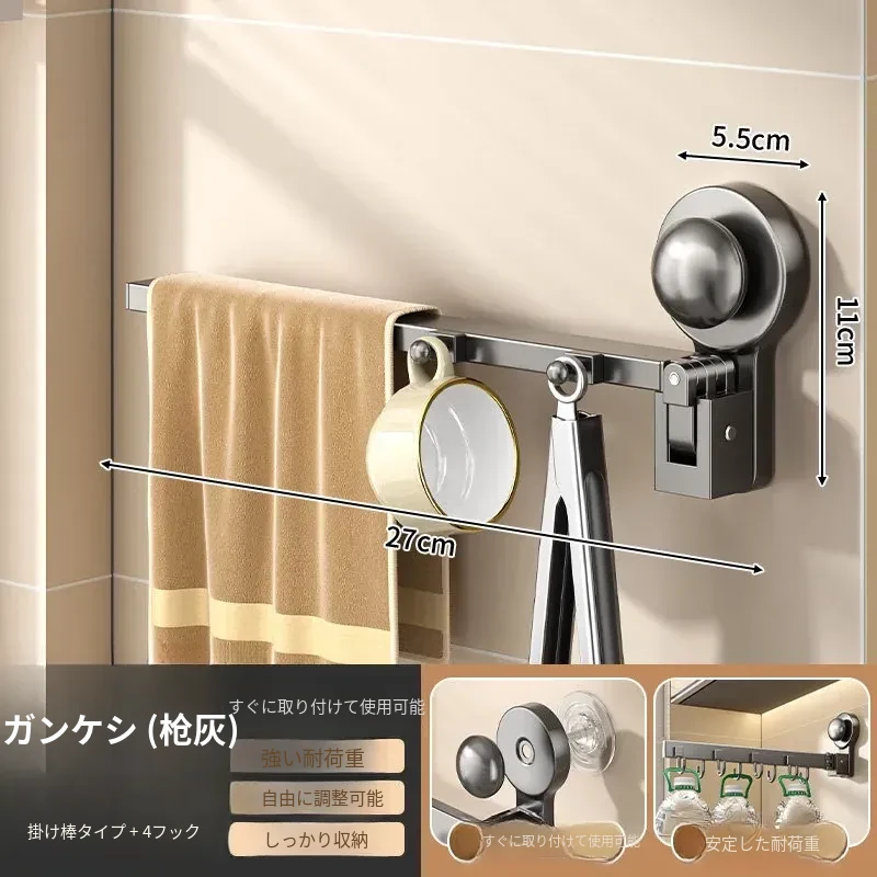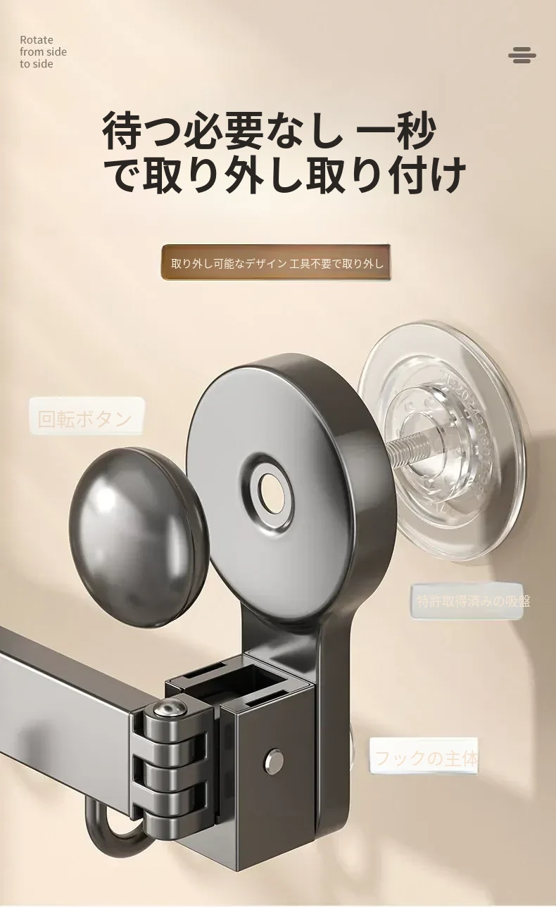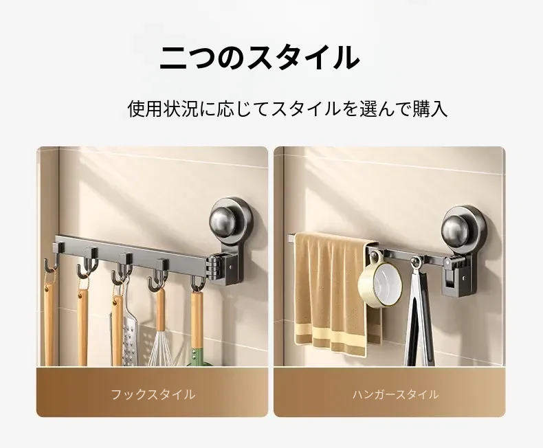 回転式サクションキッチンフック - 多機能ハンガーバー収納ラック、回転式クロスホルダー&スプーン・フライ返し掛け、キッチンをスッキリ整理!