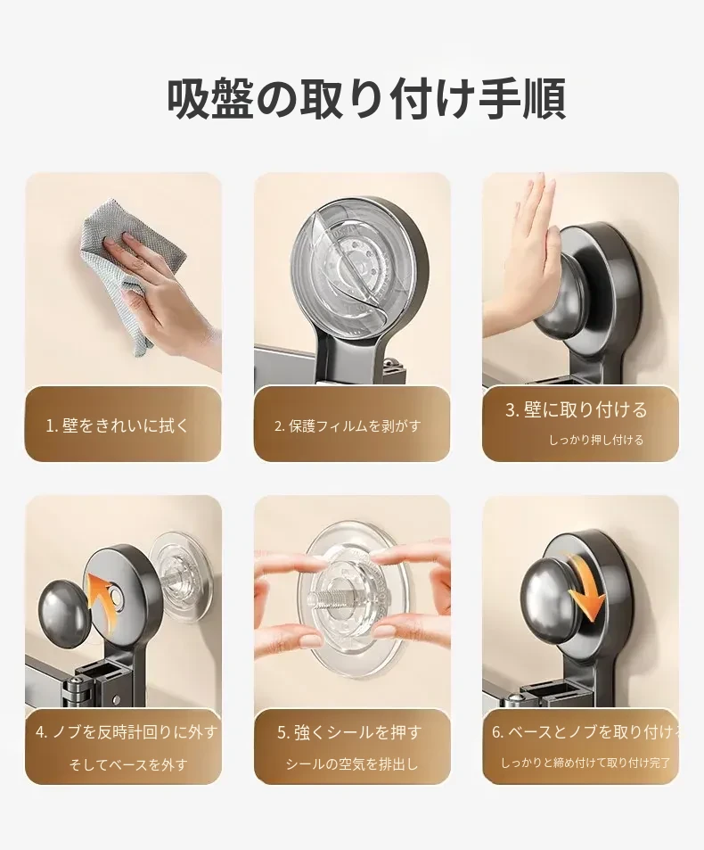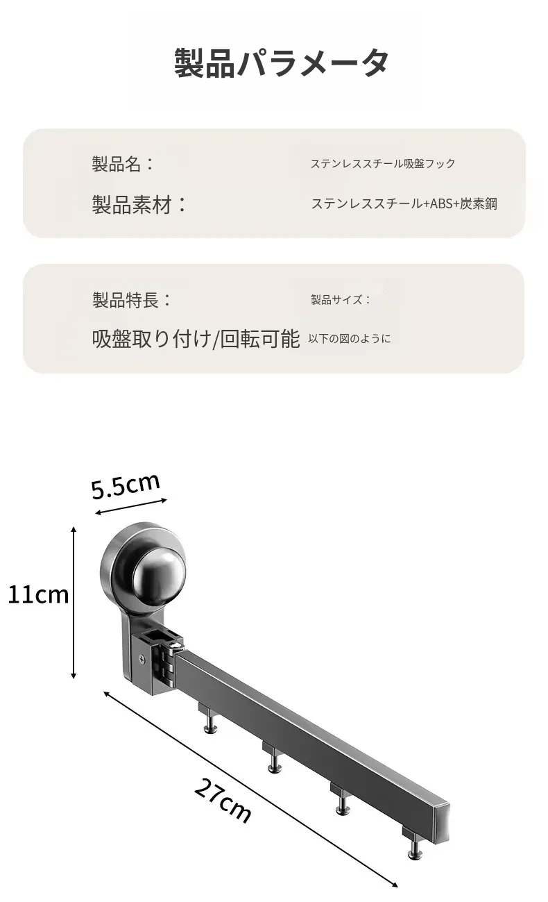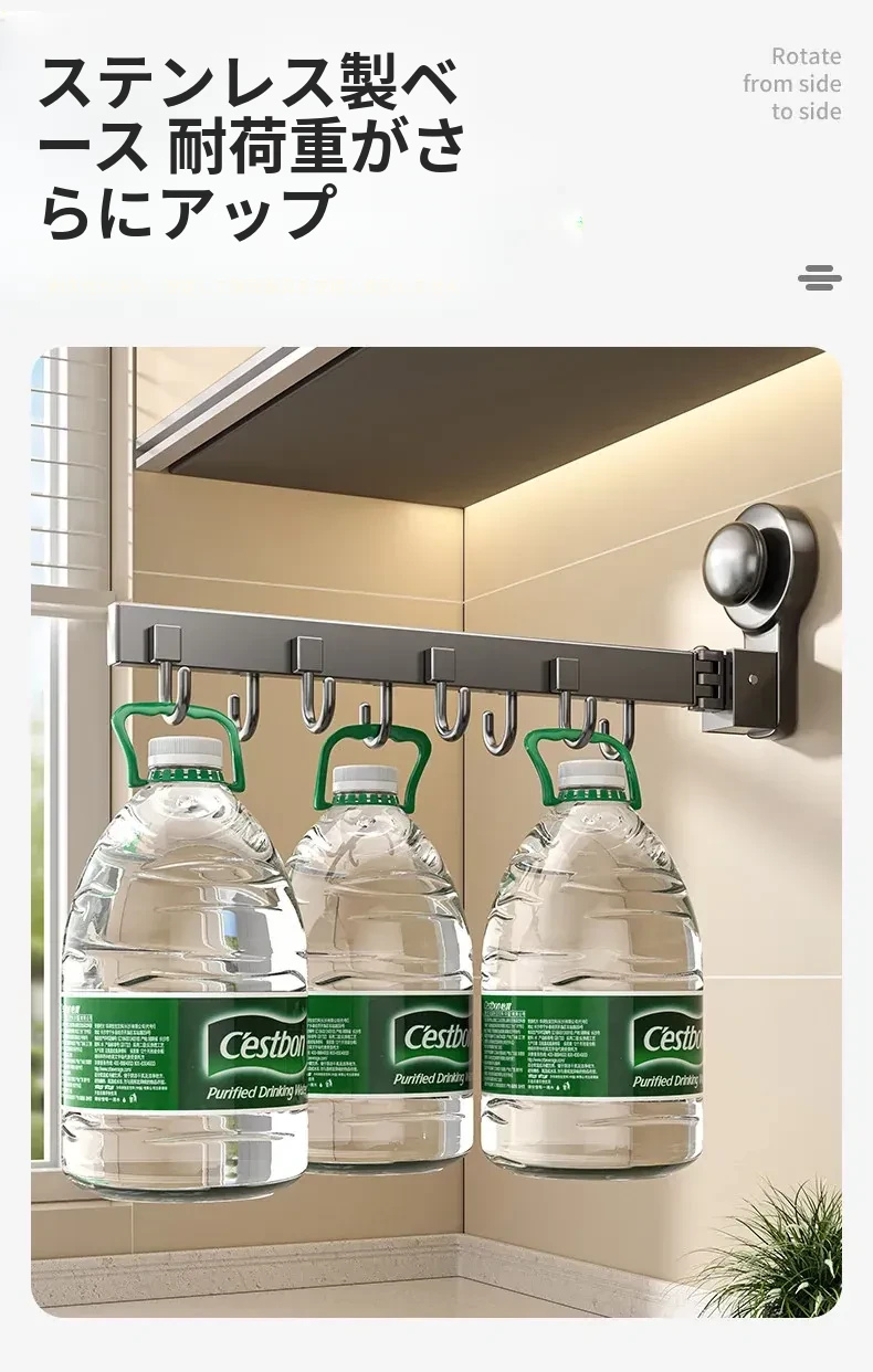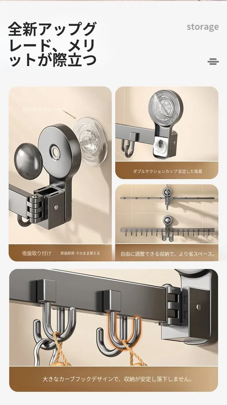 回転式サクションキッチンフック - 多機能ハンガーバー収納ラック、回転式クロスホルダー&スプーン・フライ返し掛け、キッチンをスッキリ整理!